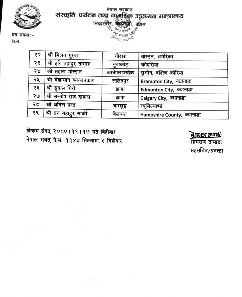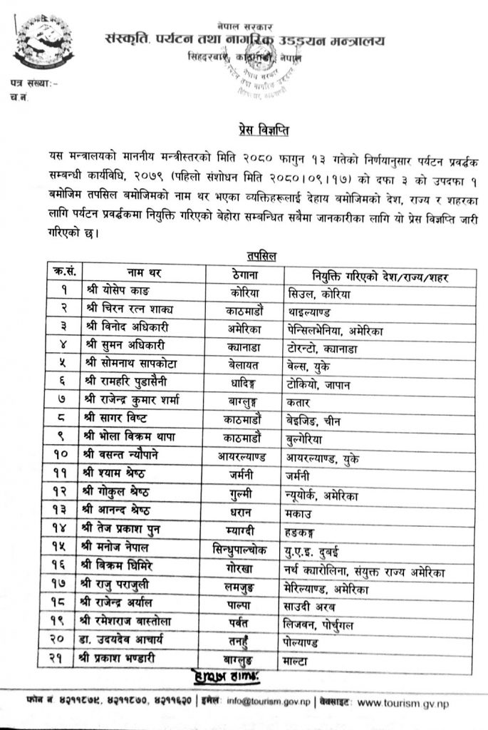 पर्यटन प्रवद्र्धनका लागि २९ जना पर्यटक दूत नियुक्त (नामावली सहित)