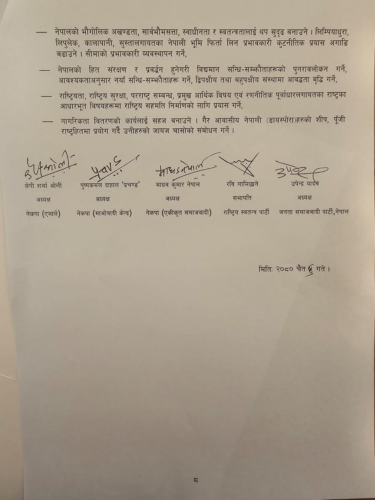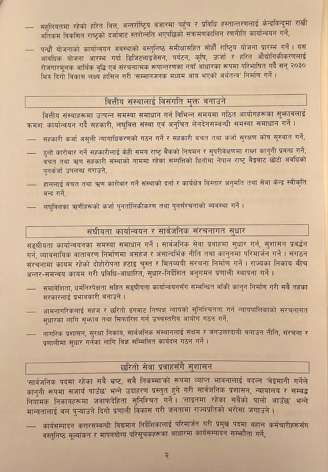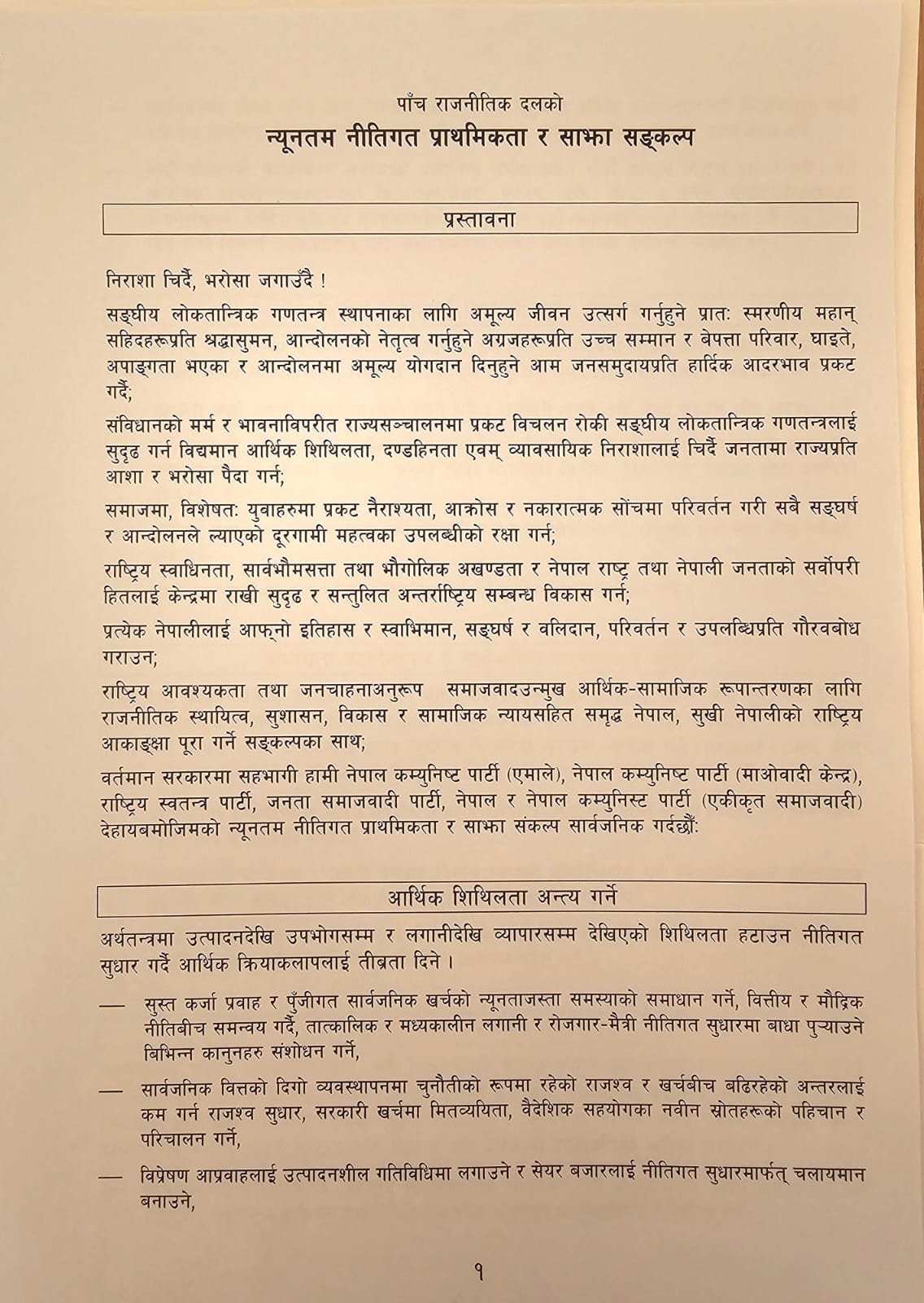 यस्तो छ सरकारको न्यूनतम नीतिगत प्राथमिकता र साझा सङ्कल्प(पूर्णपाठ)