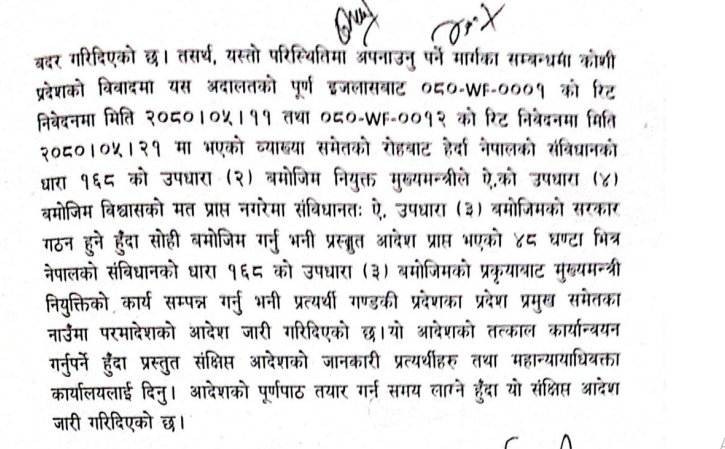 गण्डकी प्रदेशको मुख्यमन्त्रीमा सुरेन्द्र पाण्डेलाई ४८ घण्टाभित्र नियुक्त गर्न सर्वोच्चको परमादेश
