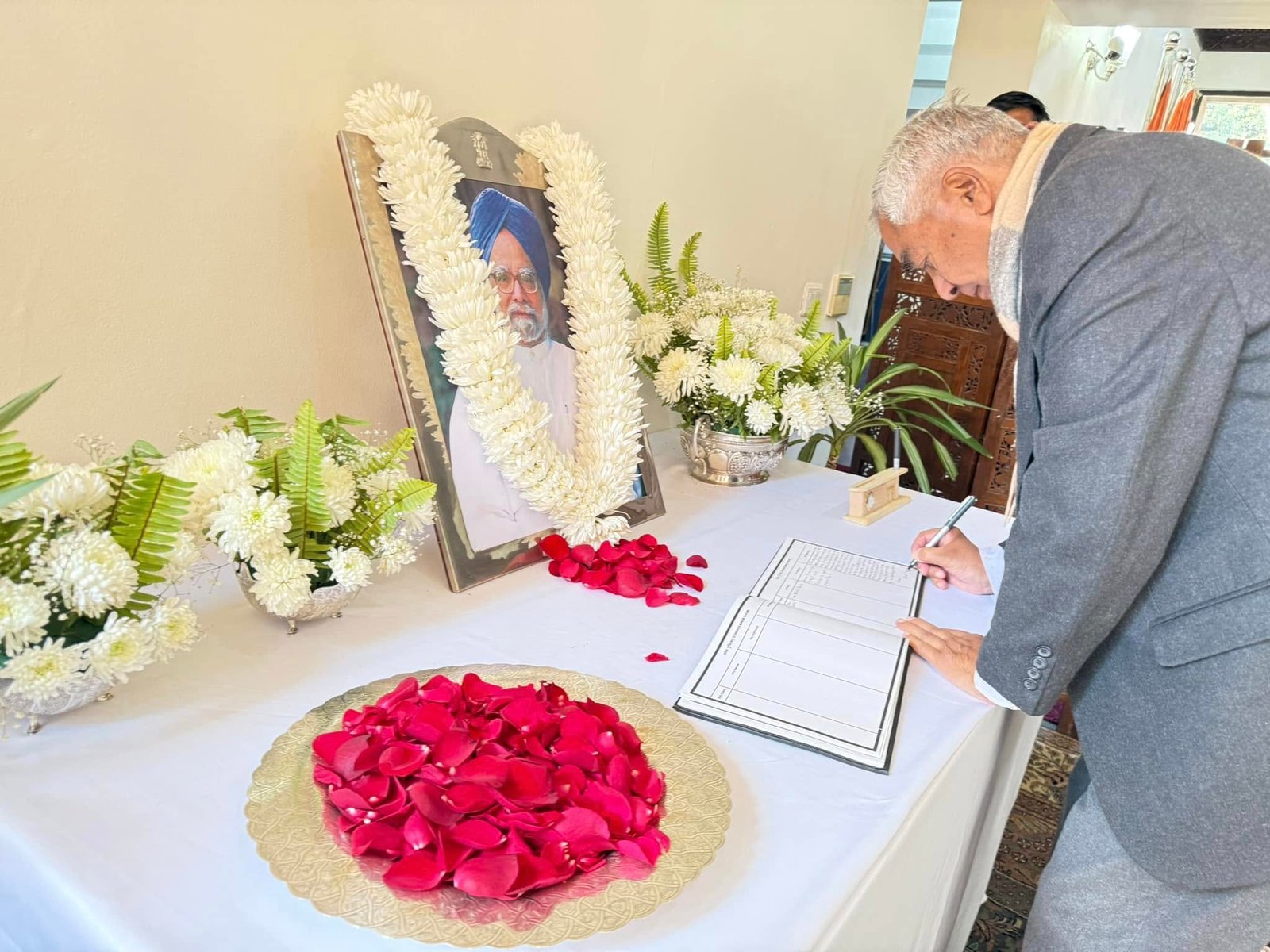 उनले मंगलबार अमेरिकी दूतावास र भारतीय दूतावासमा पुगेर अमेरिकाका पूर्वराष्ट्रपति कार्टर र भारतका पूर्वप्रधानमन्त्री डा सिंहप्रति श्रद्धाञ्जलि अर्पण गर्दै शोकपुस्तिकामा हस्ताक्षर गरे ।