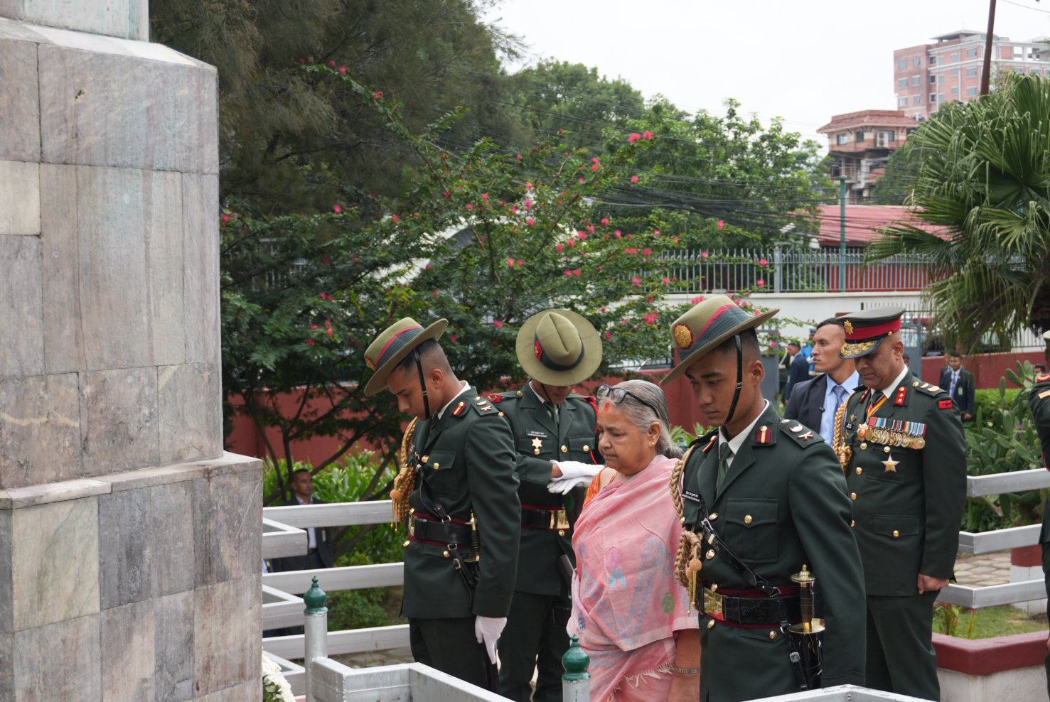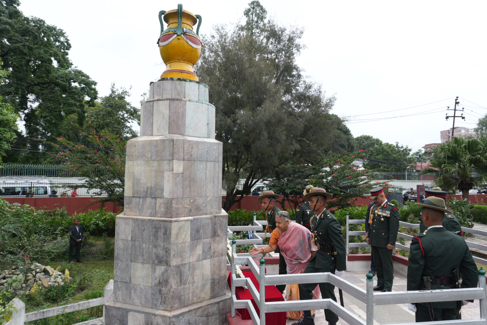 काठमाडौँ । प्रधानमन्त्री सुशीला कार्कीद्वारा लैनचौर स्थित शहीद स्मारकमा श्रद्धान्जली अर्पण गरेकी छन् ।
