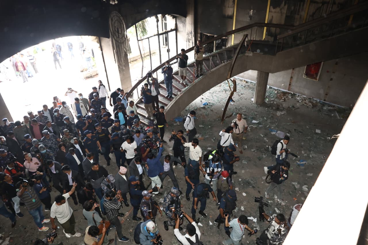 काठमाडौं । मन्त्रीत्रय रामेश्वर खनाल, कुलमान घिसिङ र ओमप्रकाश अर्यालले आगजनीबाट क्षतिग्रस्त संघीय संसद्को भवन अवलोकन गरेका छन् । गत २४ भदौमा जेनजी आन्दोलनको क्रममा आगजनी भएको थियो ।