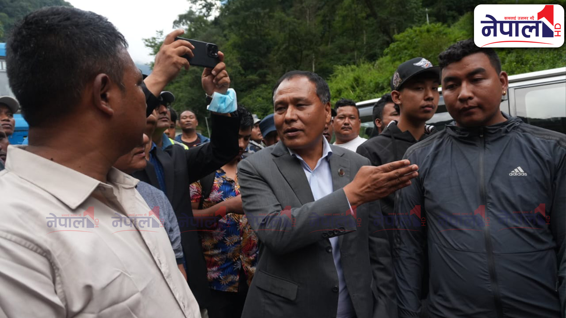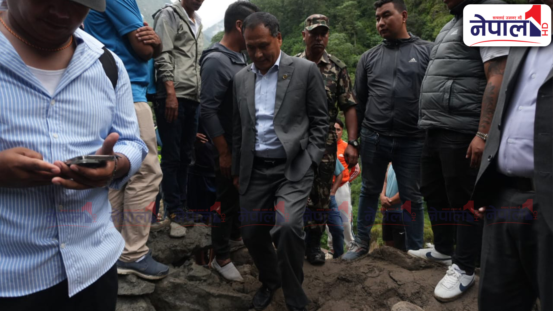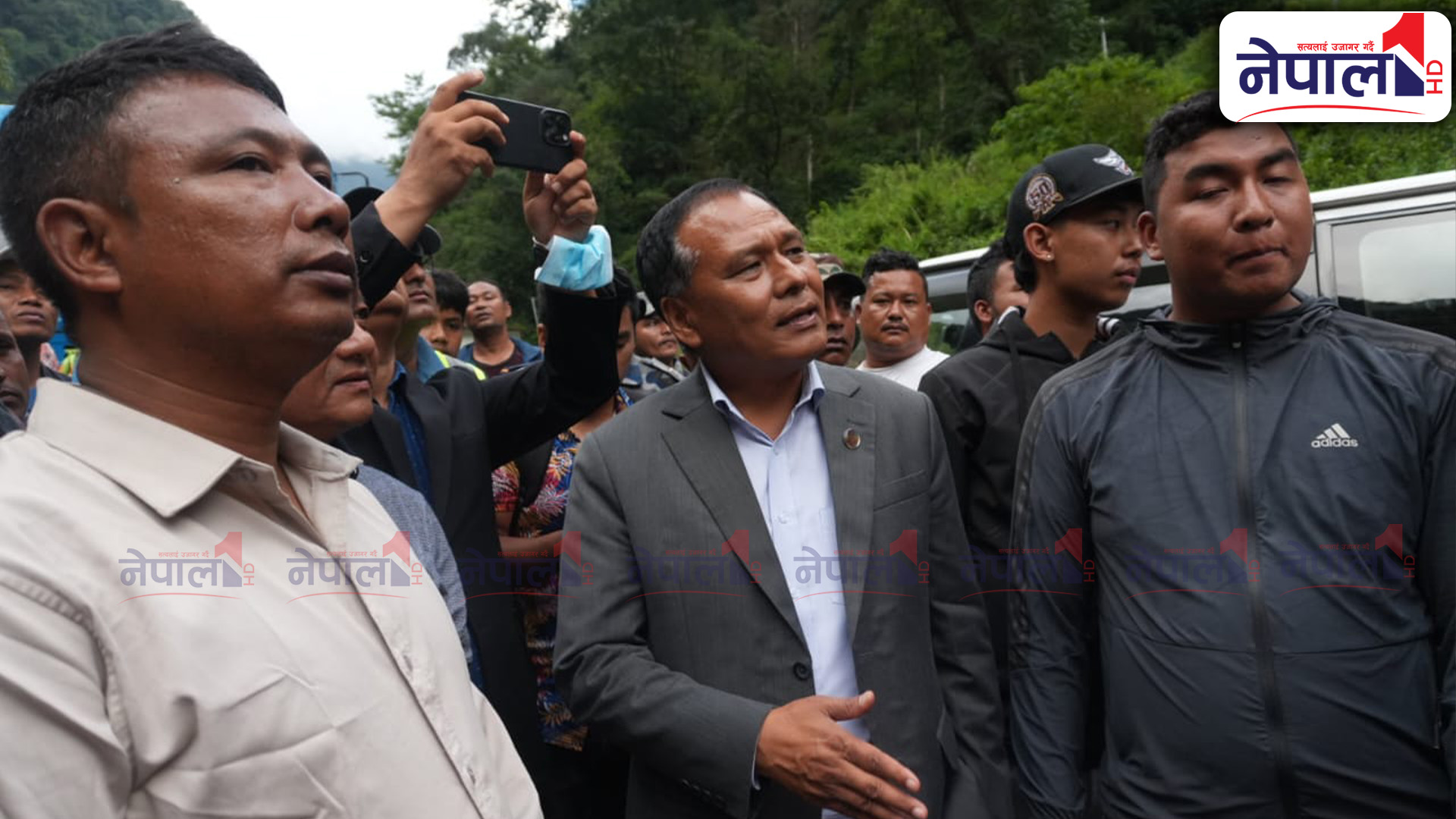 दुई महिनादेखि अवरुद्ध अरनिको राजमार्ग निरीक्षणमा पुगे मन्त्री घिसिङ