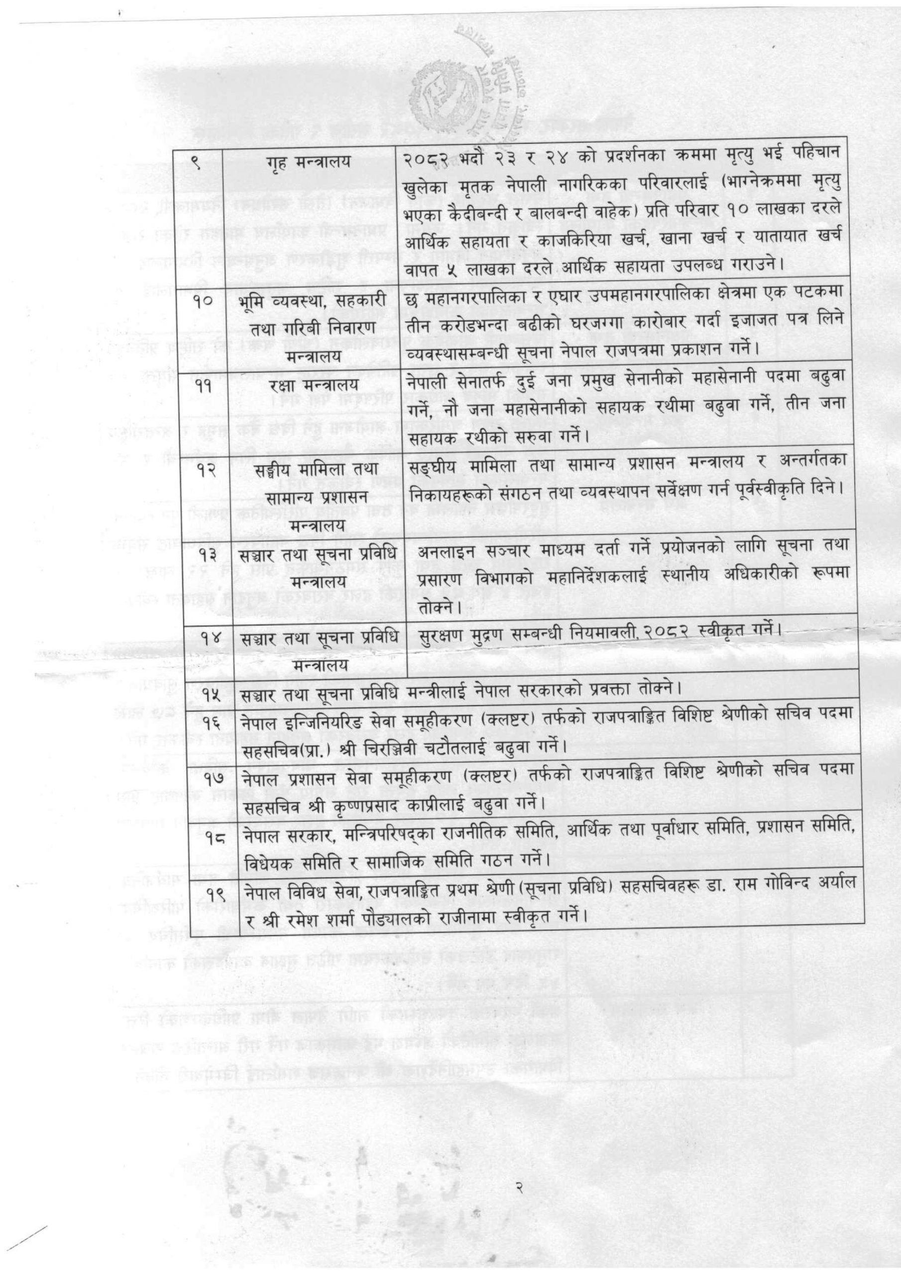 सेनामा बढुवासहित यस्ता छन् मन्त्रिपरिषद बैठकका १९ निर्णयहरु (सूचीसहित)
