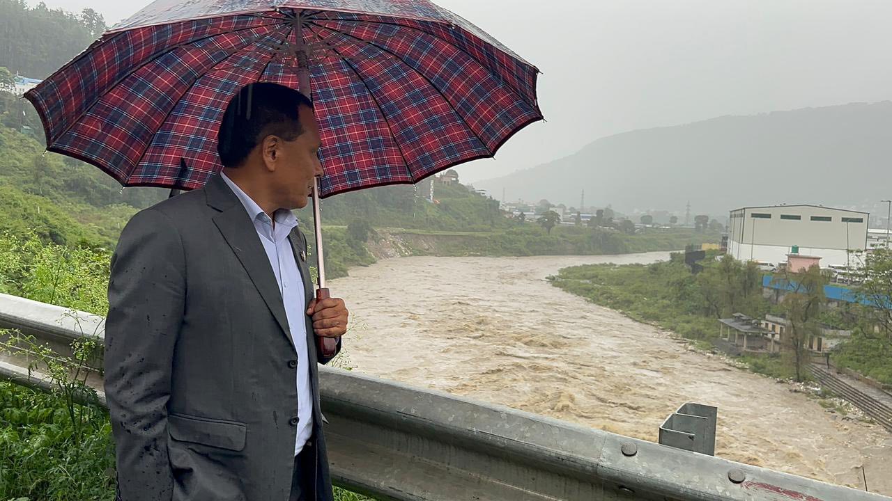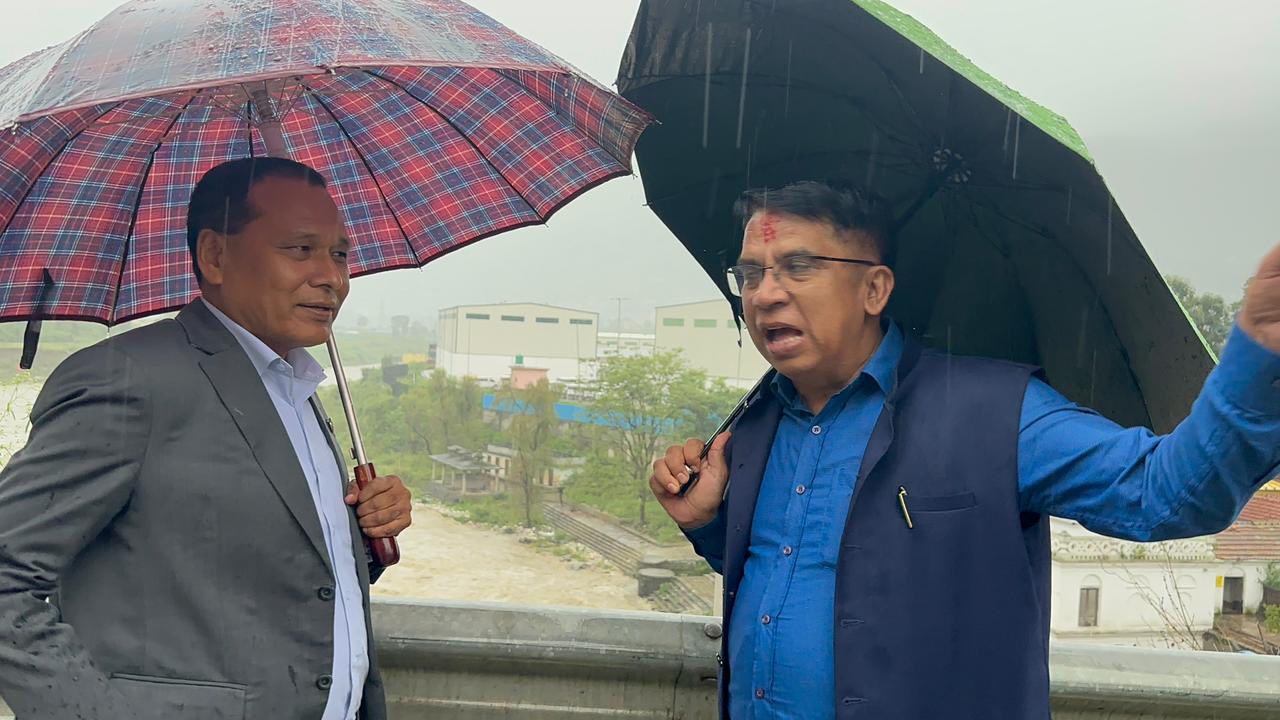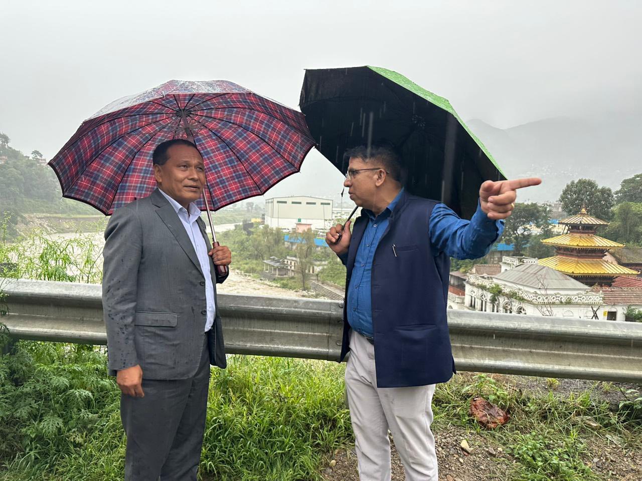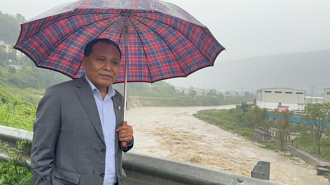 छाता ओढेर चोभार–गल्छी क्षेत्र निरीक्षणमा निस्किए मन्त्री घिसिङ {तस्वीरहरु}