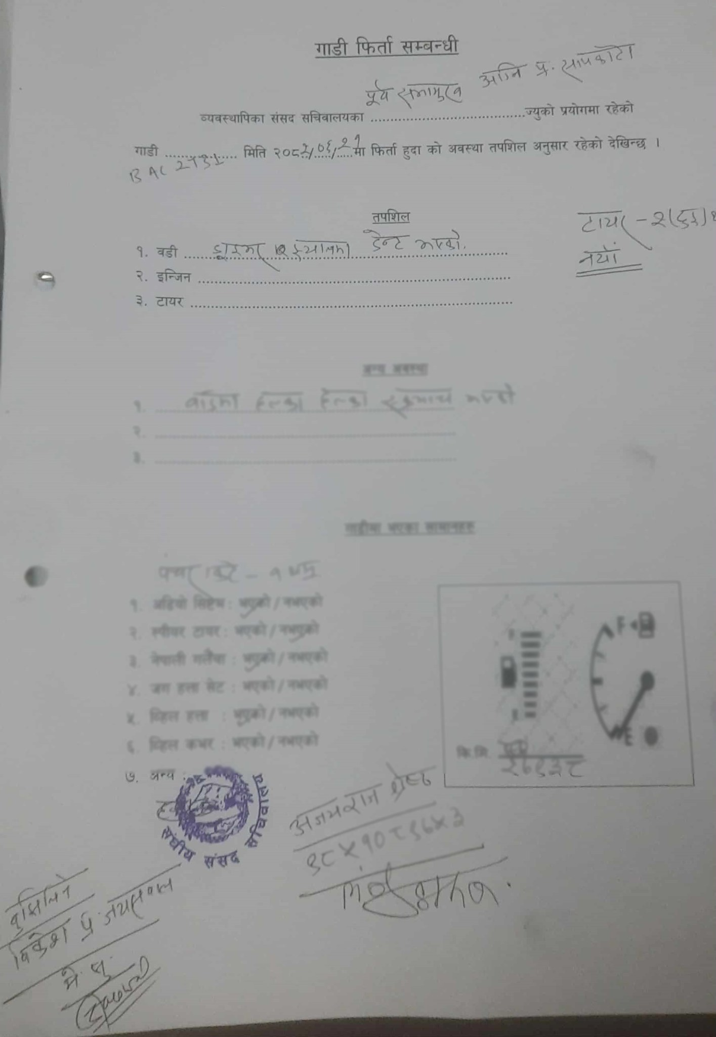 पूर्व सभामुख सापकोटाले फिर्ता गरे सरकारी गाडी