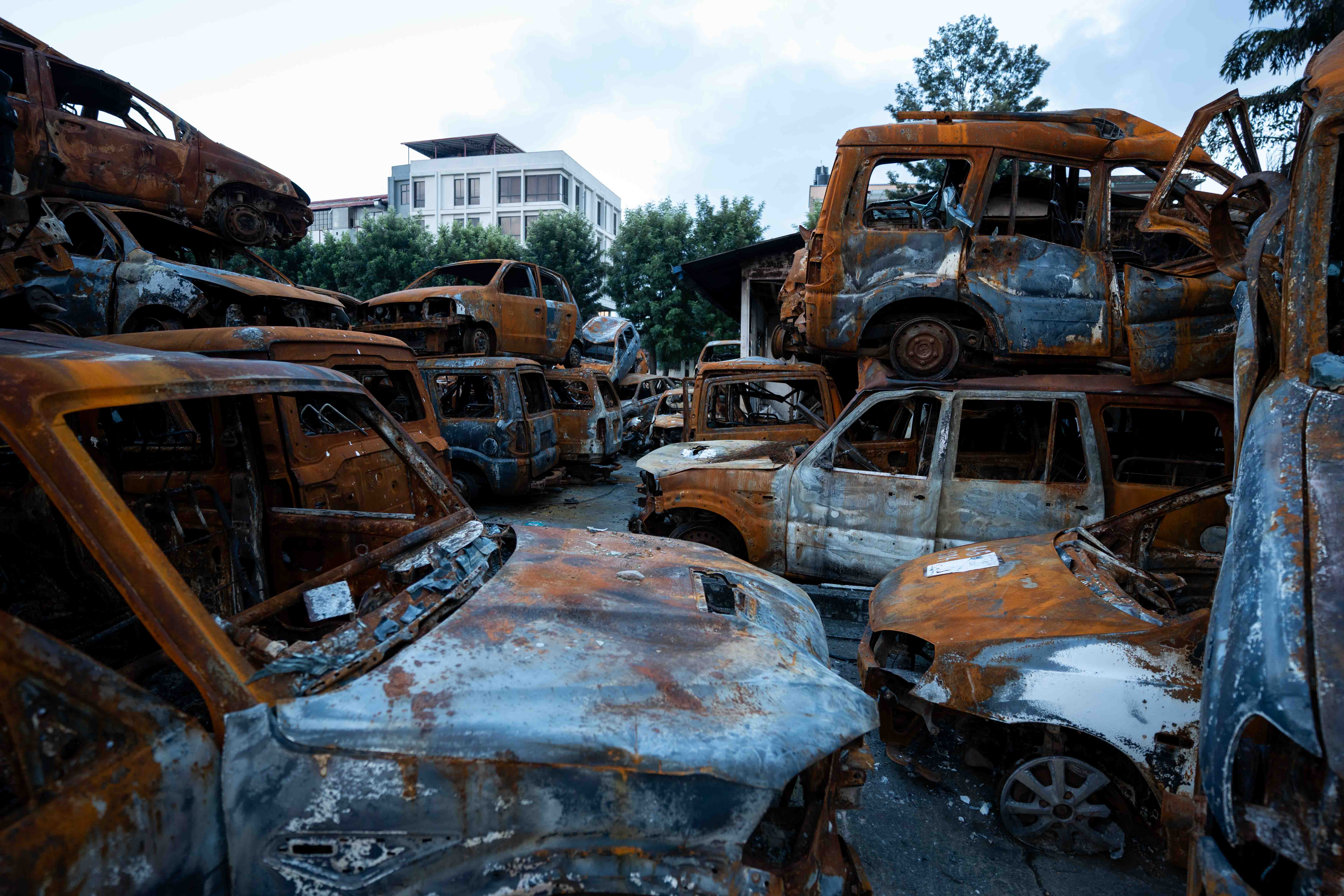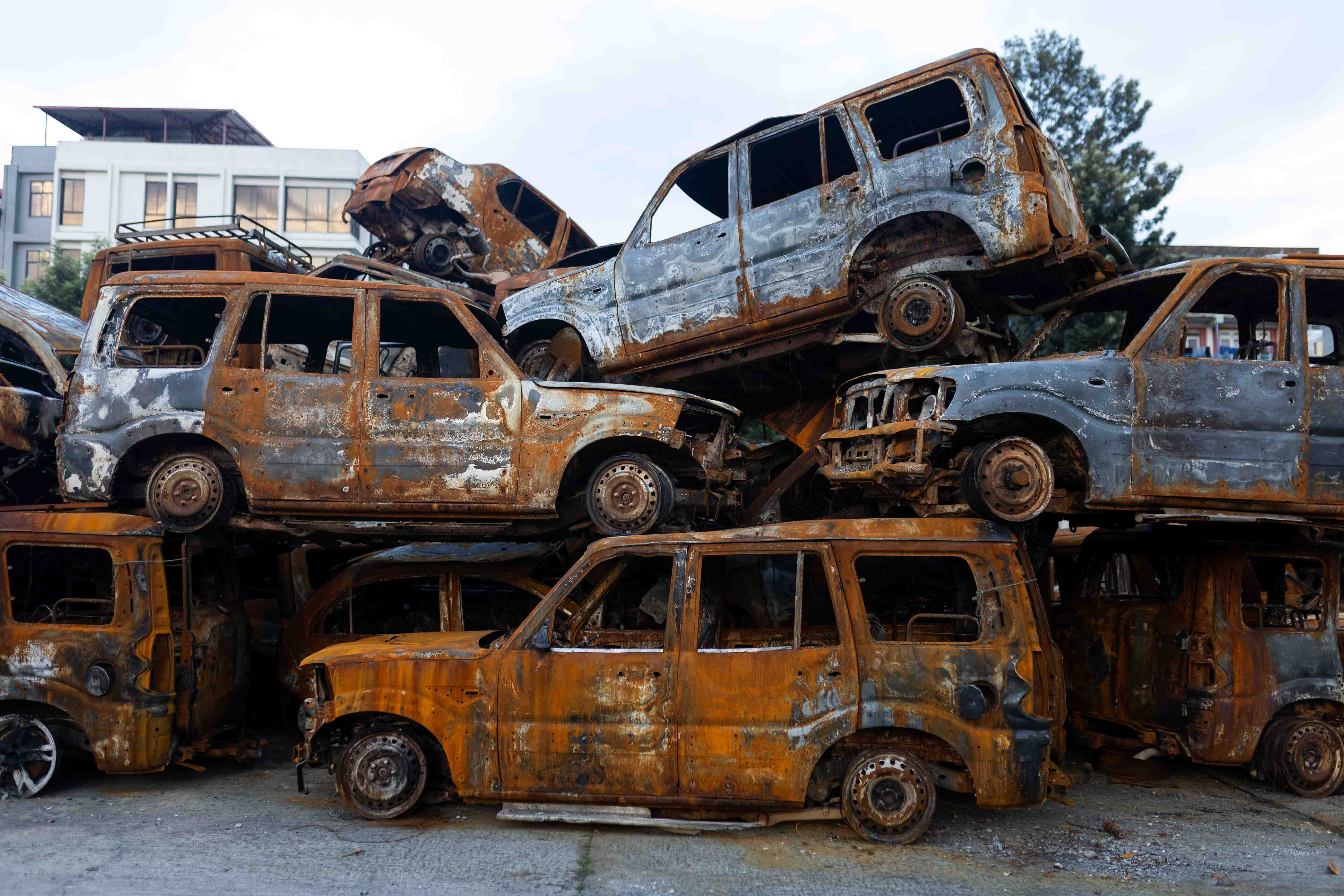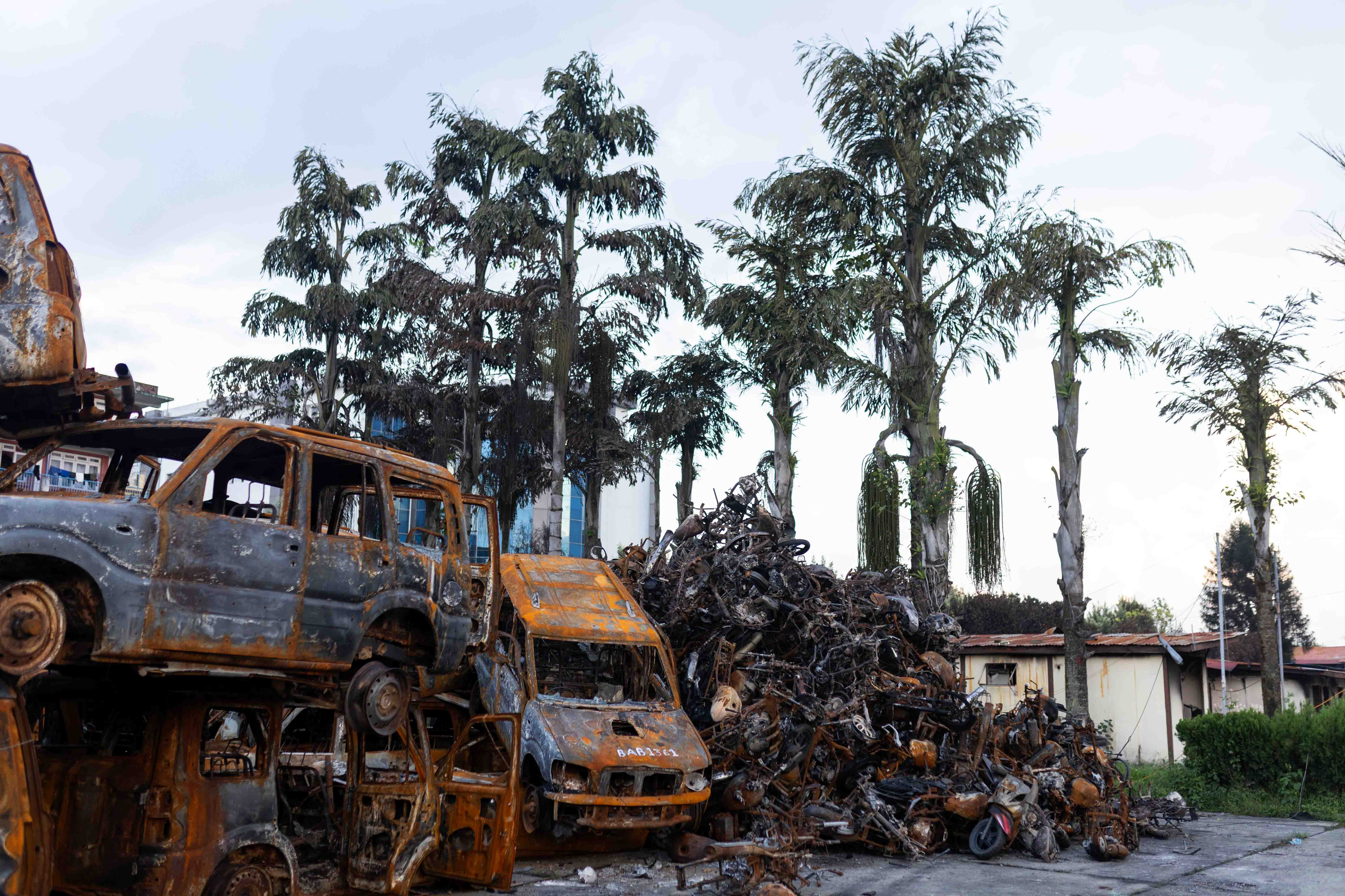 काठमाडौं । भदौ २४ गते भएको ‘जेन जी आन्दोलनका क्रममा सिंहदरबारभित्र र काठमाडौँका विभिन्न स्थानमा आगजनी गरिएका सवारीसाधनहरू अहिले नयाँबानेश्वरस्थित आगलागी भएको संसद भवन वीरेन्द्र सम्मेलन केन्द्रको परिसरमा थुपारिएका छन् । आन्दोलनका क्रममा भवनमा आगलागी हुँदा त्यहाँ रहेका भौतिक संरचना पूर्ण रूपमा जलेर नष्ट भएका छन् । अहिले भवन प्रयोगयोग्य नरहेको बताइन्छ ।