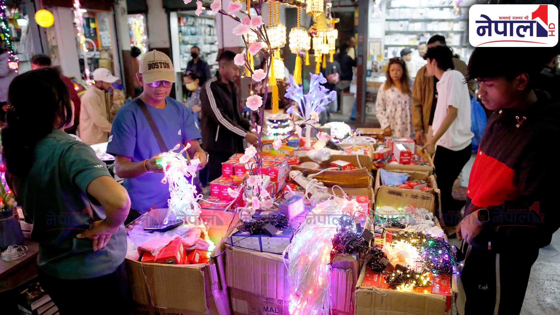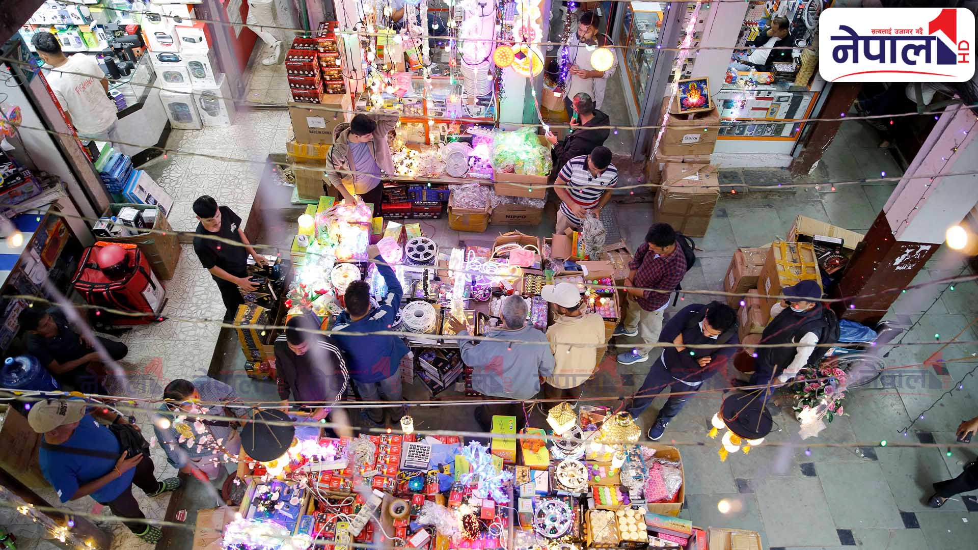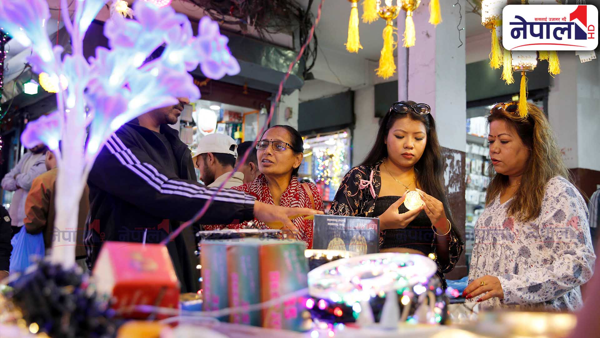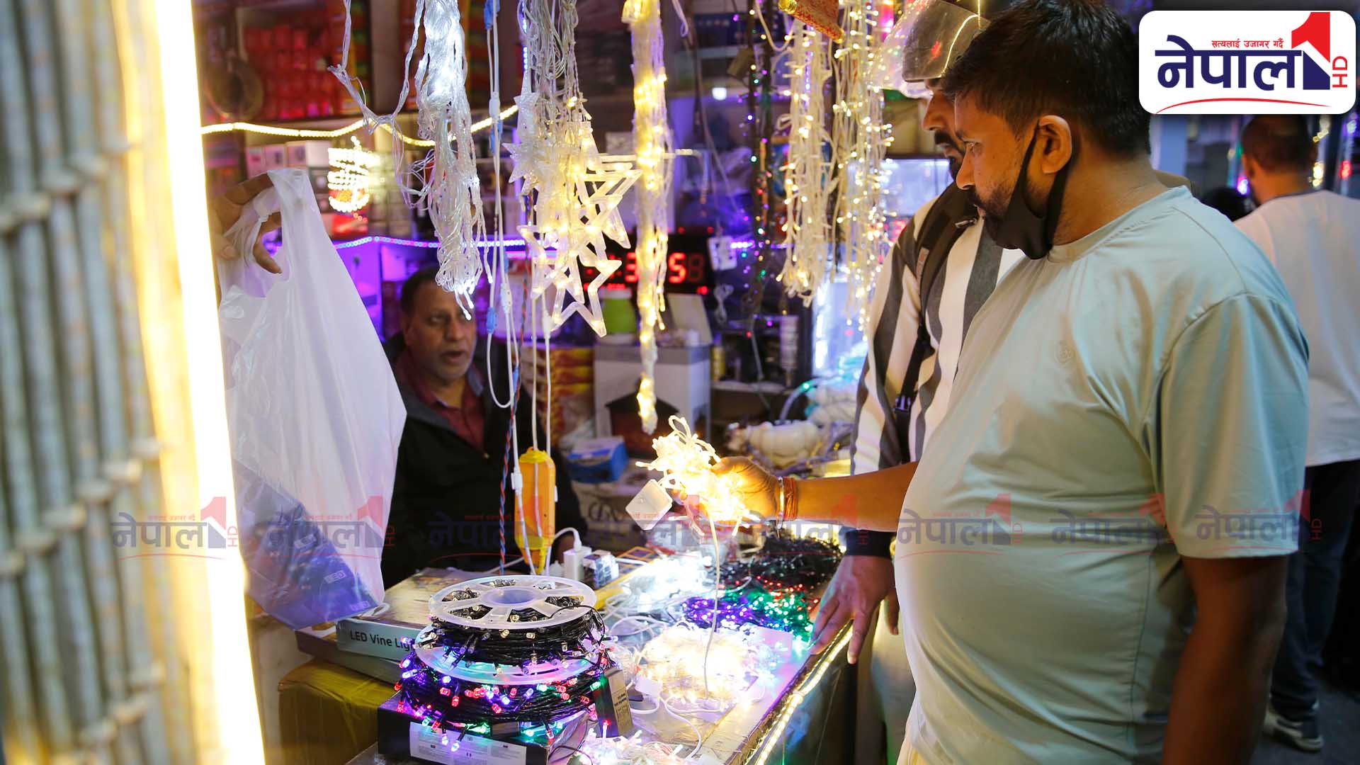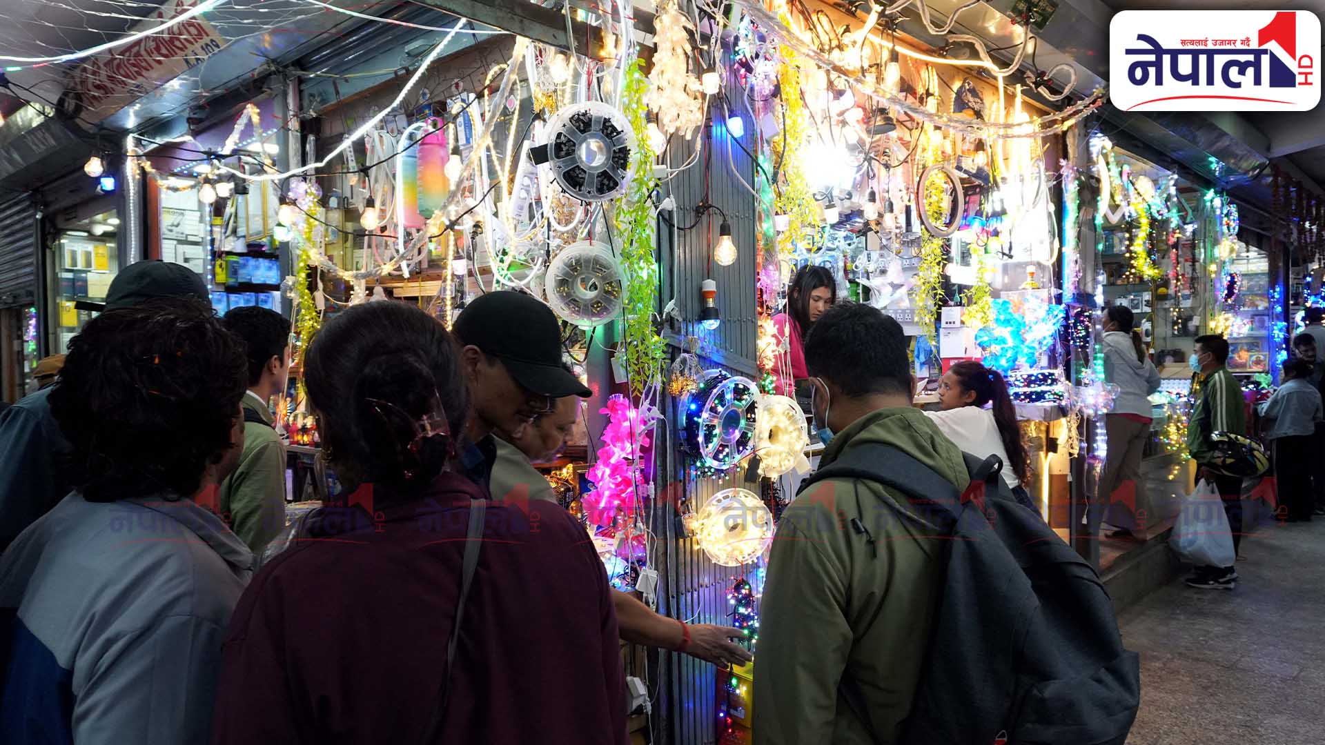 काठमाडौं । तिहार नजिकिएसँगै राजधानीको महाबौद्ध, बाङ्गेमूढा क्षेत्रमा झिलिमिली बत्तीहरू व्यापार सुरु भएको छ ।
