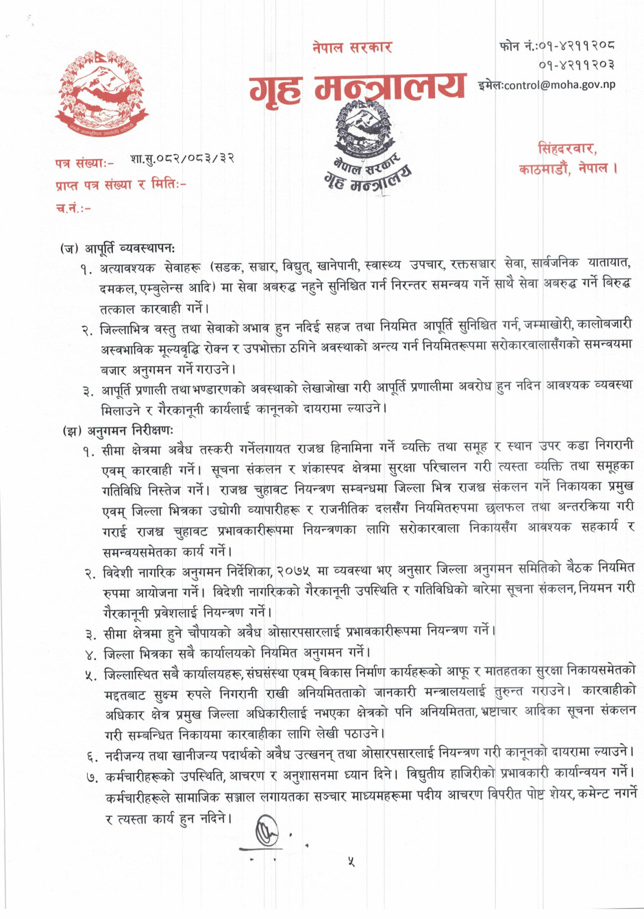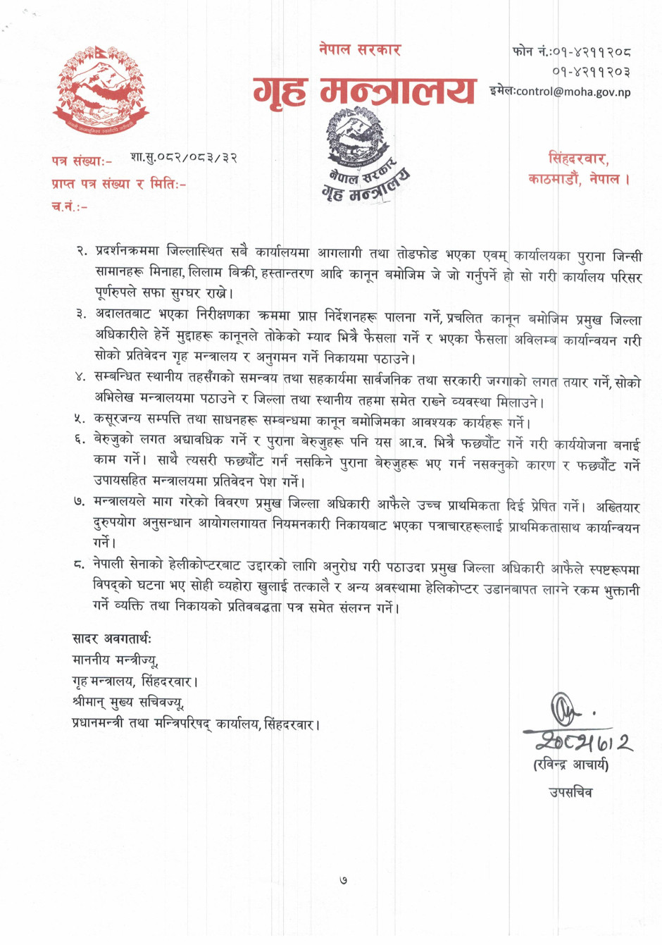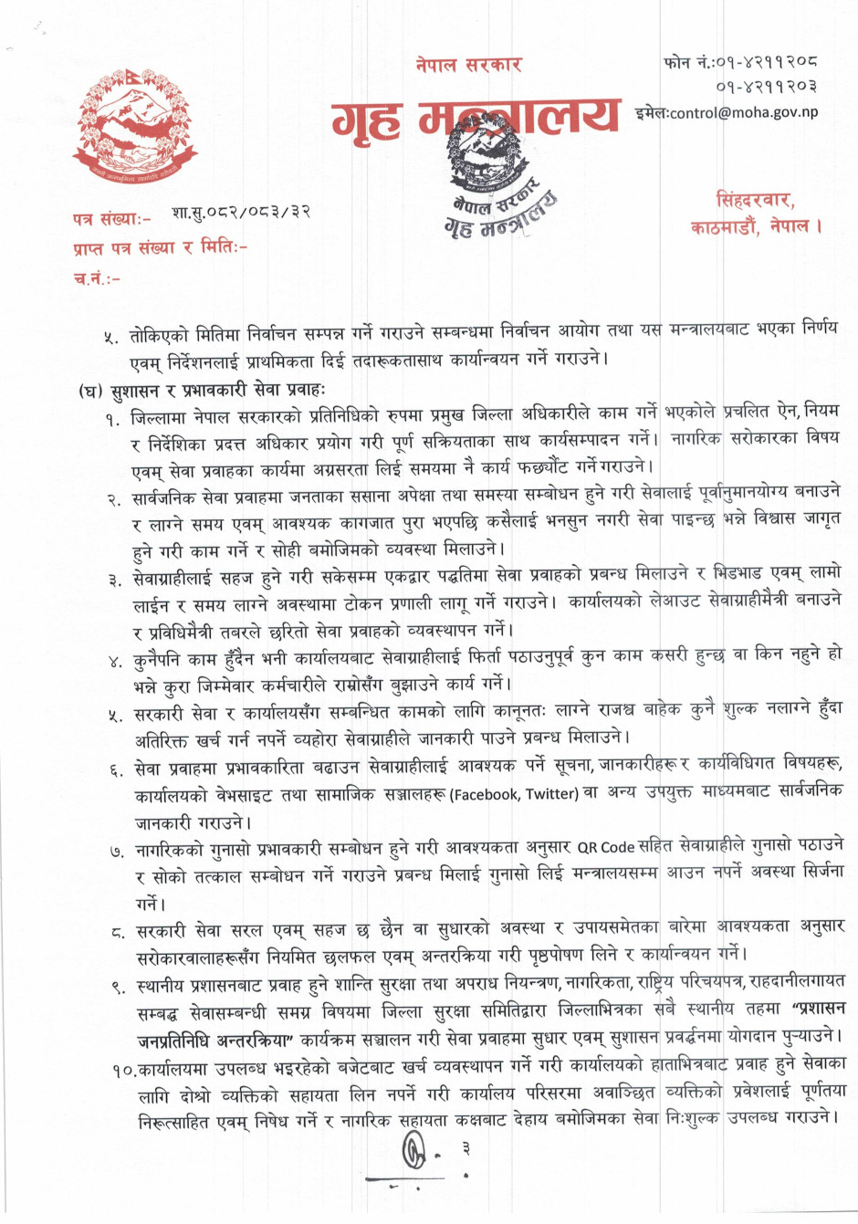 देशभरका सीडीओ कार्यालयलाई गृह मन्त्रालयको ६३ बुँदे निर्देशन
