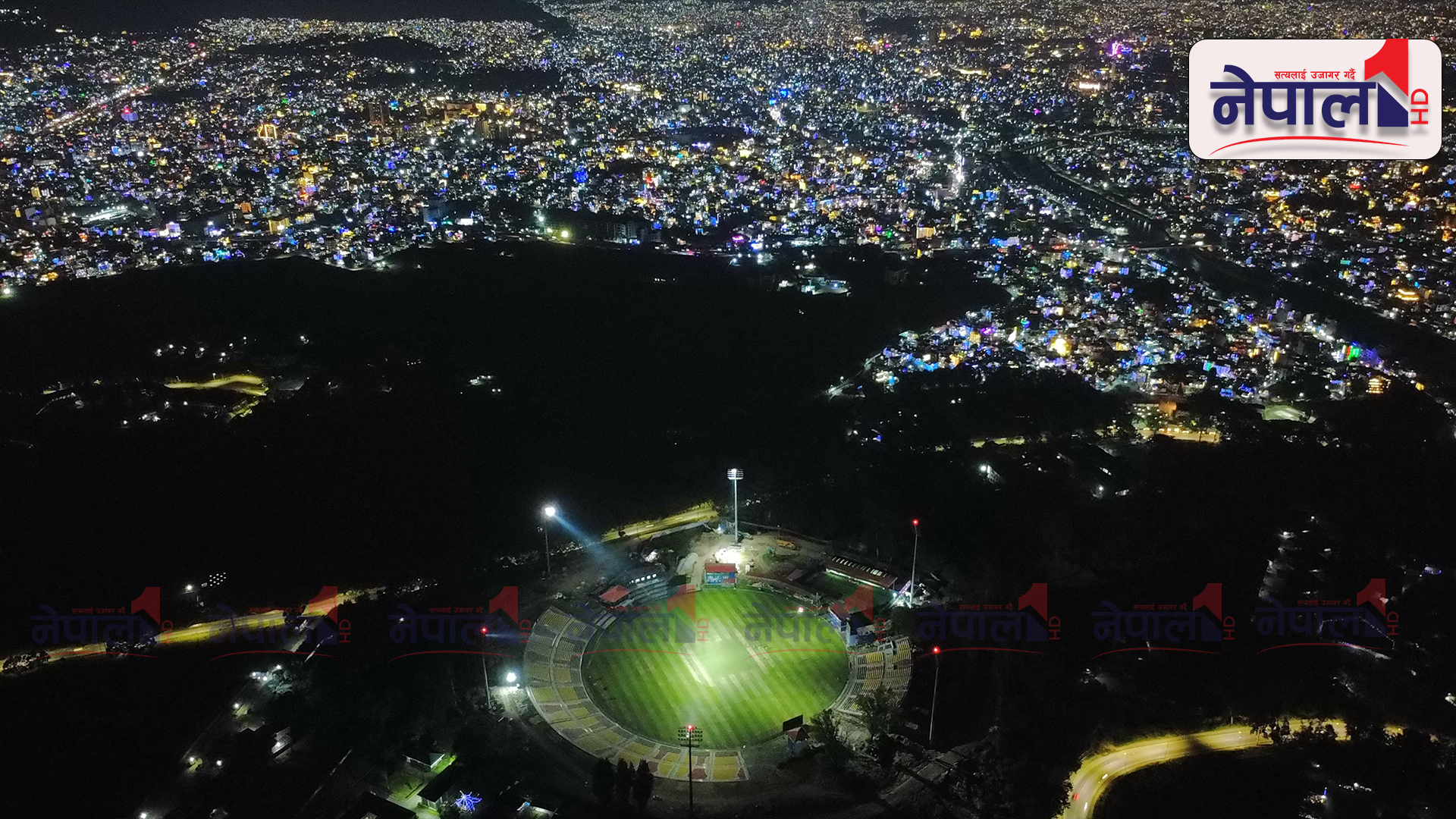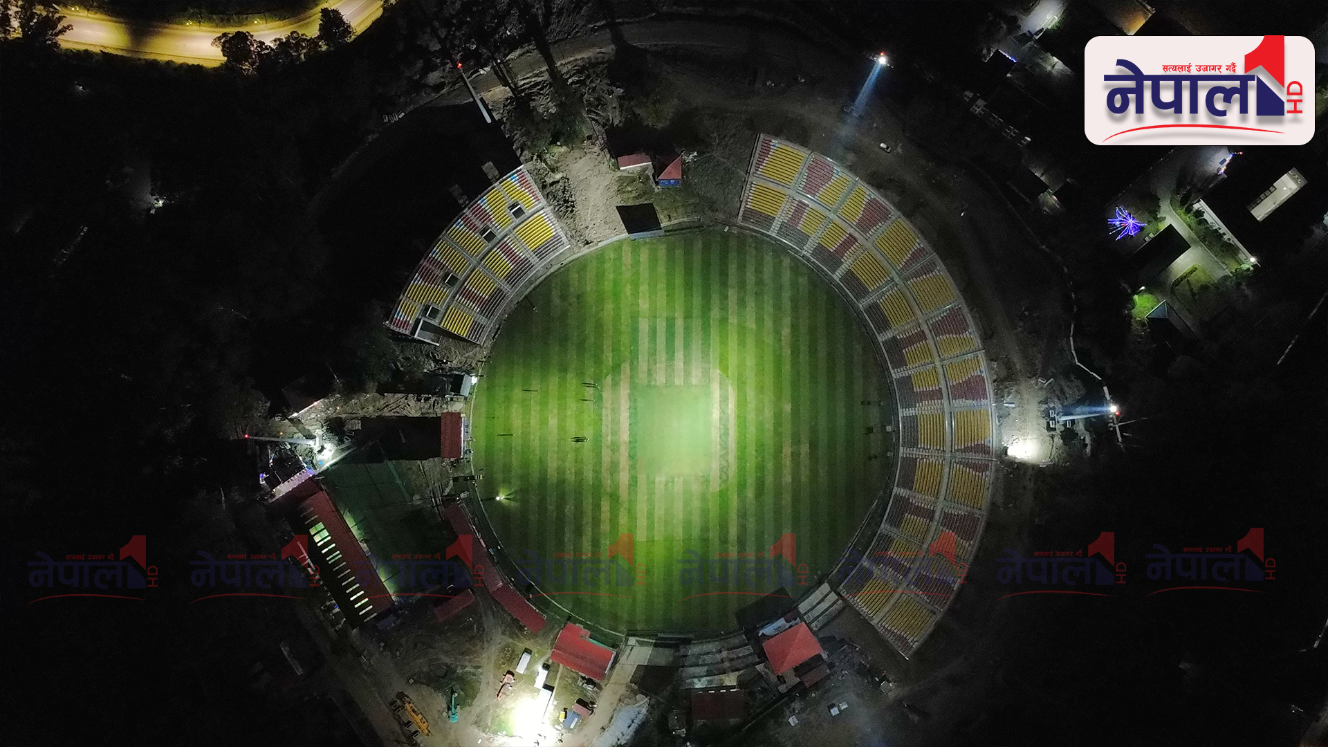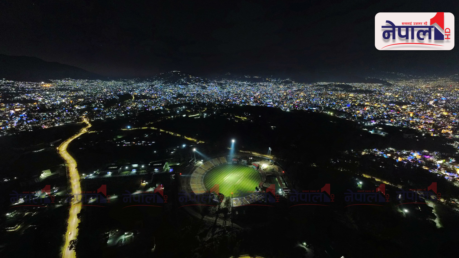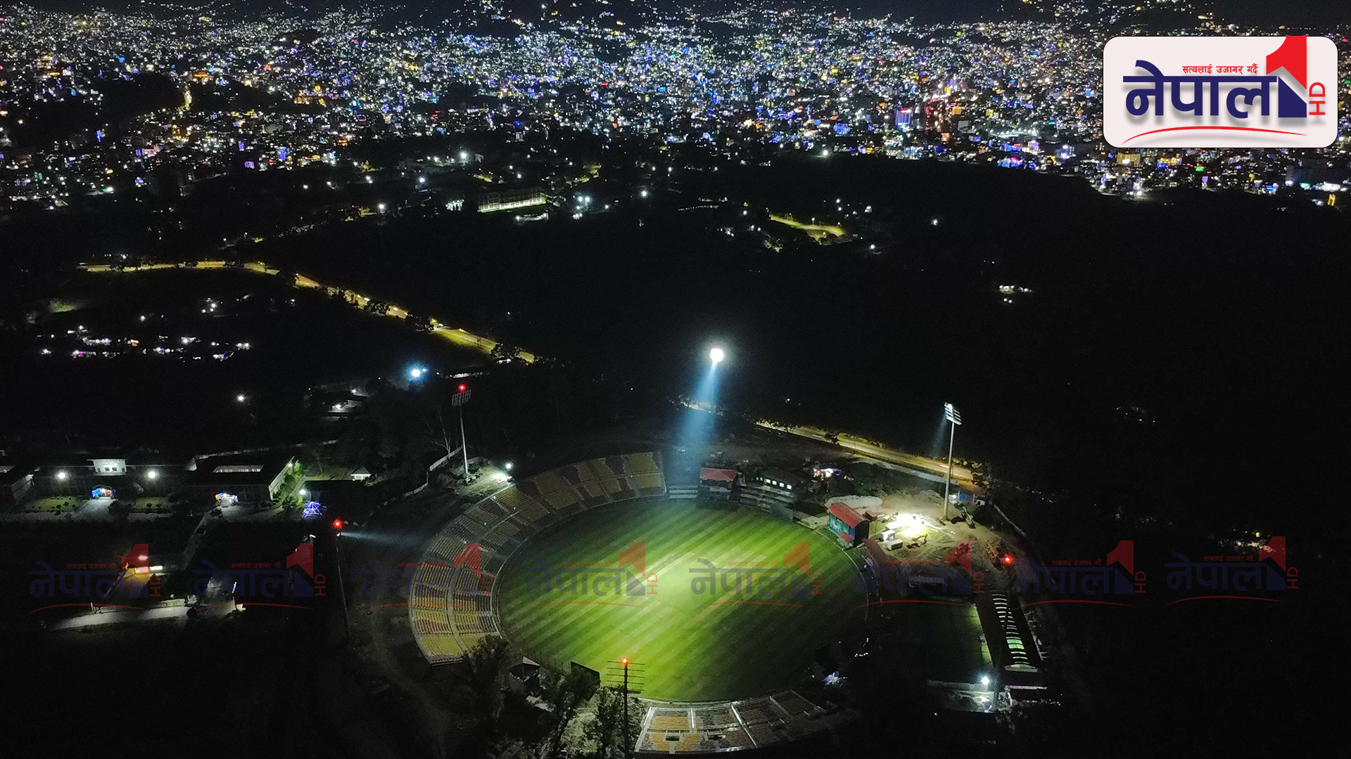चारवटा हाइमस्ट पोलबाट बत्ति बलेपछि त्रिवि त्रिकेट मैदान झलमल्ल भएको छ।