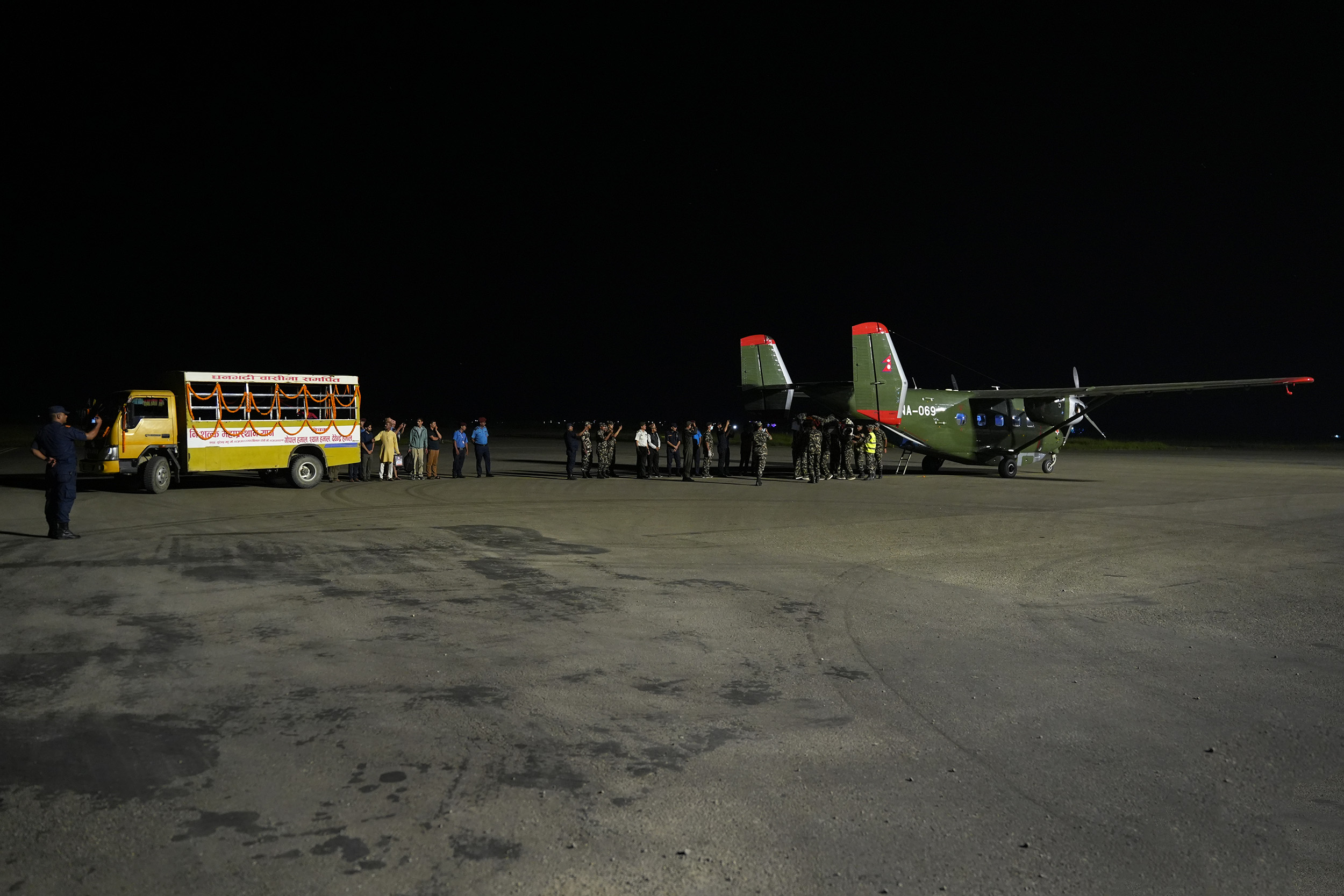 फ्लाई दुबईको फ्लाइट नम्बर एफजेड ५३९ काठमाडौं अवतरण गर्दा भिमदत्त—३ स्थित जोशी परिवारमा पीडा अझ थपियो। त्यो उडानले विपिन जोशीको शव स्वदेश फर्काएको थियो। नेपाली सेनाको स्काइ ट्रकले साँझ ६:१० बजे शवलाई काठमाडौंदेखि धनगढी विमानस्थल ल्याइपुर्यायो। त्यहाँदेखि महेन्द्रनगरसम्मको दूरी सवारी साधनलाई एक घण्टाको हो। सेनाले समन्वय गरेको शव सोमबार राति ७:५० म भीमदत्त—३ स्थित घरैमा पुग्दा त्यहाँको अवस्था दर्दनाक देखियो।