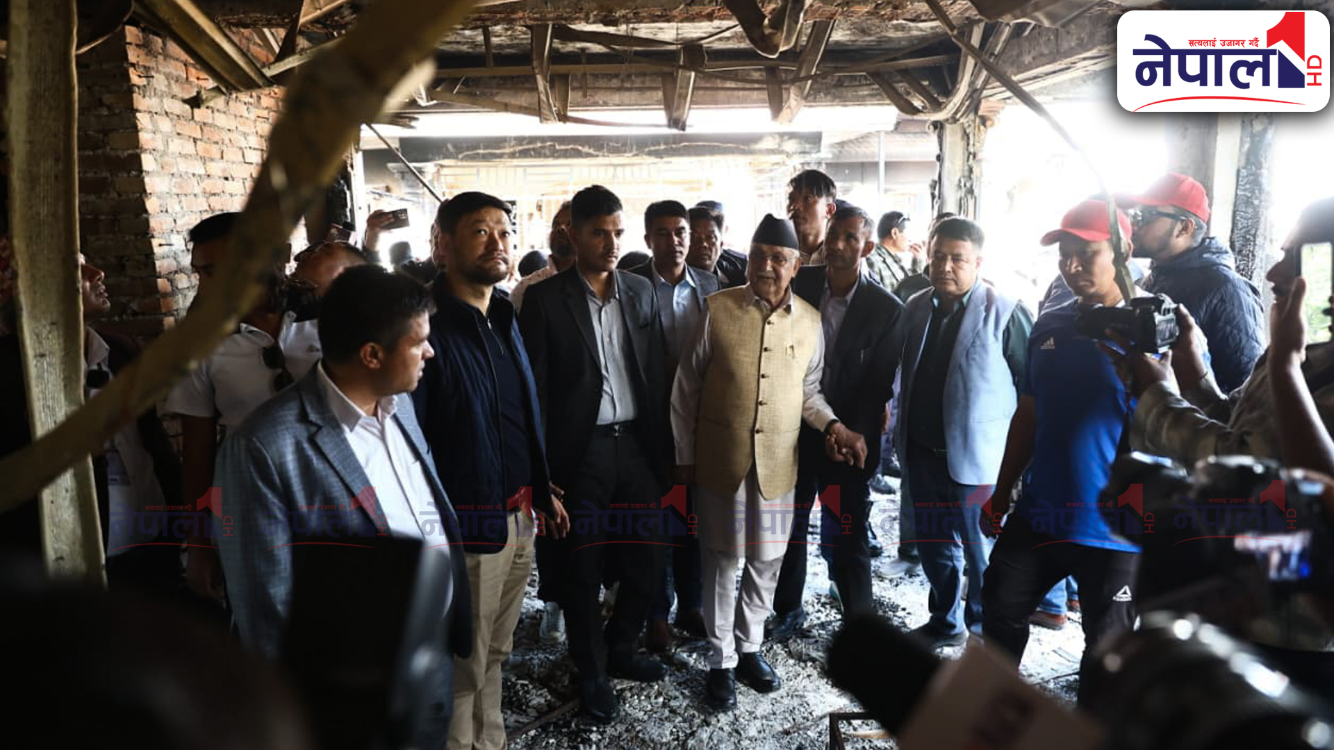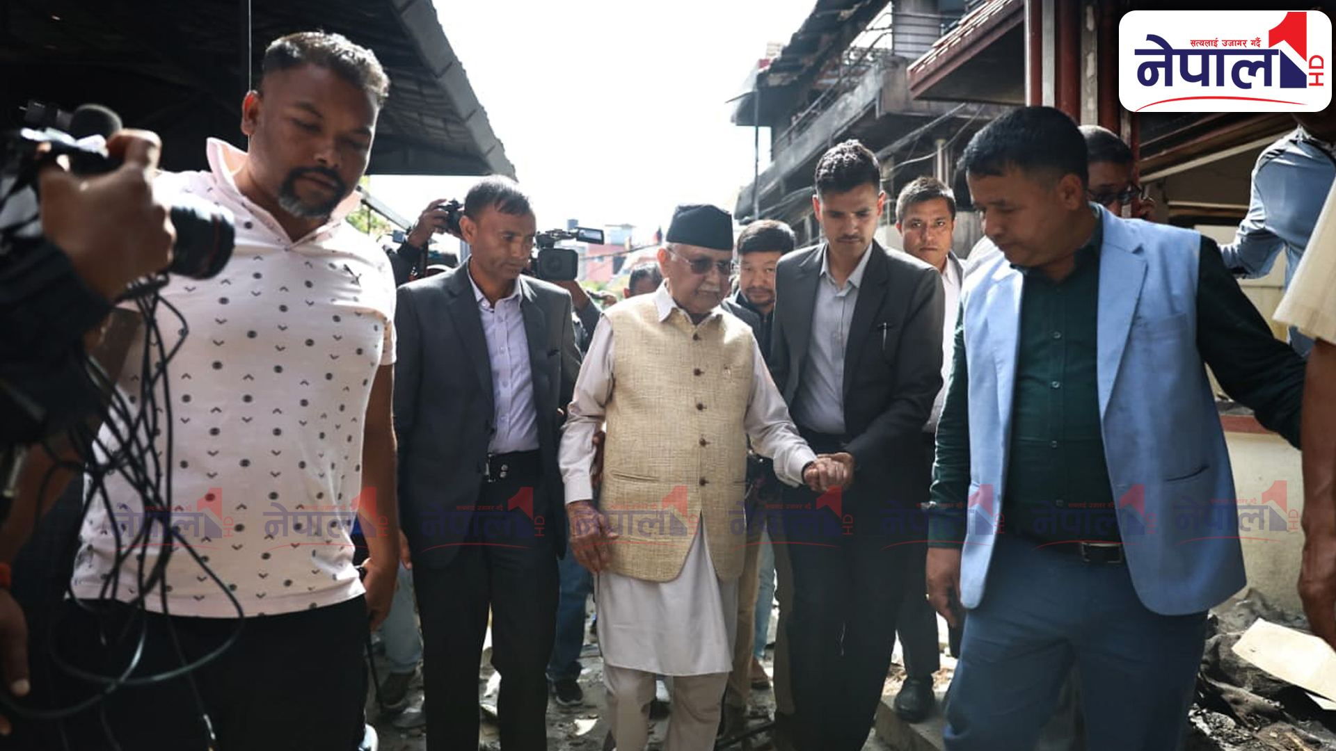 जलेको आफ्नो घर हेर्न बलकोट पुगे अध्यक्ष ओली (तस्बिरहरु)