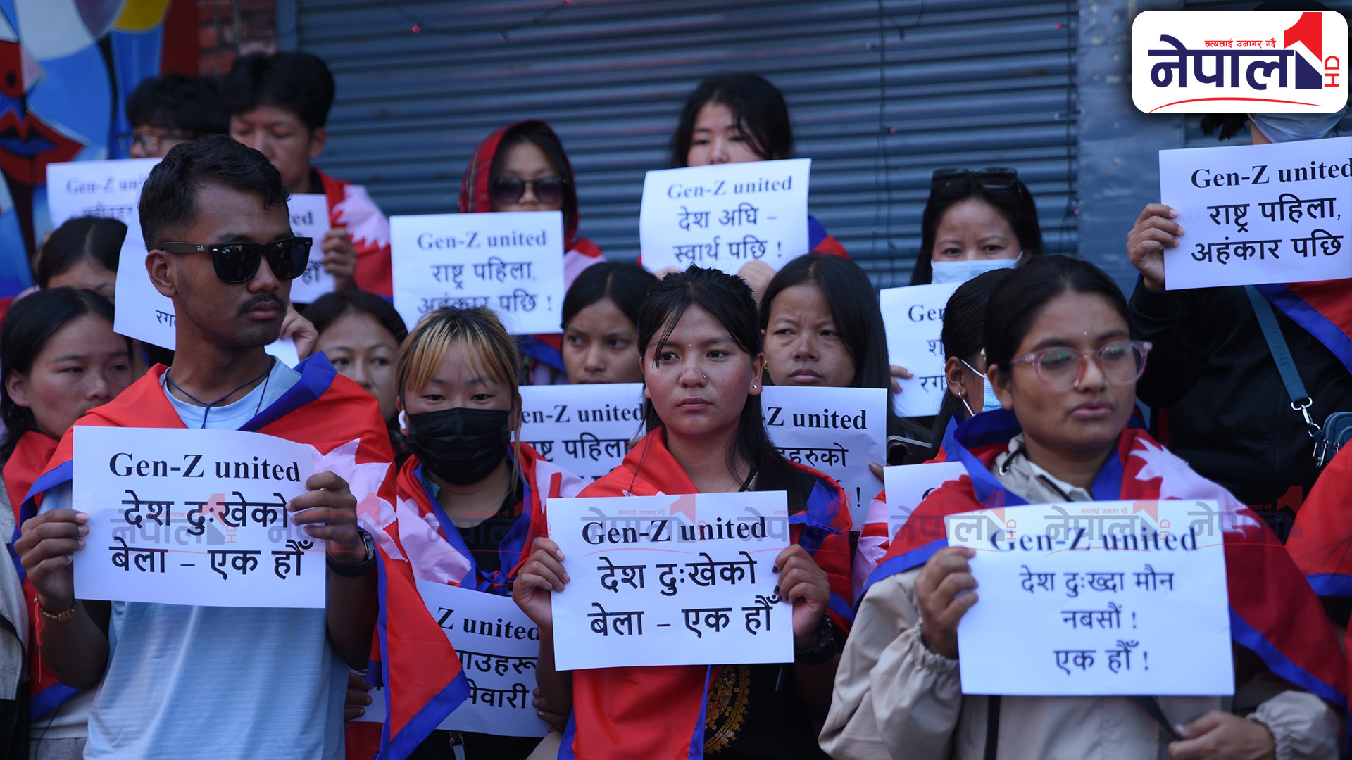उनीहरुले ‘राष्ट्र पहिला, अहंकार पछि’, ‘देश दुख्दा मौन नबसौं, एक हौं’ लगायतका नारा लेखिएका प्लेकार्ड बोकेका छन् ।