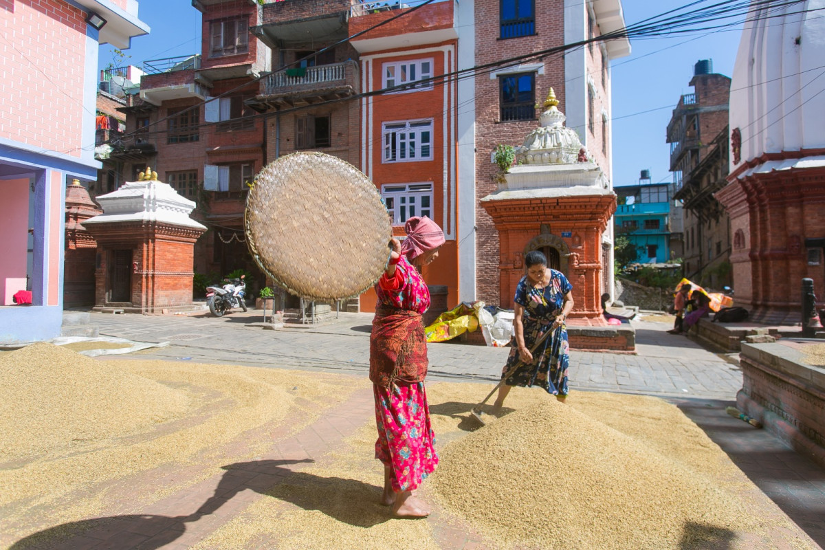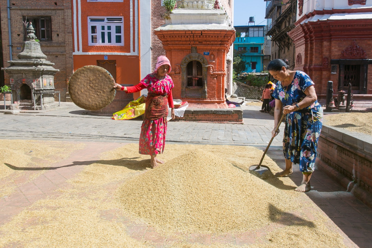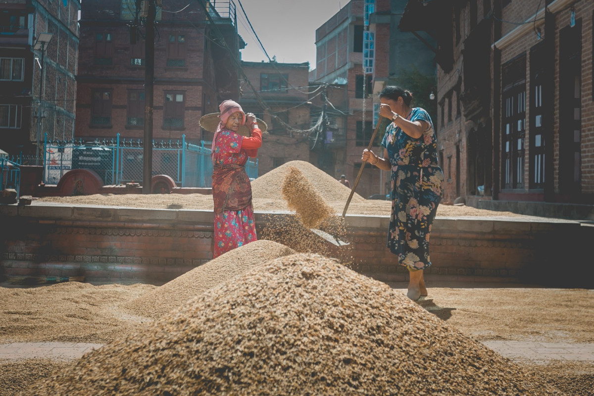 धान भित्र्याउने किसानको मेहनत र हाँसो (फोटो फिचर)