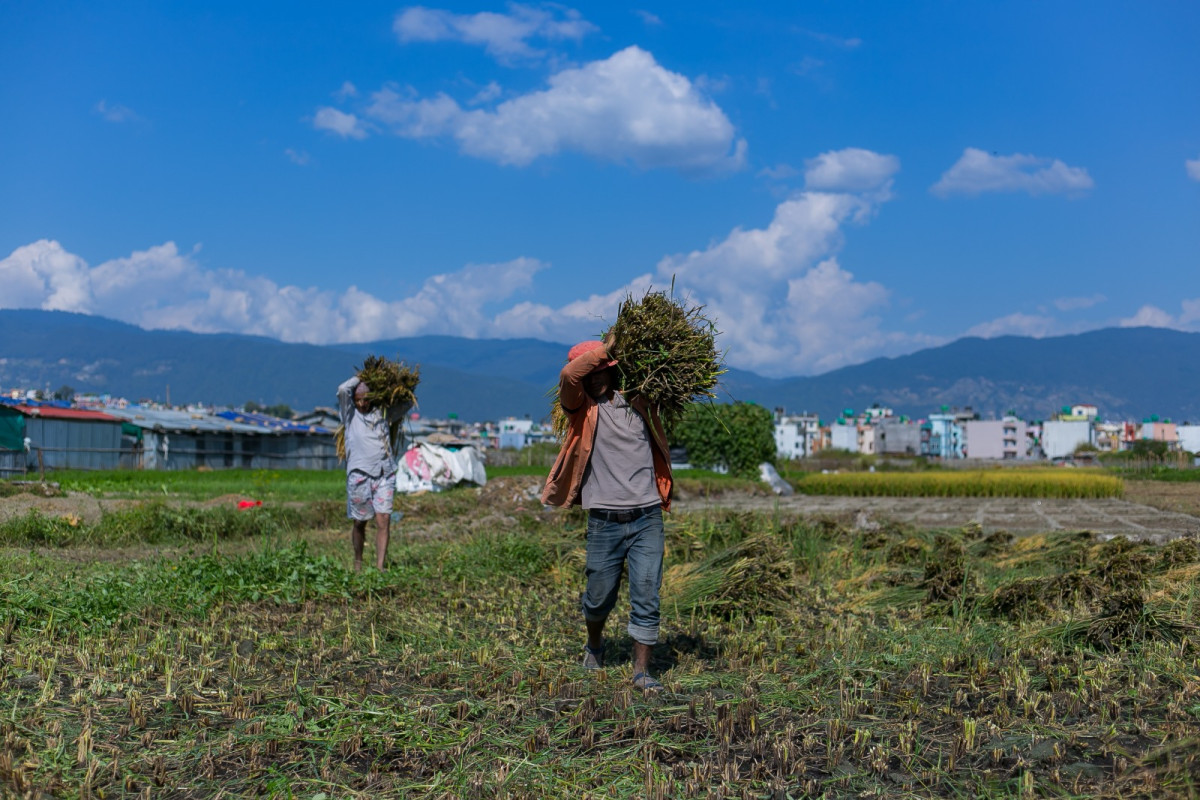 सूर्यास्तको रातो रंगमा रंगिएको आकाशमुनि खेतबाट धान बोकेर घर फर्किंदै गरेका किसान र उनीहरूको पाइलामा थकानसँगै गर्वको चमक हुन्छ । धान भित्र्याउने यो चटारोमा किसानले बजार मूल्यको अनिश्चितता, भण्डारणको समस्या र जलवायु परिवर्तनको चुनौती झेलिरहेका छन् । तर पनि, उनीहरूको मेहनत र सामूहिक भावनाले हरेक खेतलाई उत्सवमय बनाएको छ ।