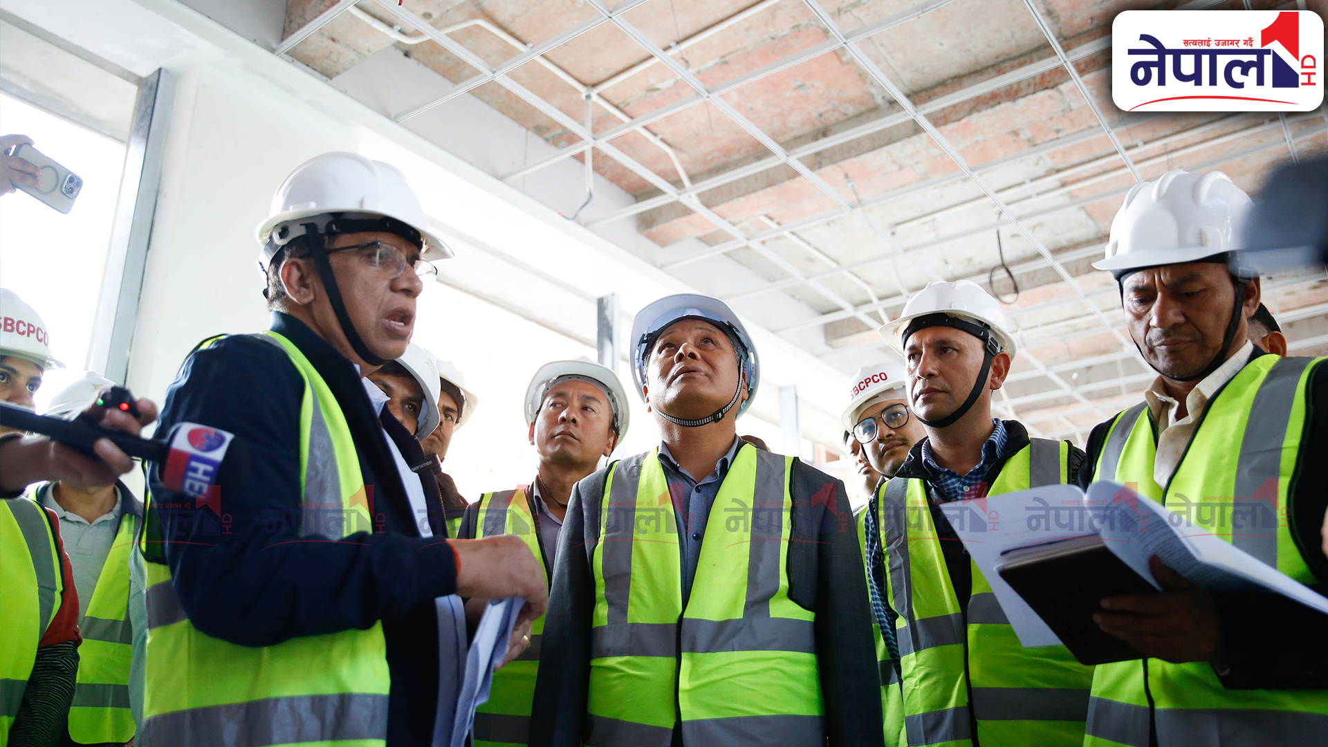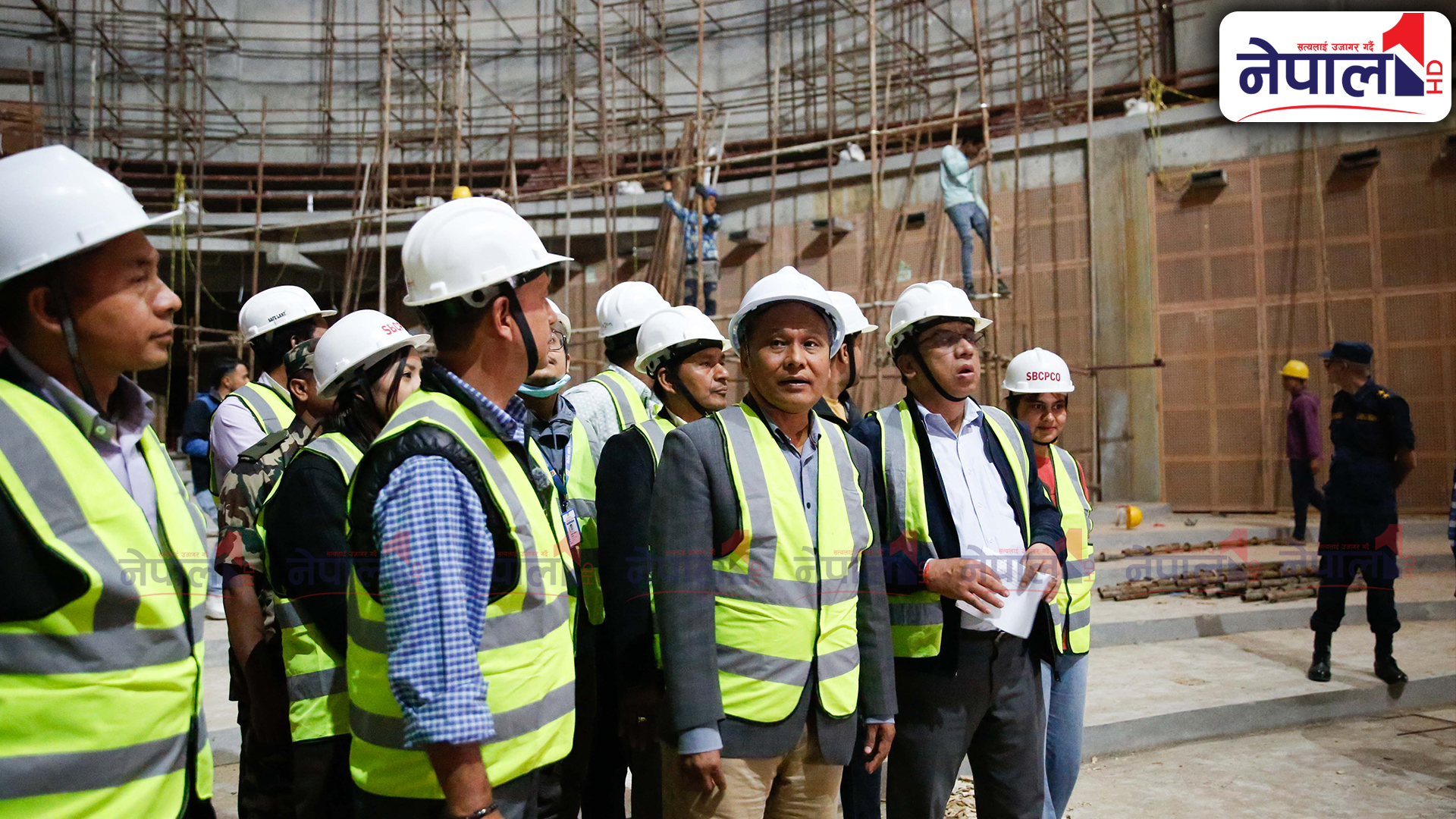 मन्त्री घिसिङद्वारा निर्माणाधिन संसद भवनको निरीक्षण