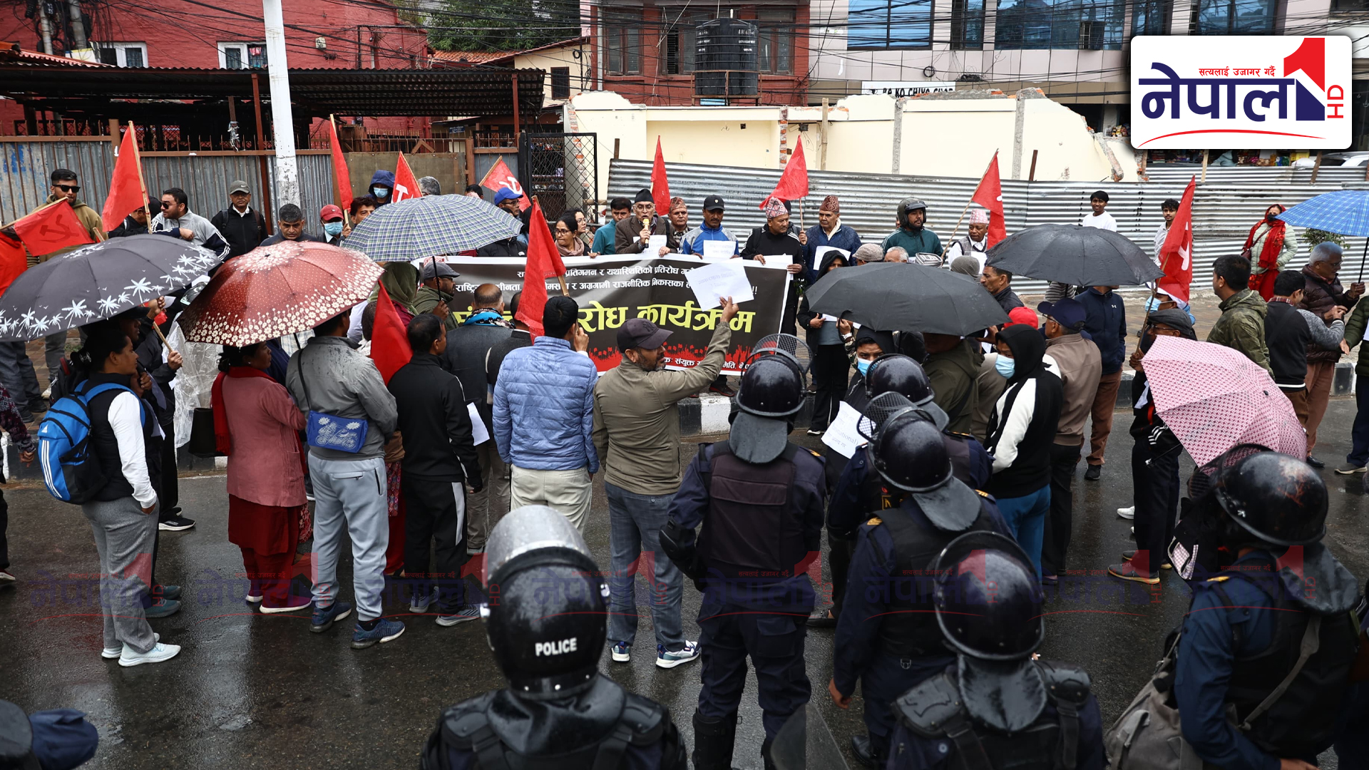 संयुक्त संघर्ष समिति नेपालको माइतीघरमा प्रहरी घेराभित्र प्रदर्शन