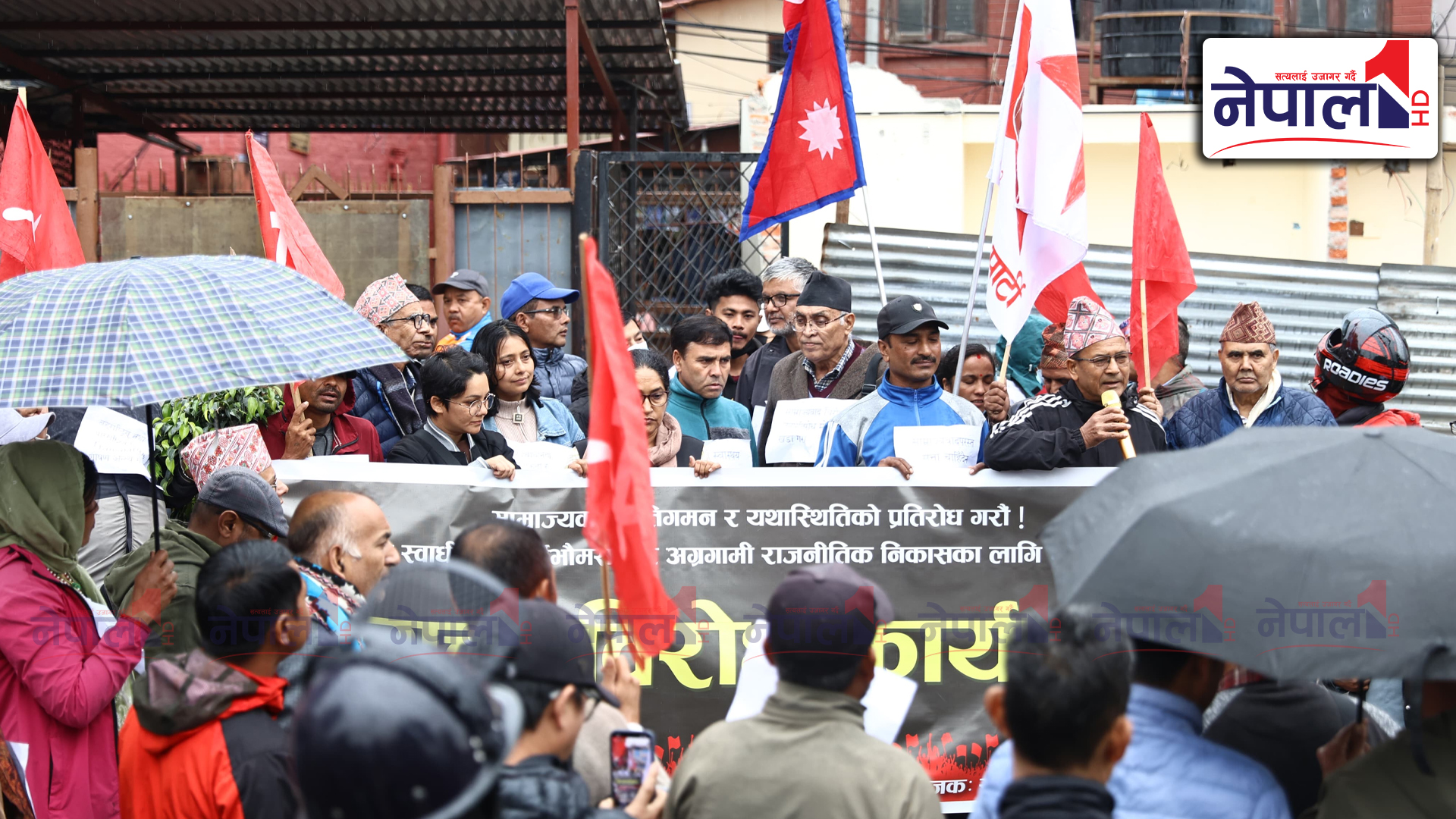साम्राज्यवाद, प्रतिगमन र यथास्थितिको प्रतिरोध गरौं , राष्ट्रिय स्वाधीनता, सार्वभौमसत्ता र अग्रगामी राजनीतिक निकासका लागि एकजुट होऔं भन्ने नारा सहित संयुक्त विरोध कार्यक्रम भएको हो ।