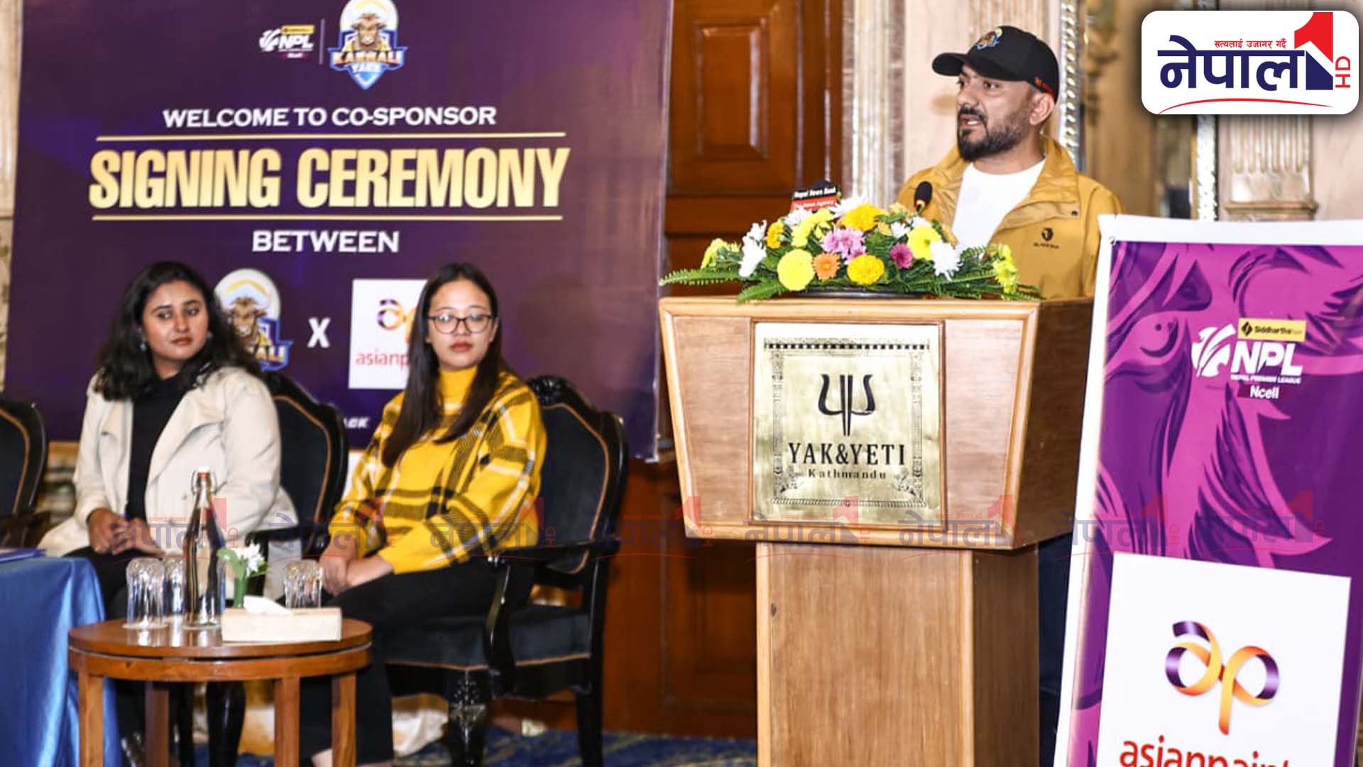 काठमाडौँ । कर्णाली याक्स स्पोट्स प्रा।लीले एसियन पेन्ट्सलाई सह–प्रायोजकको रुपमा भित्राएको छ । मंगलबार काठमाडौंको याक एण्ड यति होटलमा कर्णाली याक्समा निर्देशक गृहेन्द्र घिमिरे र एसियन पेन्ट्स मार्केटिङ सहायक प्रवन्धक आस्था सत्यालले सम्झौता पत्रमा हस्ताक्षर गरेका छन् ।