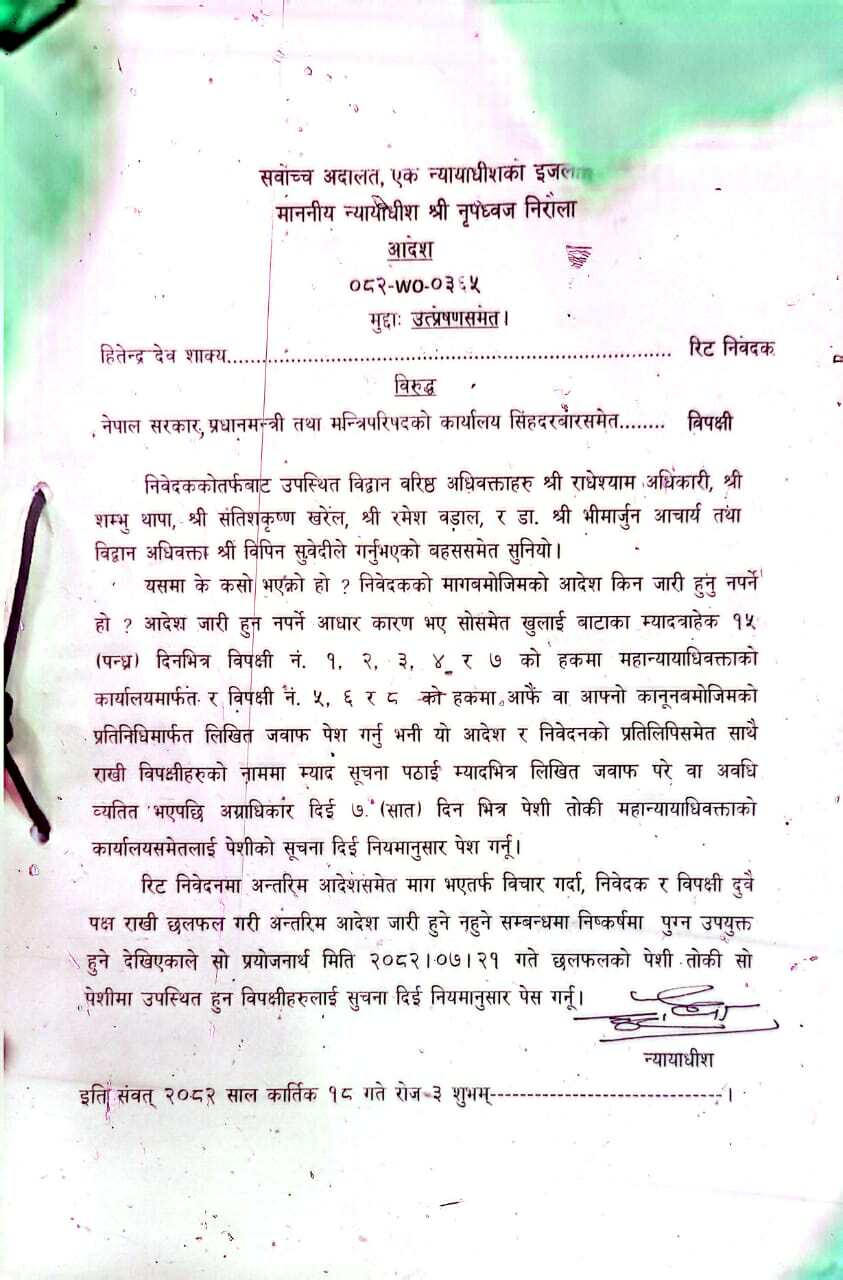 हितेन्द्रदेव शाक्यको रिटमा कारण देखाउ आदेश