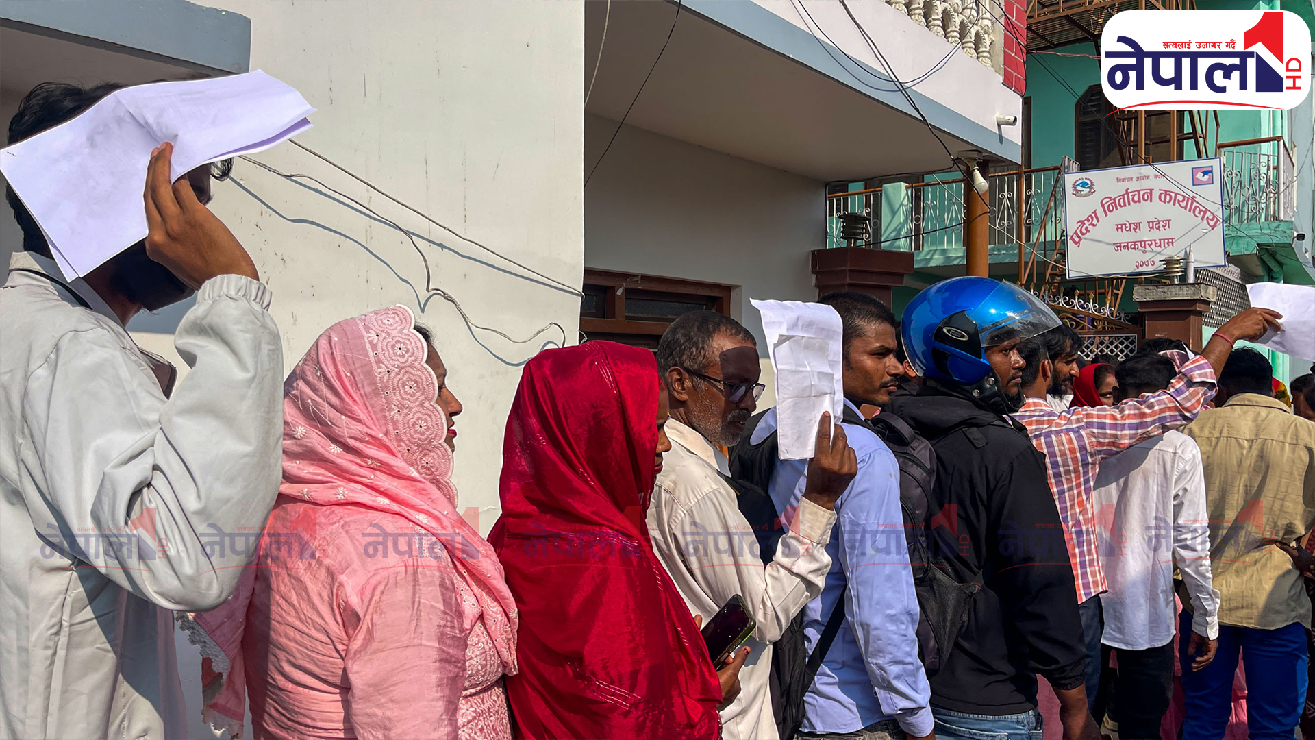 कार्यालयको काम बिहान १० बजेदेखि हुने भए पनि मतदाता नामावलीमा नाम दर्ता गराउनेहरू बिहानै ९ बजेबाट नै लाइनमा उभिने गरेका छन्।