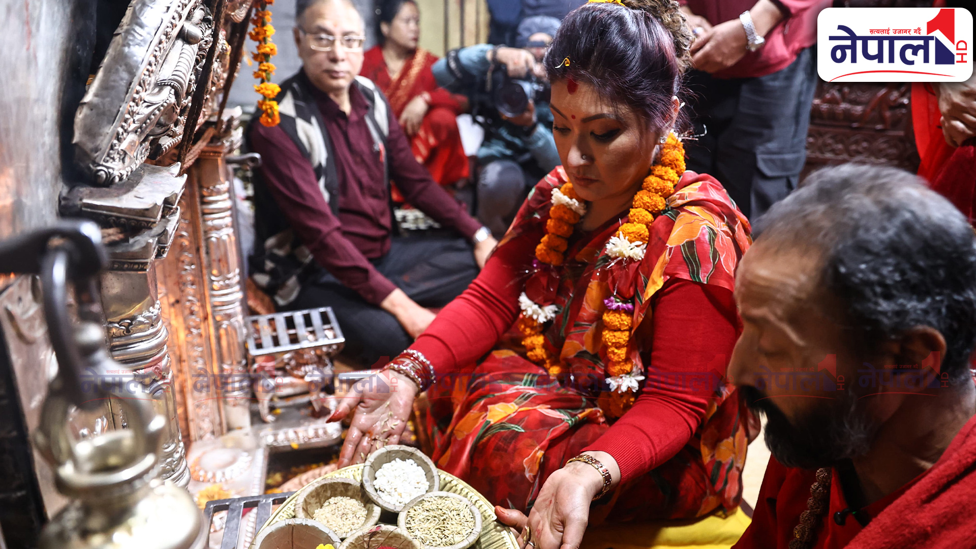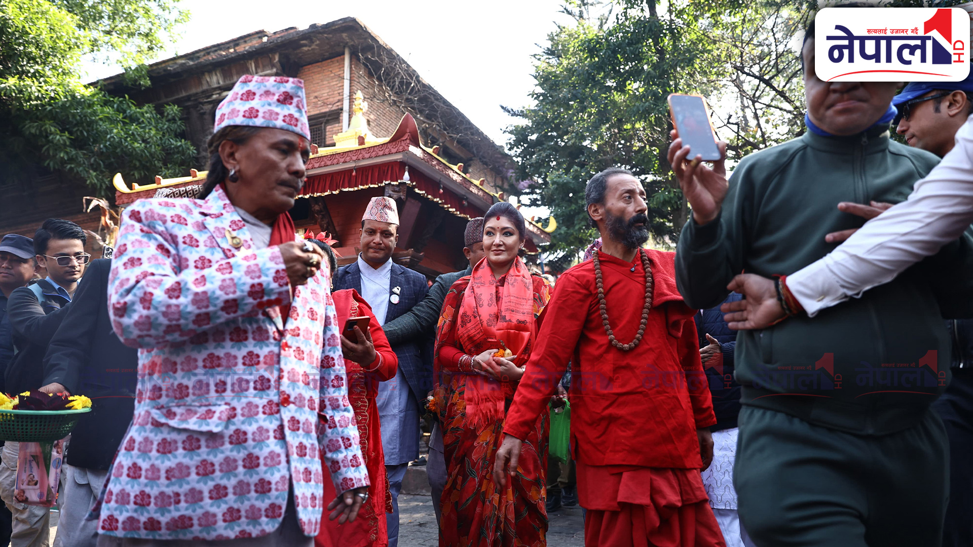 काठमाडौँ । पूर्वयुवराज्ञी हिमानी शाहले ललितपुरको पाटनस्थित बंगलामुखी मन्दिरको दर्शन गरेकी छिन् । शनिवार बिहान उनले पाटनमै रहेको कुम्भेश्वर मन्दिरको पनि दर्शन गरी पूजापाठ गरिन् ।