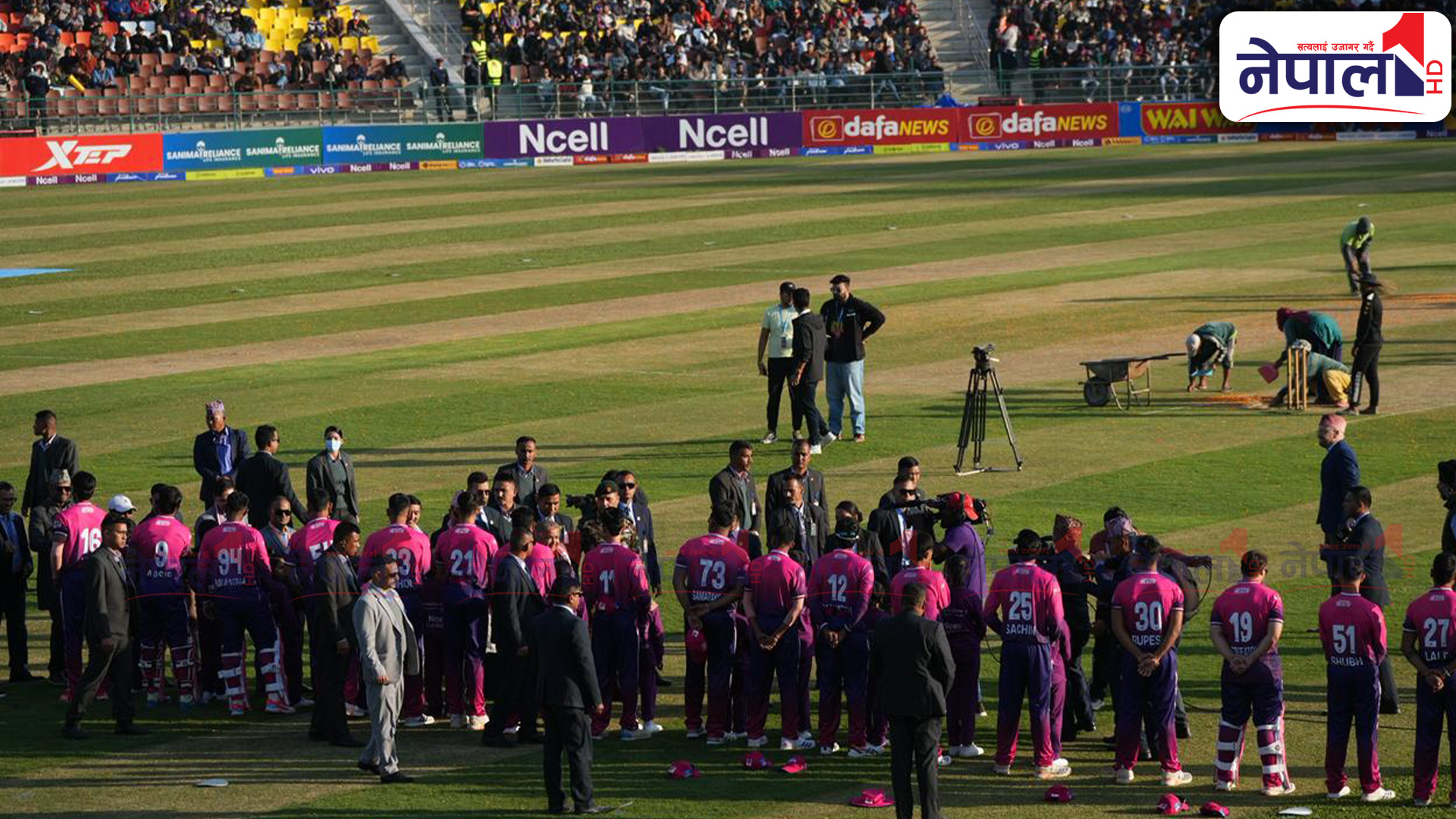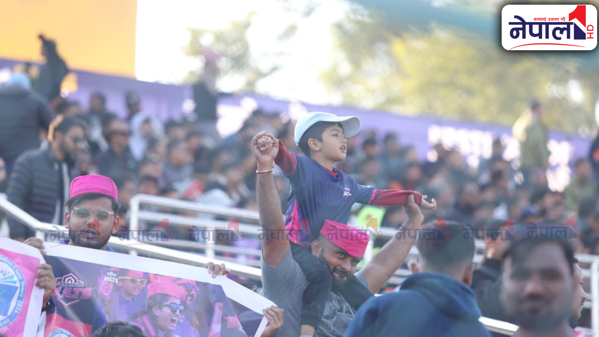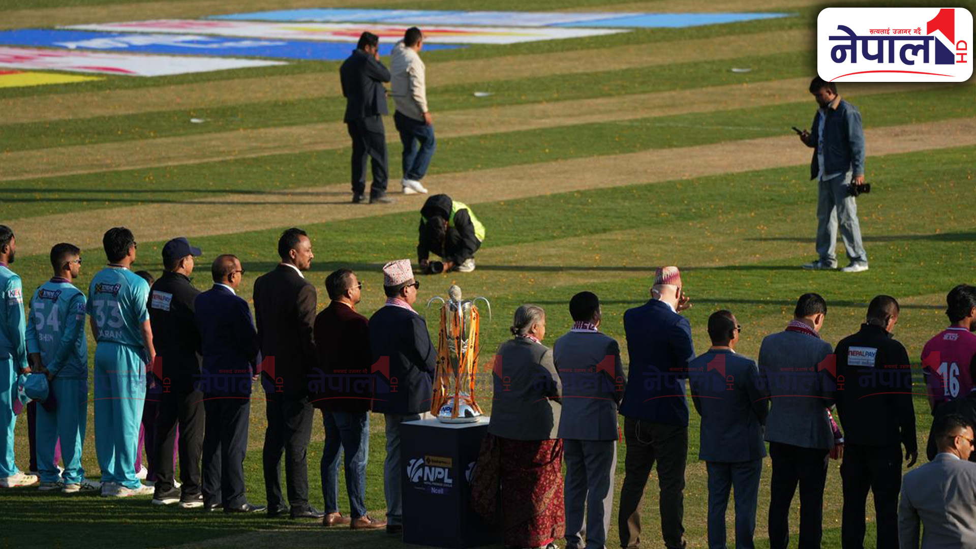 एनपीएलको माहोल: प्रधानमन्त्री पुगिन् खेल हेर्न, हेलीकोप्टरबाट पुष्पवृष्टि (तस्बिरहरु)