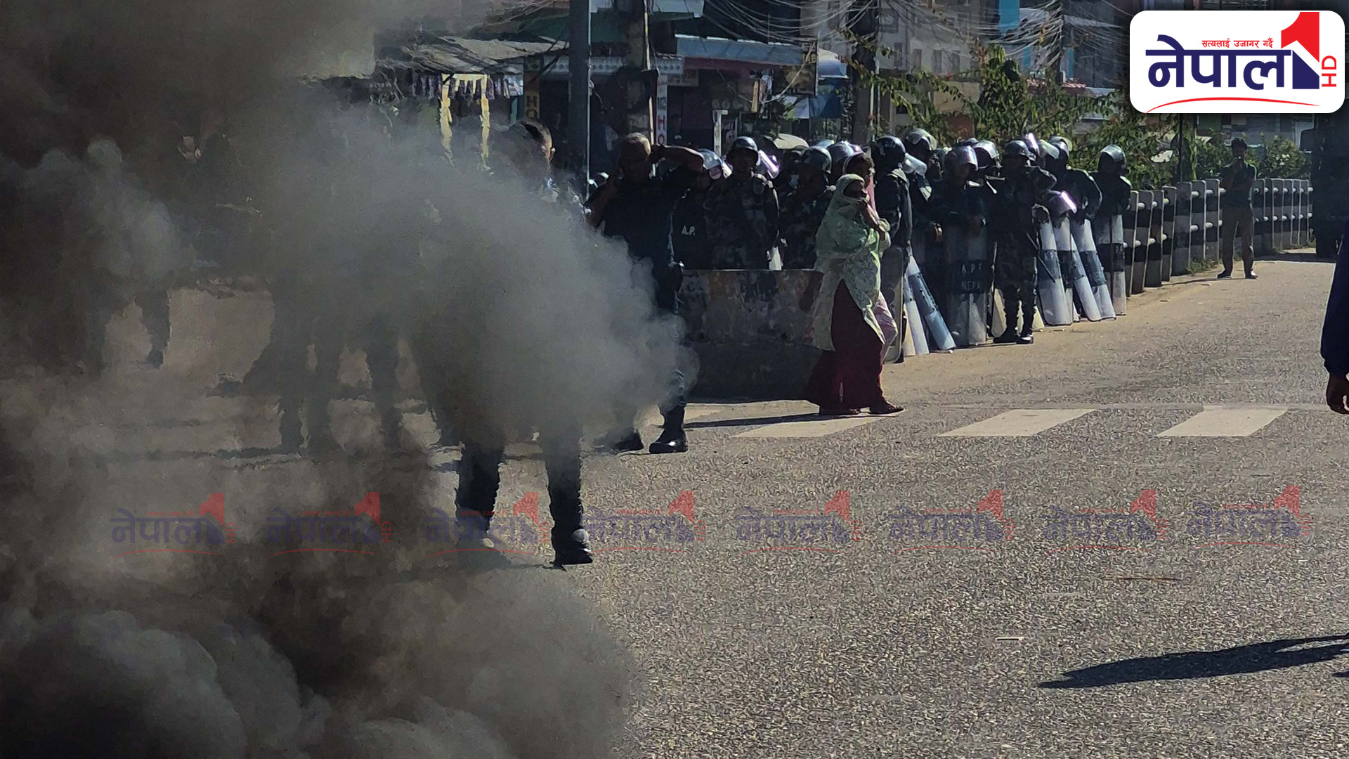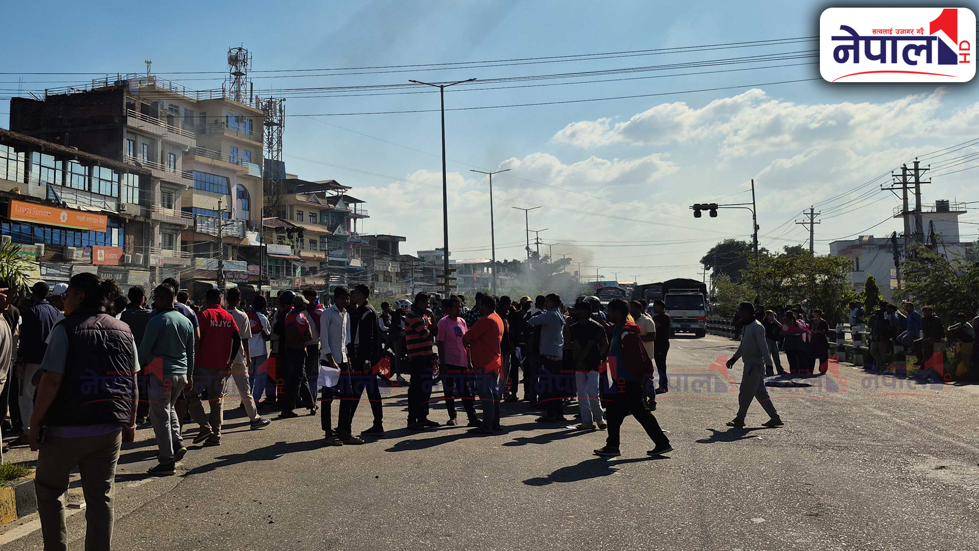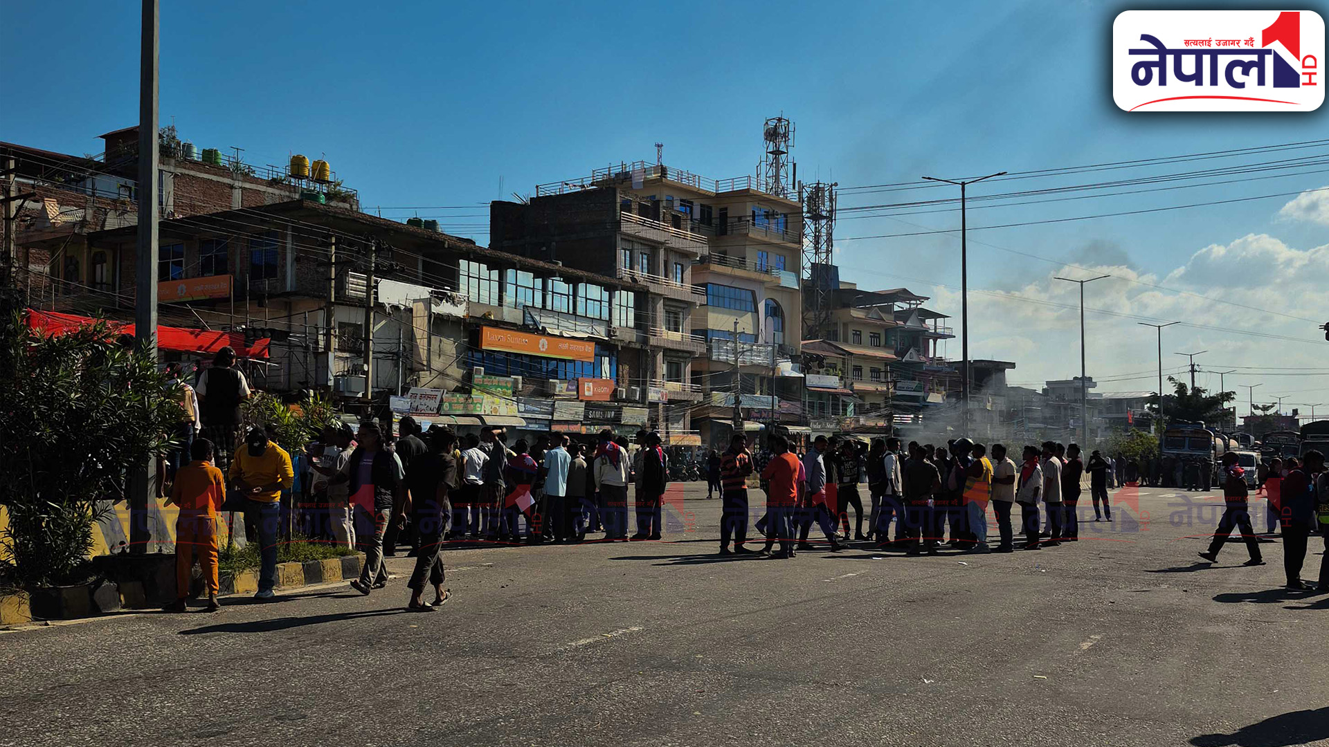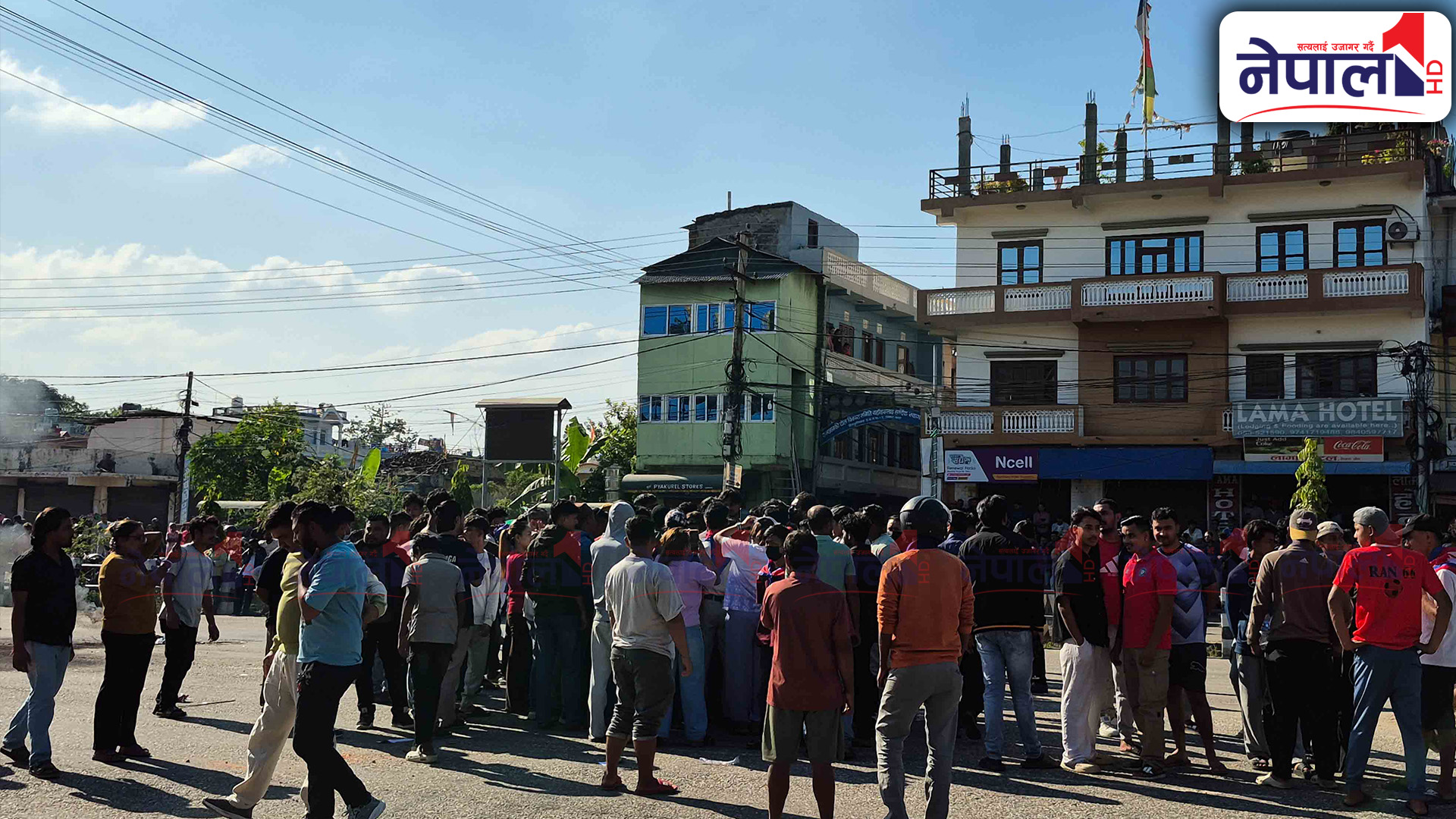 प्रदर्शनमा उत्रिएका जेन-जी समूहले सडकमा टायर बालेका छन् । प्रदर्शनकारी र एमाले कार्यकर्ताबीच झडप हुँदा यस क्षेत्रको अवस्था तनावग्रस्त बनेको छ ।