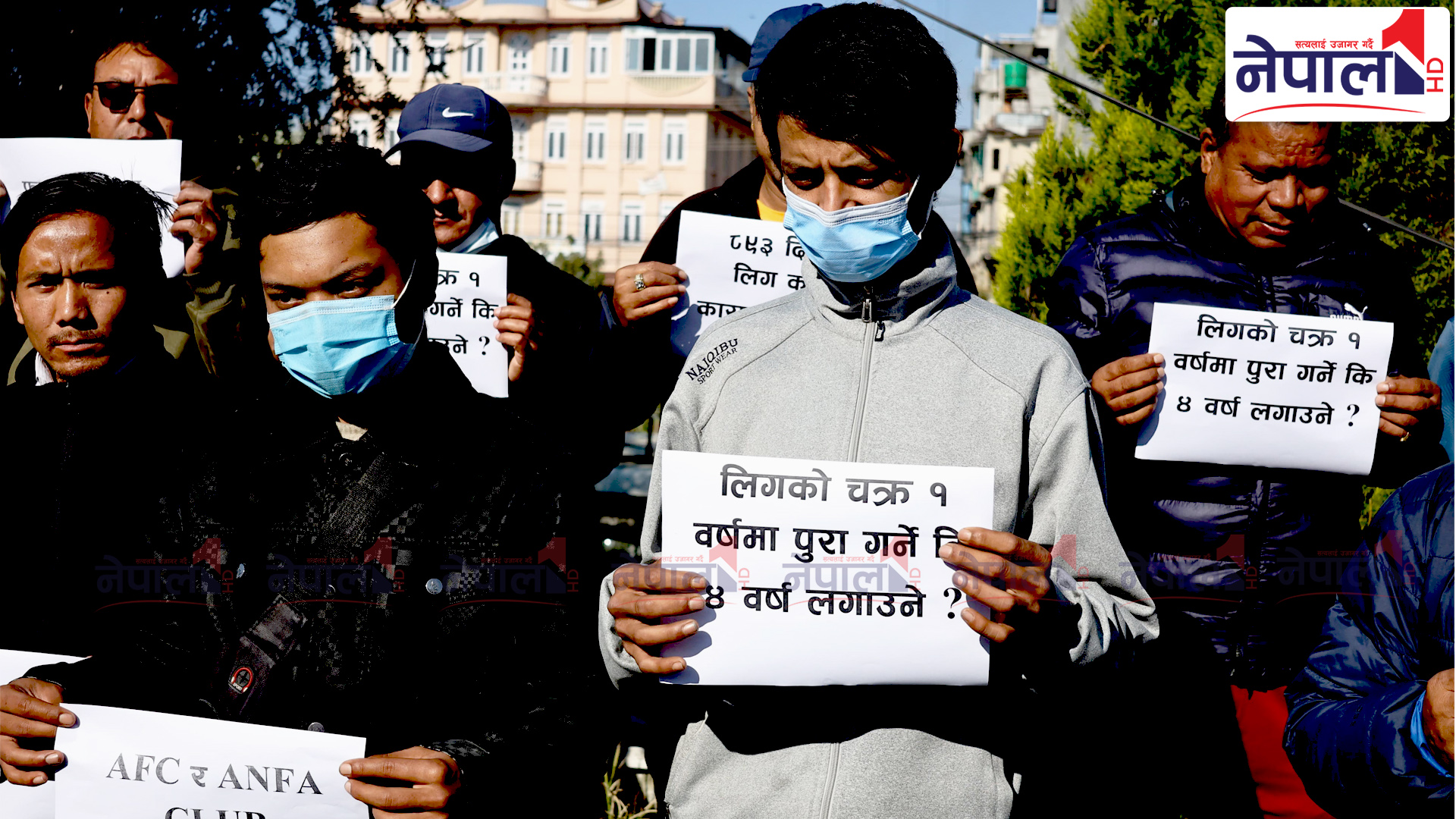एन्फा गेटमा ‘ए डिभिजन’ क्लबको धर्ना (तस्वीरहरु)