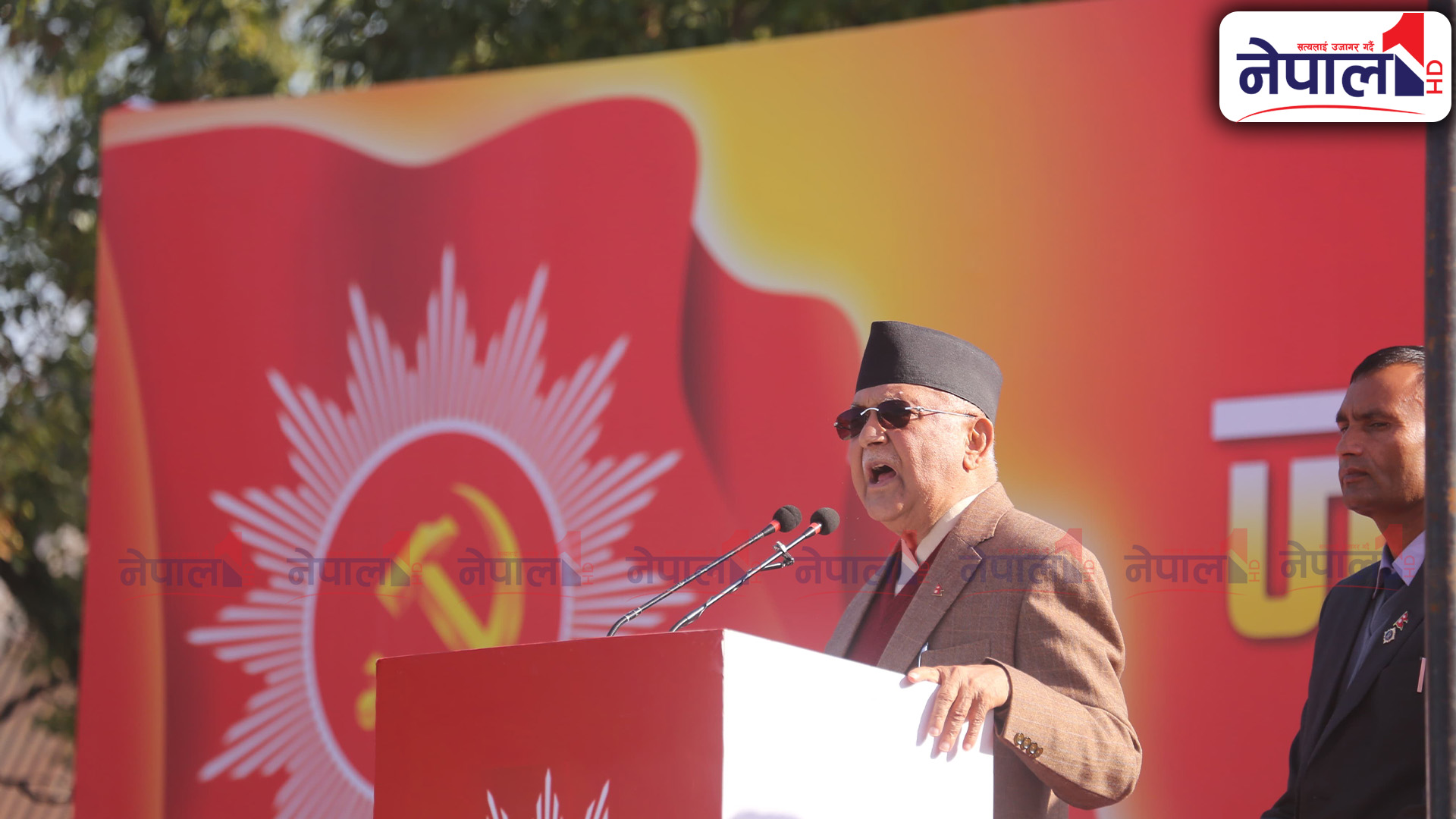 भृकुटीमण्डपको सभामा ओलीको सम्बोधन, तस्बिरमा हेर्नुस्