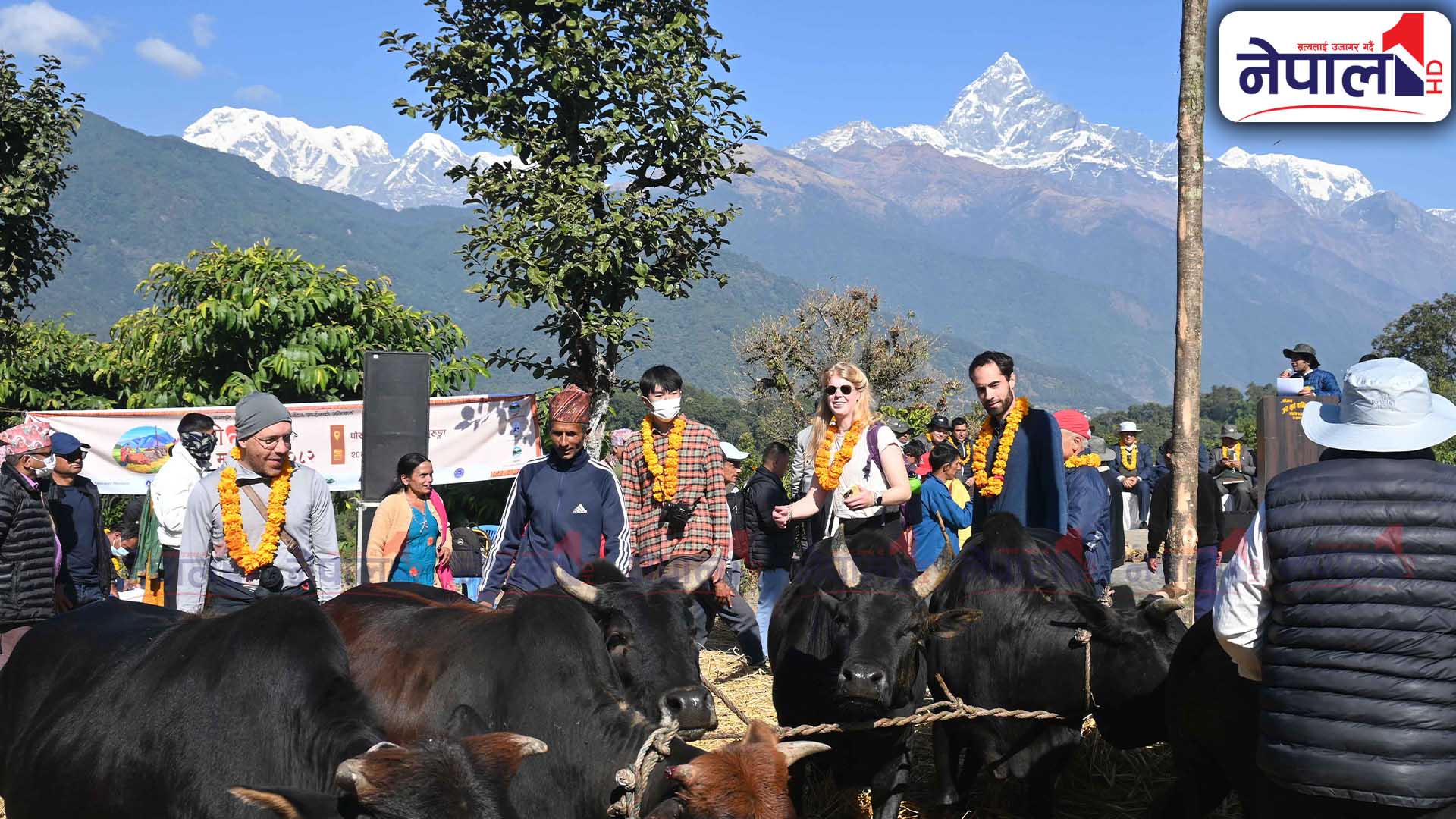 पोखरा भ्रमणमा रहेका विदेशी पर्यटकलाई दाइँ महोत्सवको अनुभव गरेका छन् ।