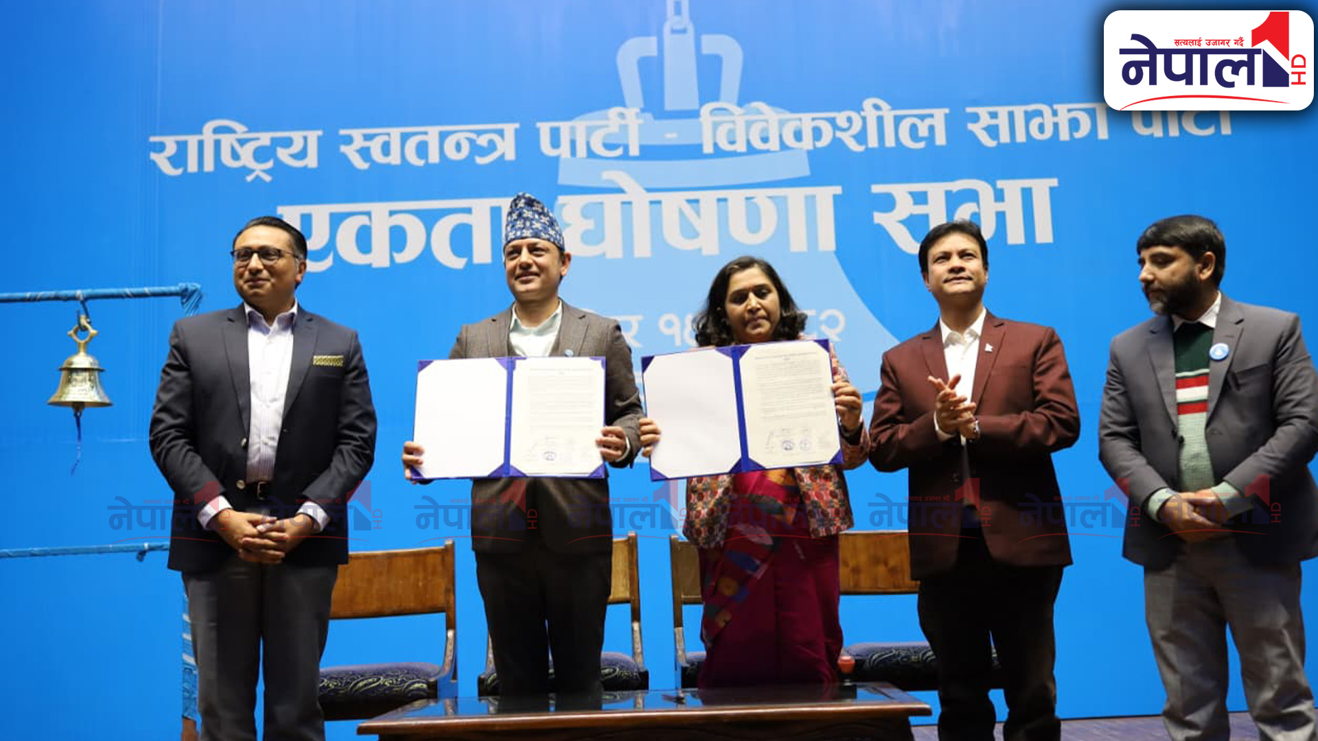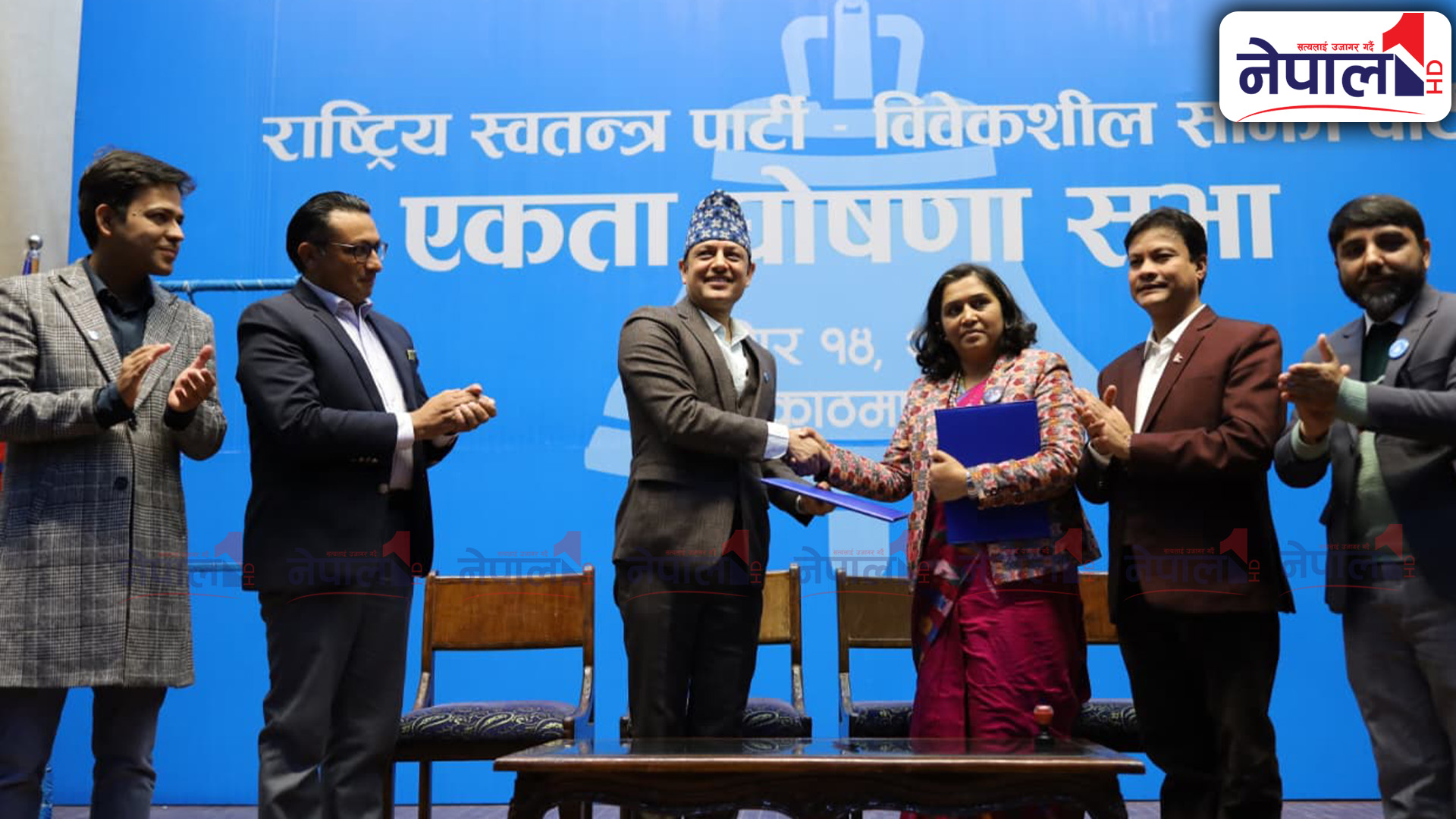 काठमाडौं । वैकल्पिक राजनीतिक आन्दोलनलाई एकीकृत रूपले अघि बढाउने उद्देश्यसहित राष्ट्रिय स्वतन्त्र पार्टी (रास्वपा) र विवेकशील साझा पार्टी औपचारिक रूपमा एक भएका छन् । काठमाडौंमा आयोजित विशेष समारोहमा दुबै दलका शीर्ष नेताहरूले पाँच बुँदे एकीकरण सहमतिमा संयुक्त रूपमा हस्ताक्षर गर्दै नयाँ राजनीतिक यात्राको घोषणा गरेका हुन् ।