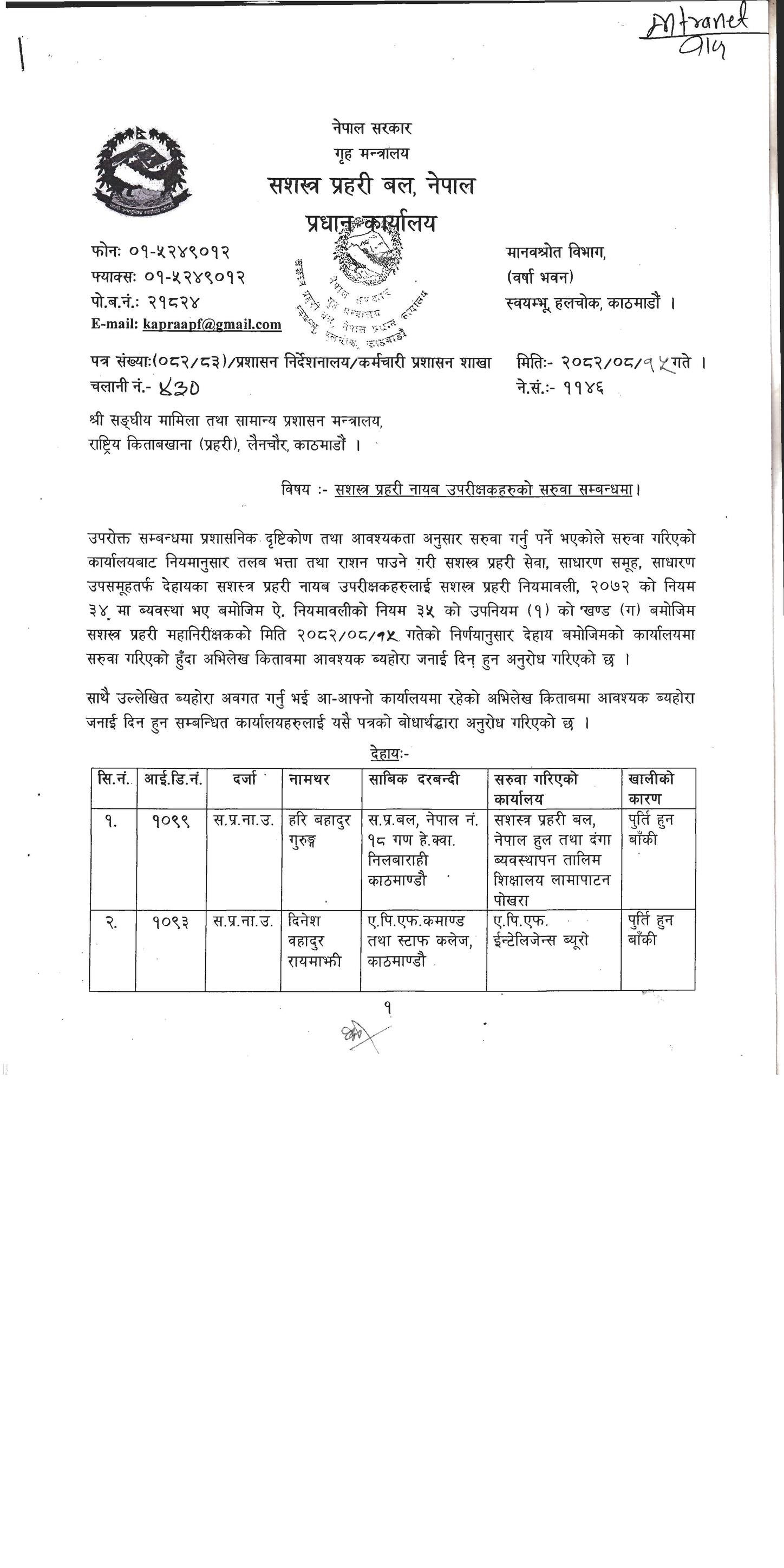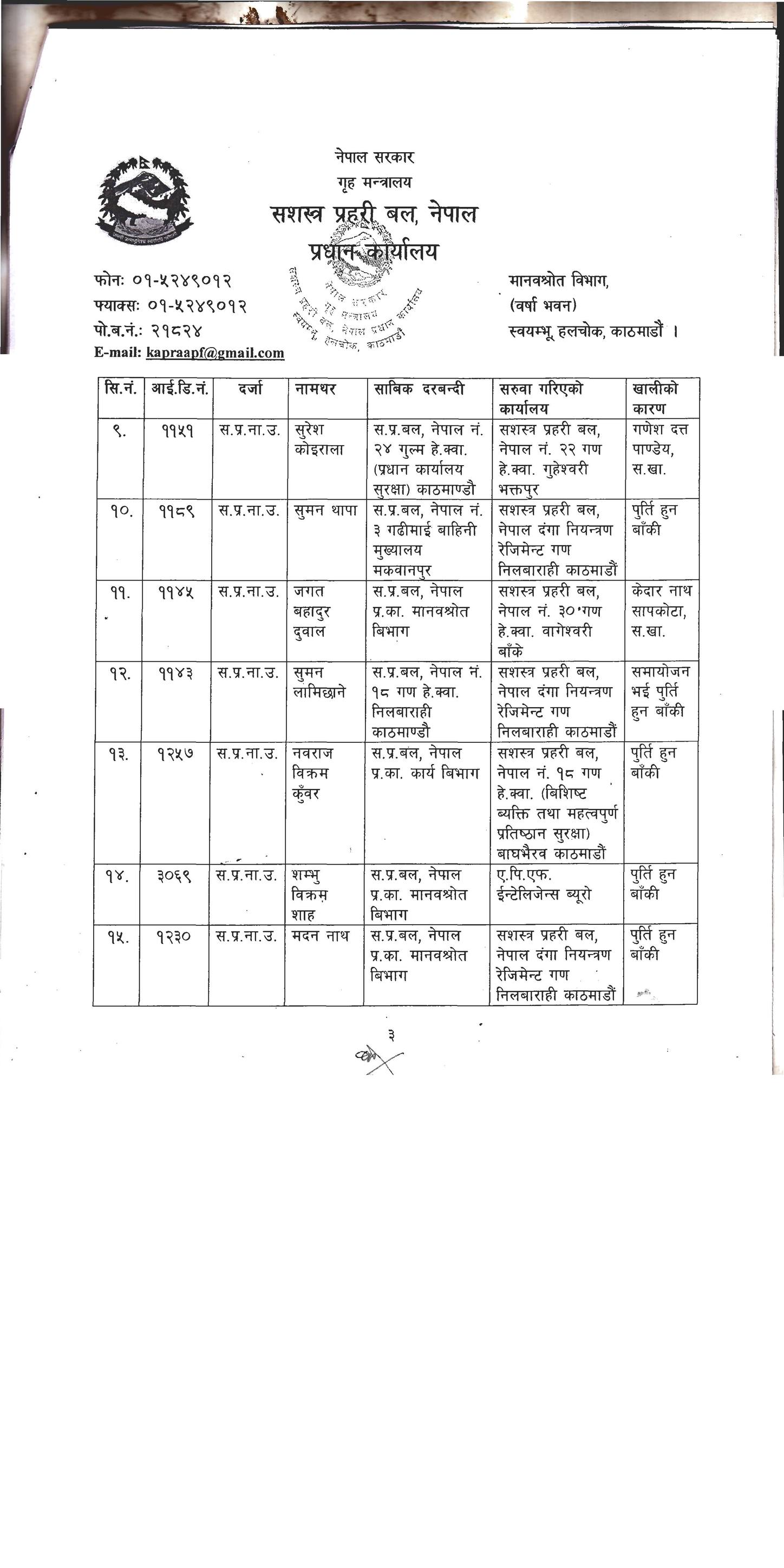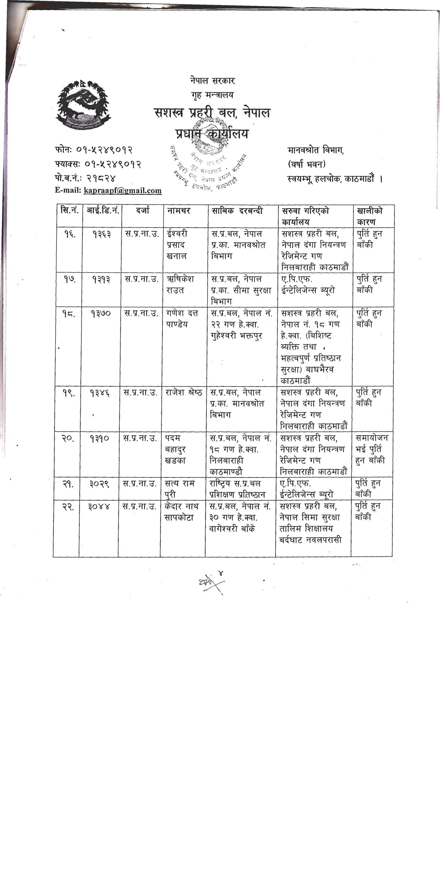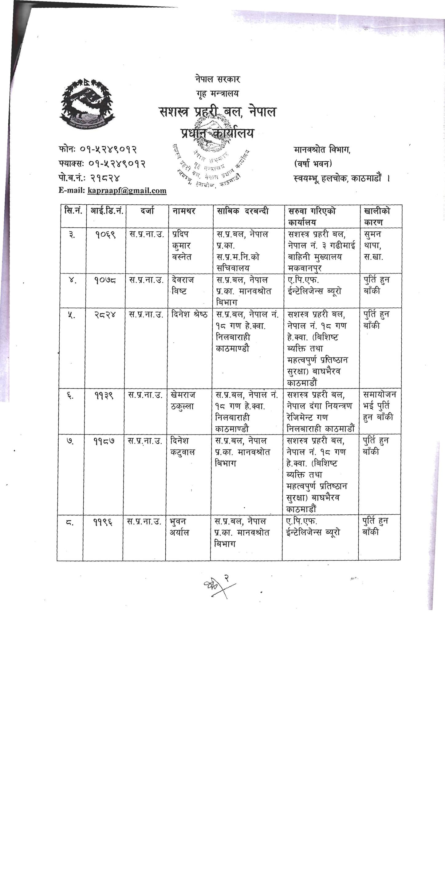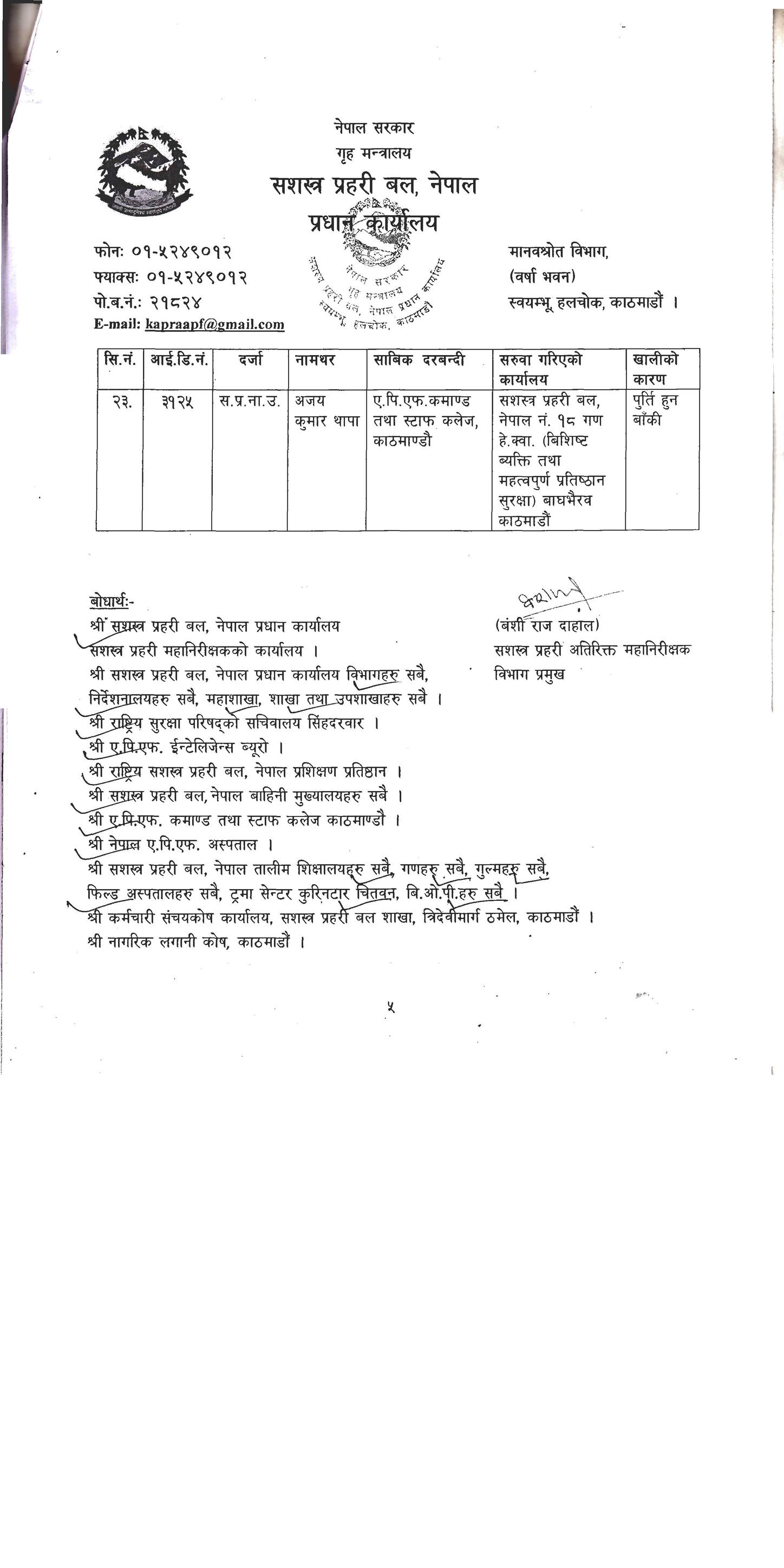 सशस्त्रका २३ डीएसपी र १०३ इन्स्पेक्टरको सरुवा, को कहाँ ? (सूचीसहित)