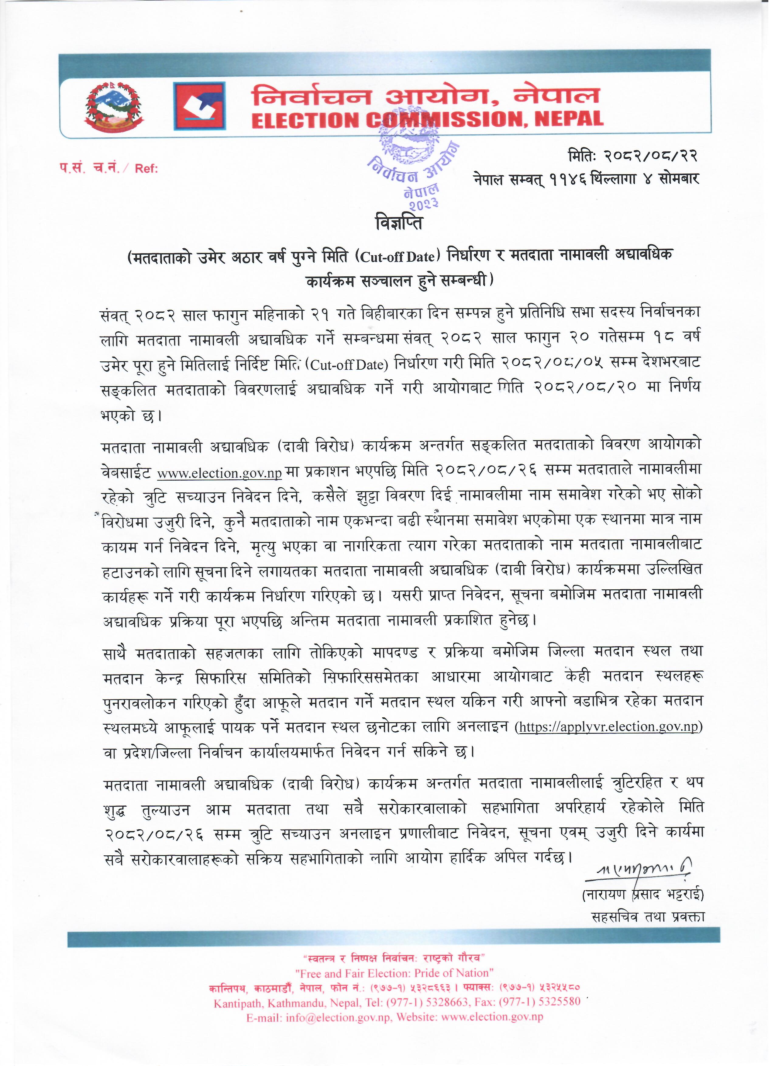 मंसिर २६ गतेभित्र मतदाता नामावलीमा रहेको त्रुटि सच्याउन मिल्ने