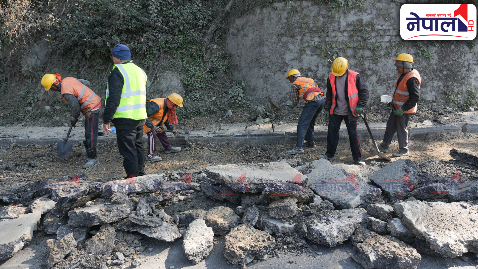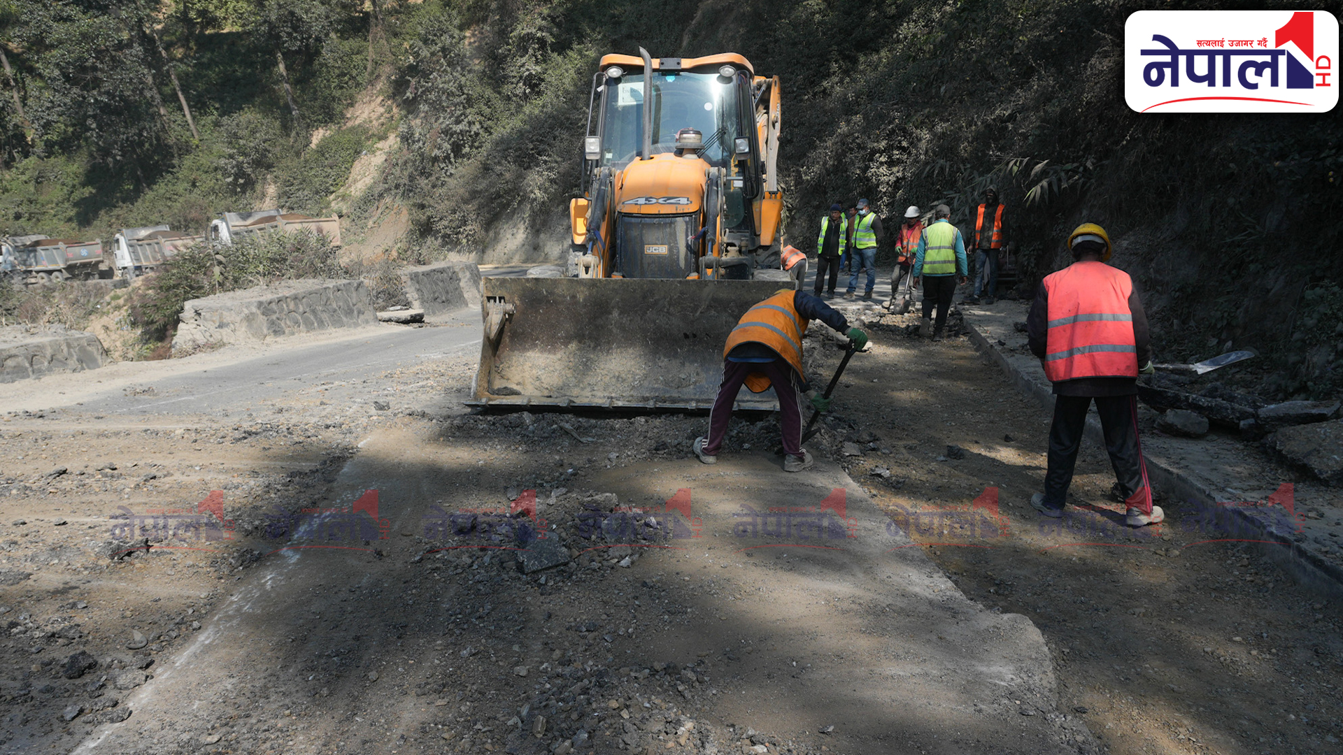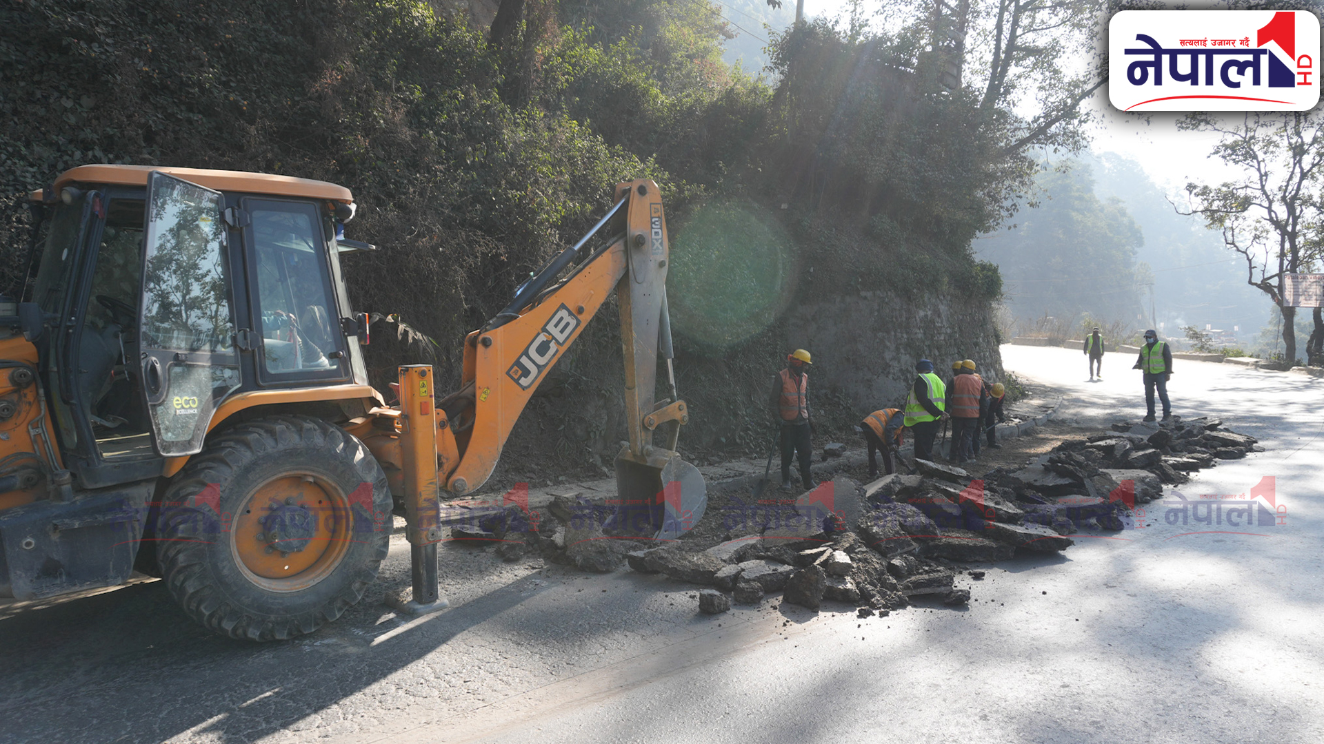 नागढुङ्गा नौबिसे सडक बन्द गरी स्तरोन्नतिको काम सुरु (तस्बिरहरू)
