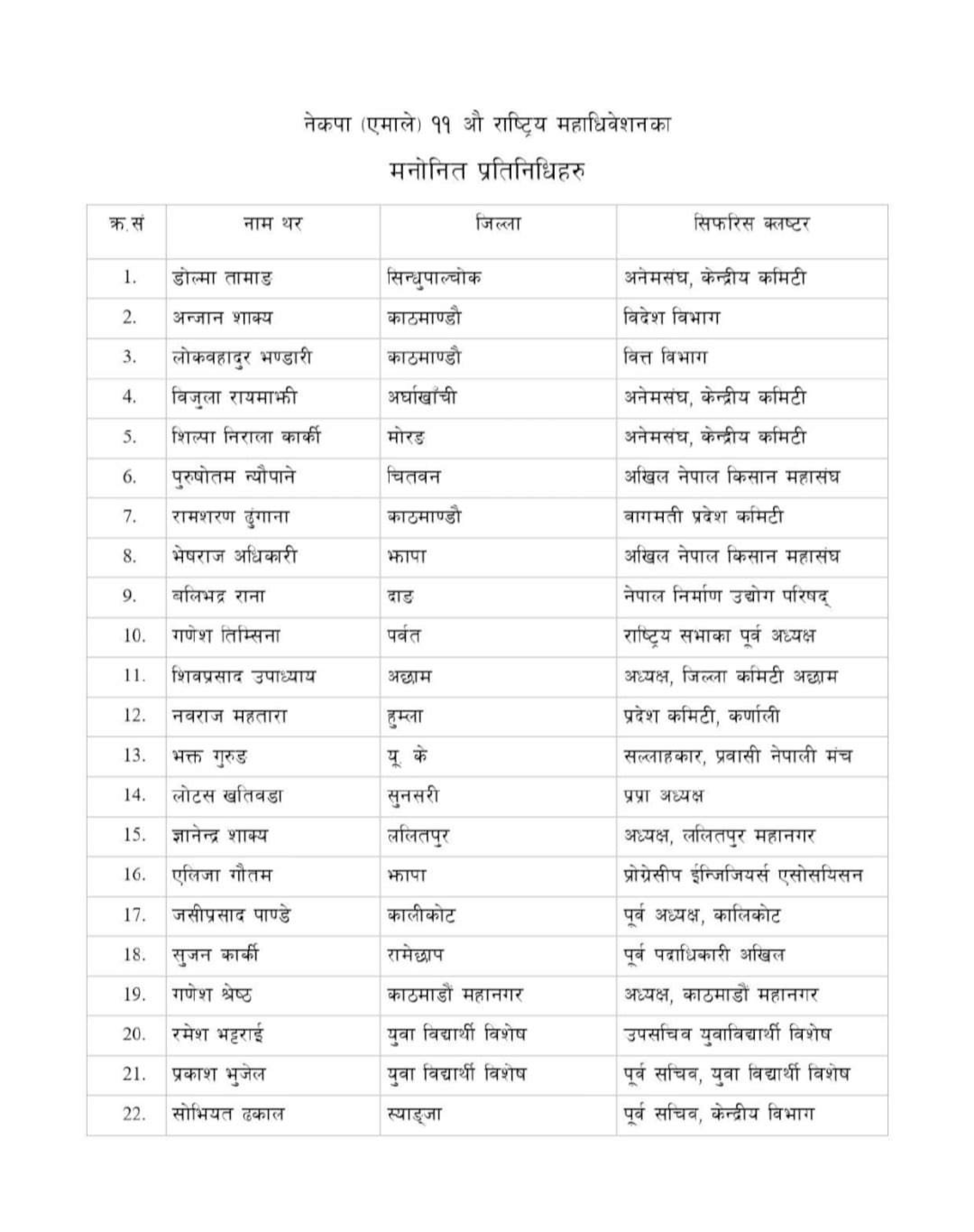 तर उक्त सहमति विपरीत आफूलाई जानकारी नदिई एकलौटी ढंगले मनोनीत प्रतिनिधिको सूची सार्वजनिक गरिएको पोखरेलको आरोप छ । सहमतिको प्रक्रियालाई बेवास्ता गर्दै सूची प्रकाशन गरिनु पार्टीभित्रको आन्तरिक लोकतान्त्रिक अभ्यासविपरीत भएको उनको भनाइ छ । मनोनीत प्रतिनिधि सूचीलाई लिएर उत्पन्न विवादले एमालेभित्र नेतृत्व तहमा असन्तुष्टि चुलिएको संकेत देखिएको छ । यस विषयमा पार्टी नेतृत्वबीच थप छलफल आवश्यक रहेको नेताहरूको भनाइ छ ।