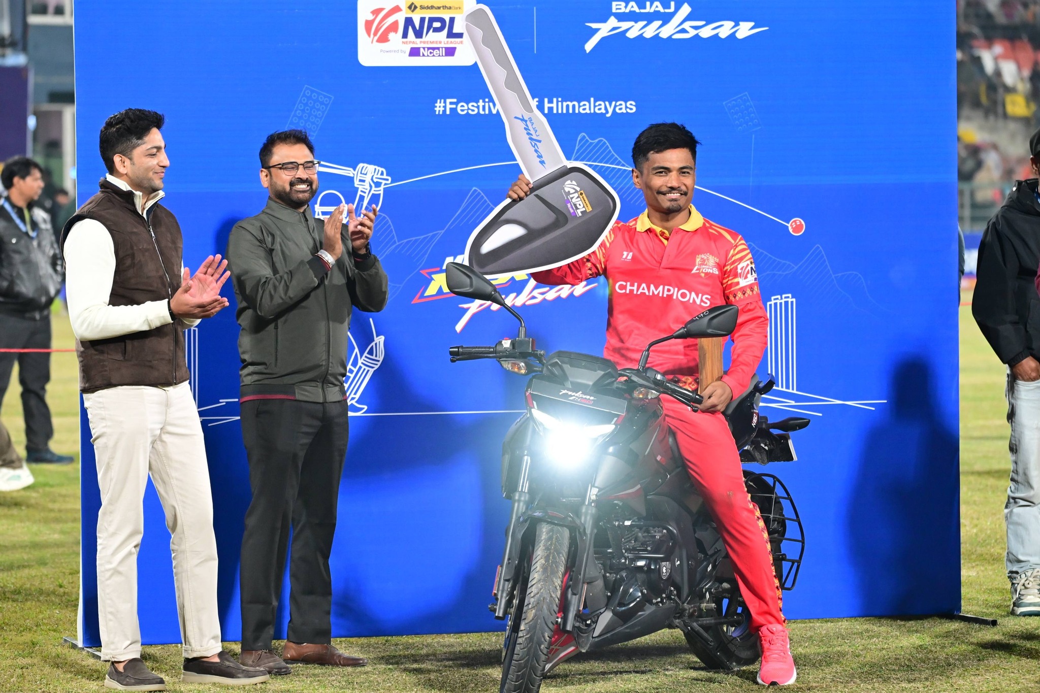काठमाडौं । सिद्धार्थ बैंक नेपाल प्रिमियर लिग (एनपीएल) मा लुम्बिनी लायन्सका कप्तान रोहित पौडेल सर्वोत्कृष्ट नेपाली खेलाडी बनेका छन् । एनपीएलको फाइलनमा लुम्बिनीलाई उपाधि जिताउँदै उनी सर्वोत्कृष्ट नेपाली खेलाडी बनेका हुन् । उनले कार पुरस्कार पाएका छन् । सुदूरपश्चिम रोयल्सविरुद्धको खेलमा रोहित तीन विकेट लिएका थिए ।
