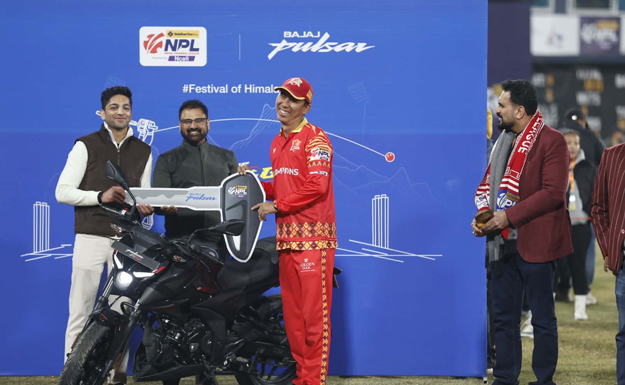 काठमाडौं । नेपाल प्रिमियर लिग (एनपीएल) सिजन–२ मा लुम्बिनी लायन्सले उपाधिसँगै व्यक्तिगत पुरस्कारमा पनि वर्चस्व कायम गरेको छ । शनिबार सम्पन्न फाइनलमा सुदूरपश्चिमलाई पराजित गर्दै च्याम्पियन बनेको लुम्बिनीका खेलाडीहरू प्रतियोगिताका मुख्य आकर्षण बने ।