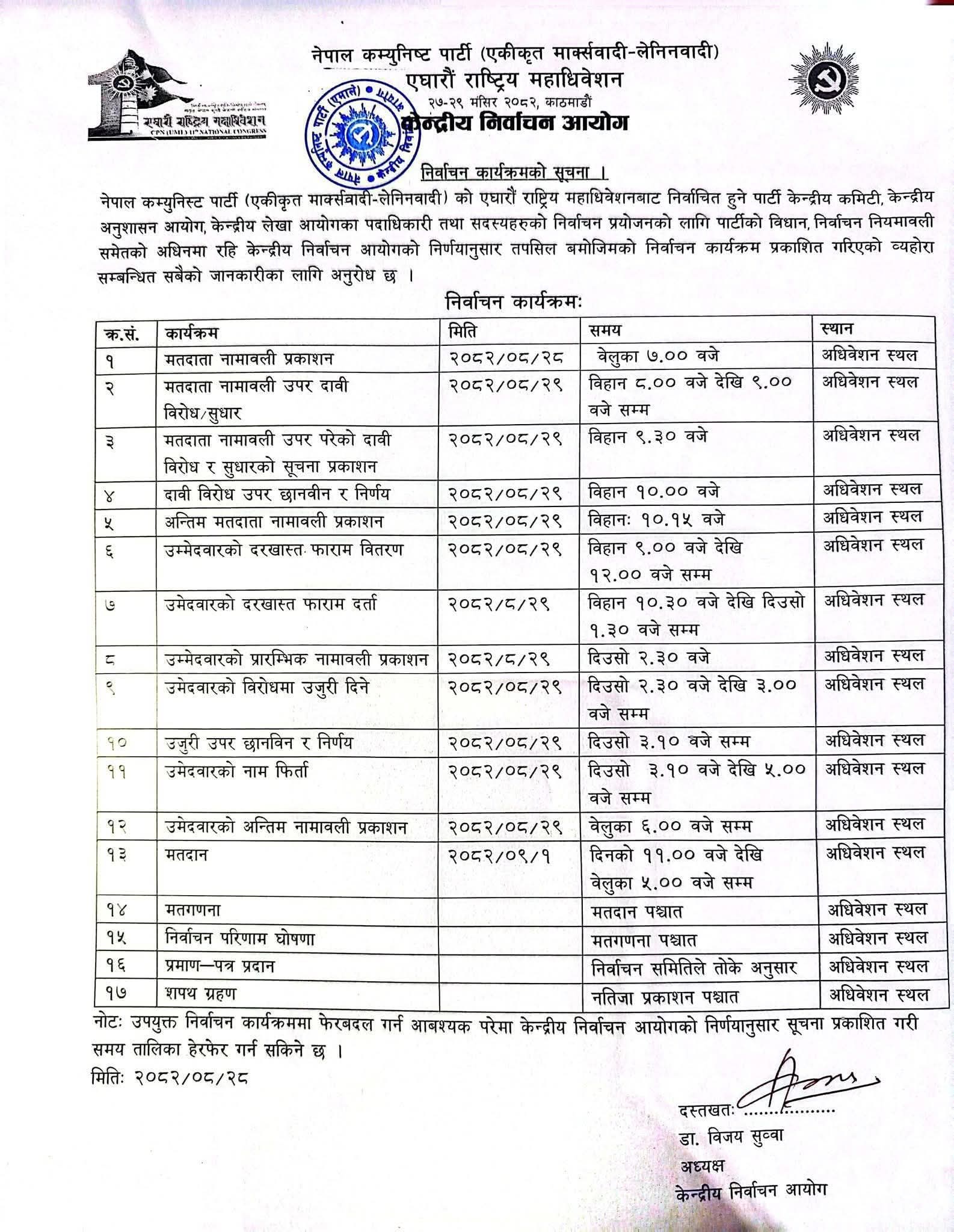 एमाले महाधिवेशन : आज उम्मेदवारी दर्ता र अन्तिम नामावली प्रकाशन, भोलि निर्वाचन