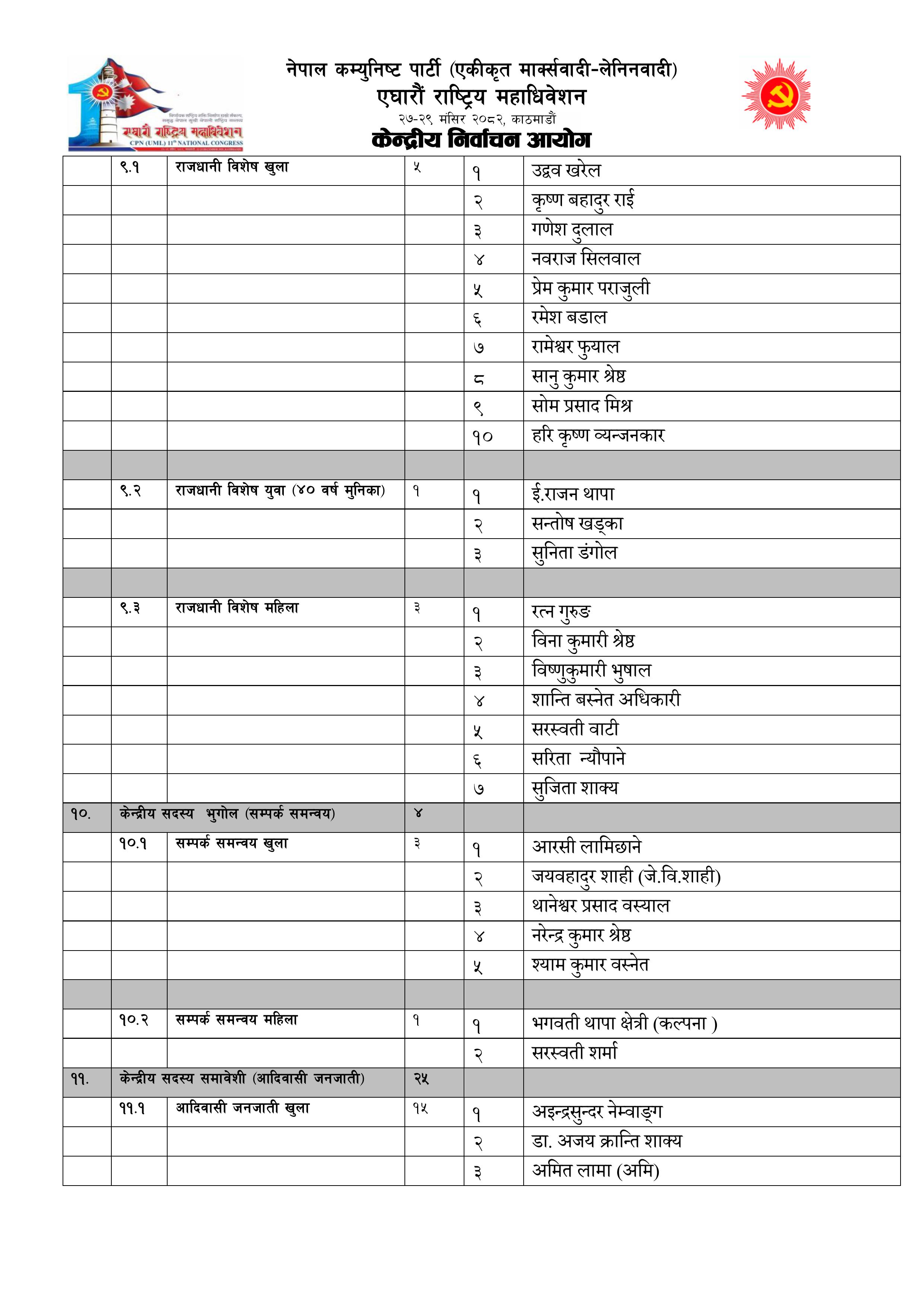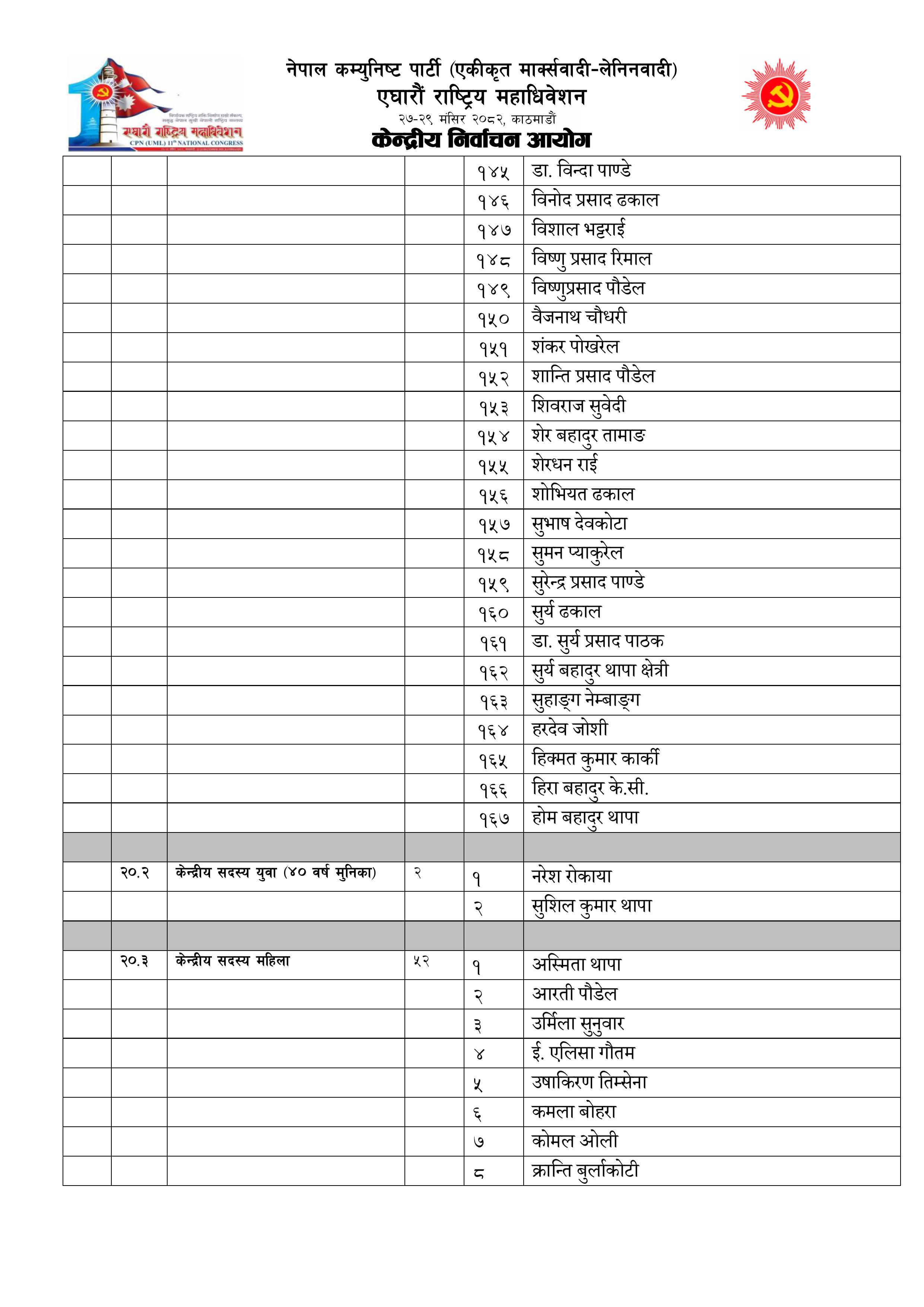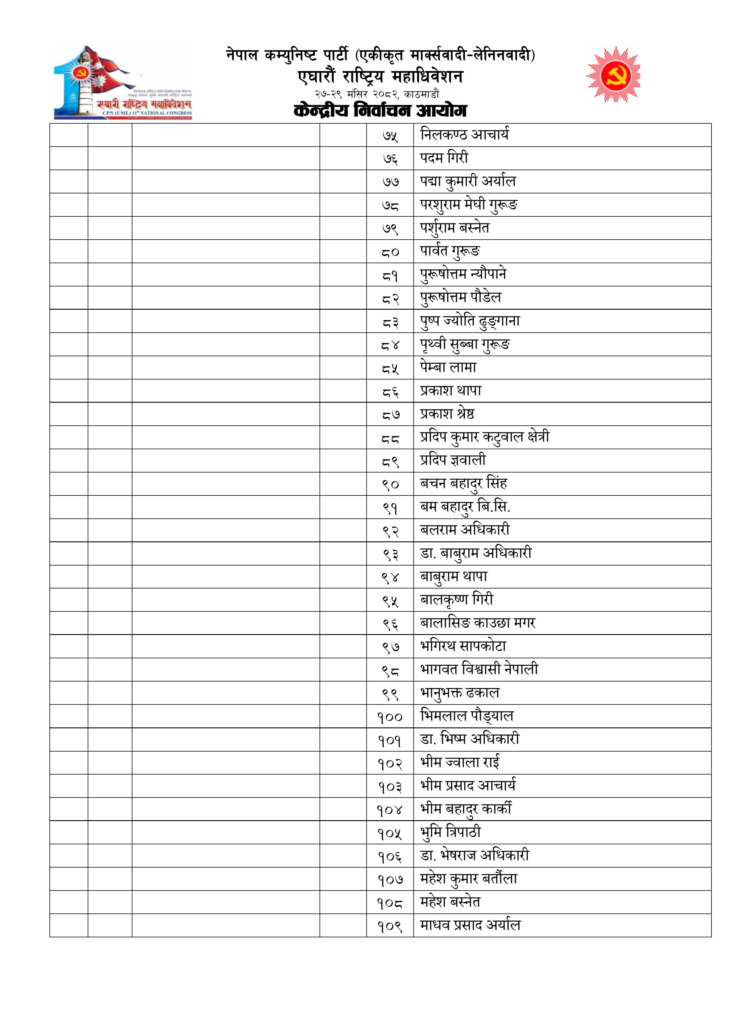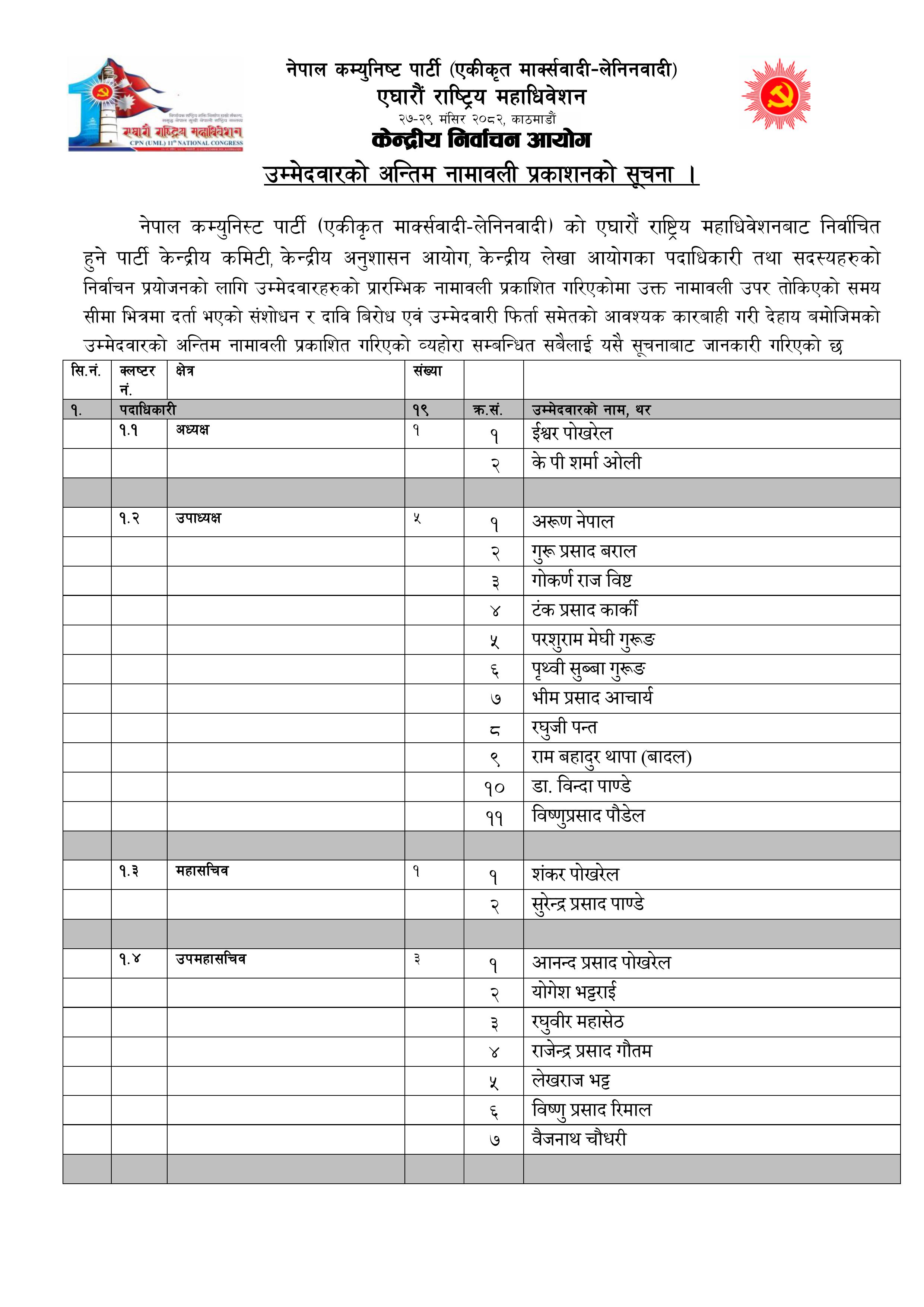 एमाले महाधिवेशन : उम्मेदवारको अन्तिम नामावली सार्वजनिक (सूचीसहित)