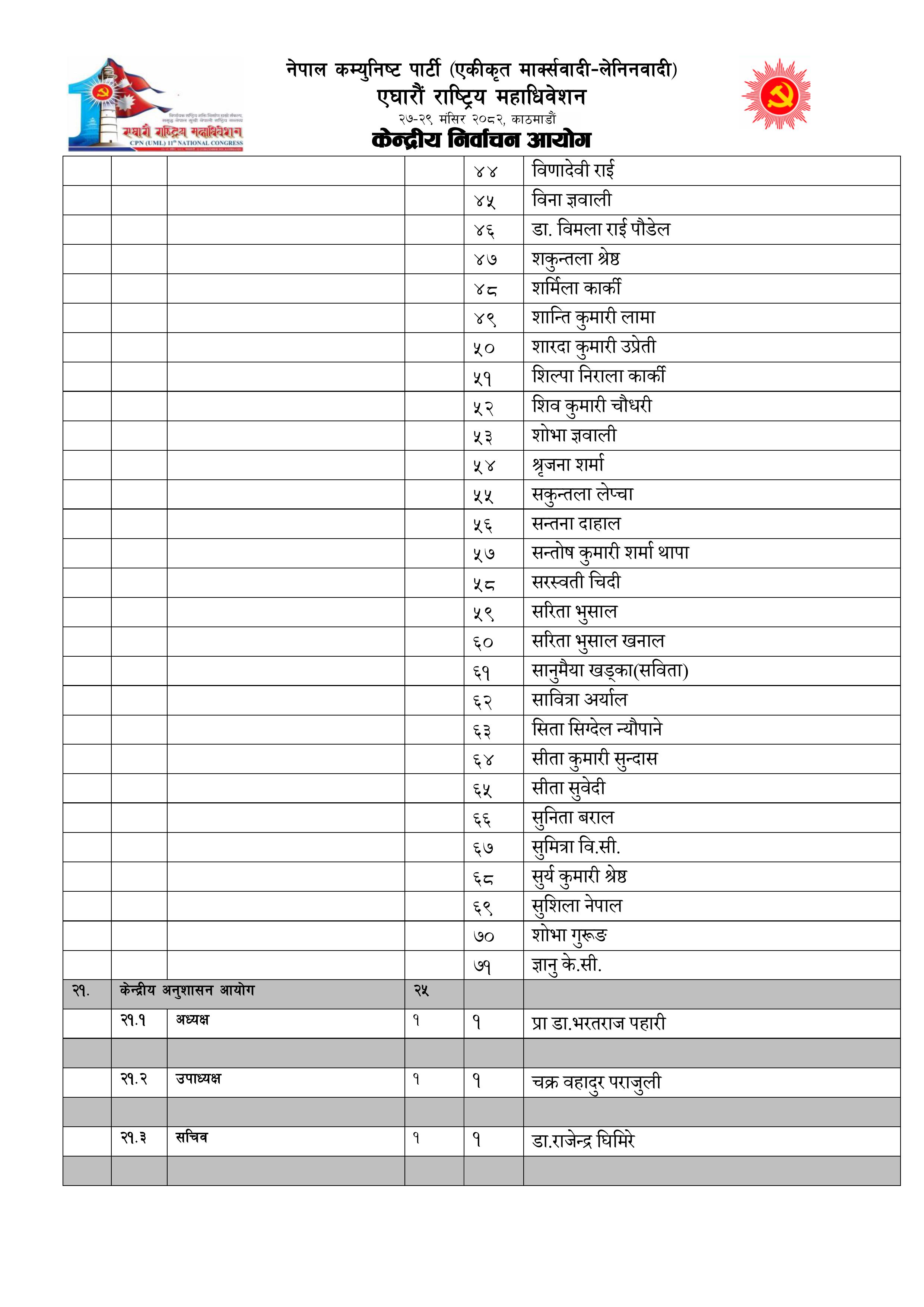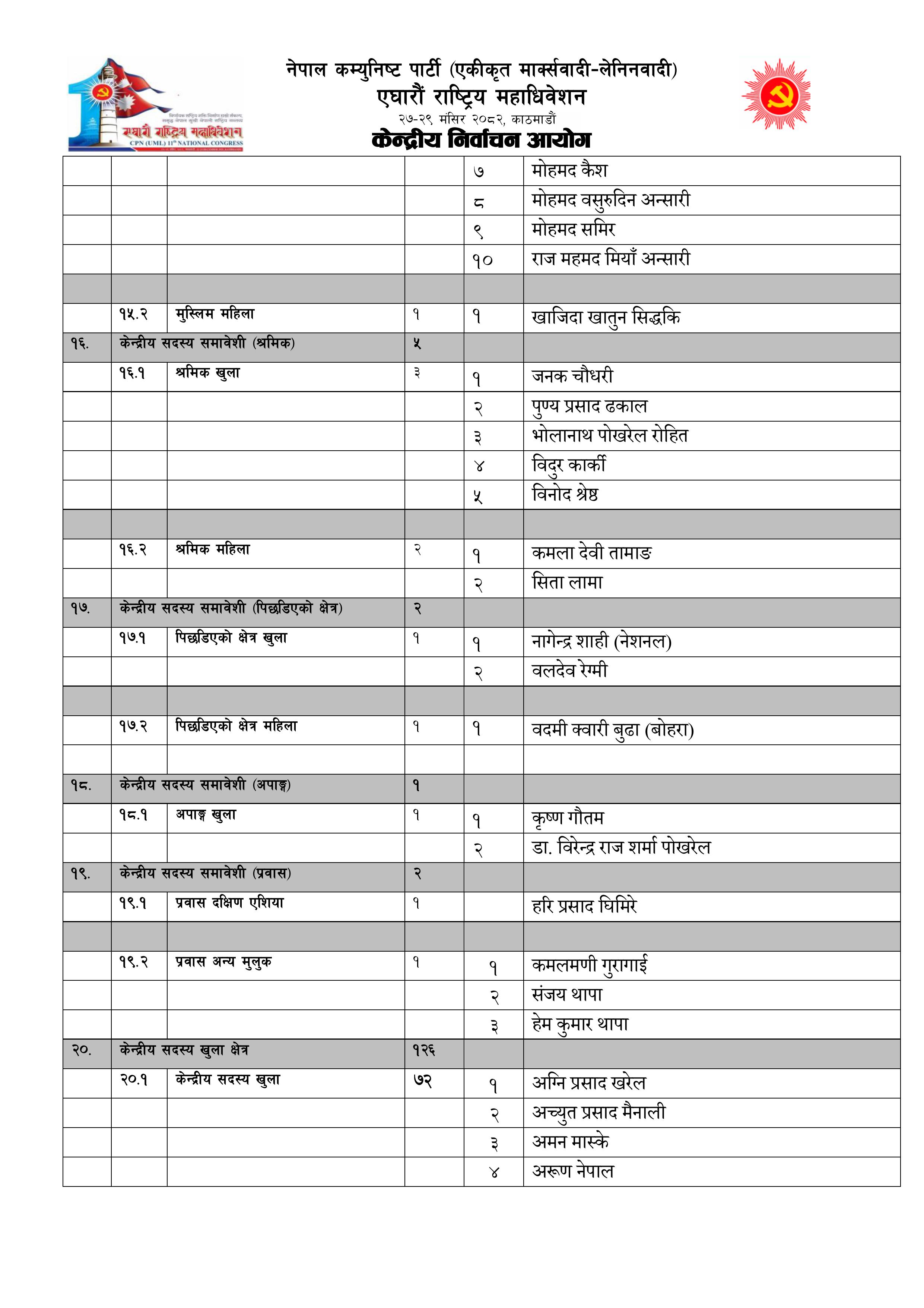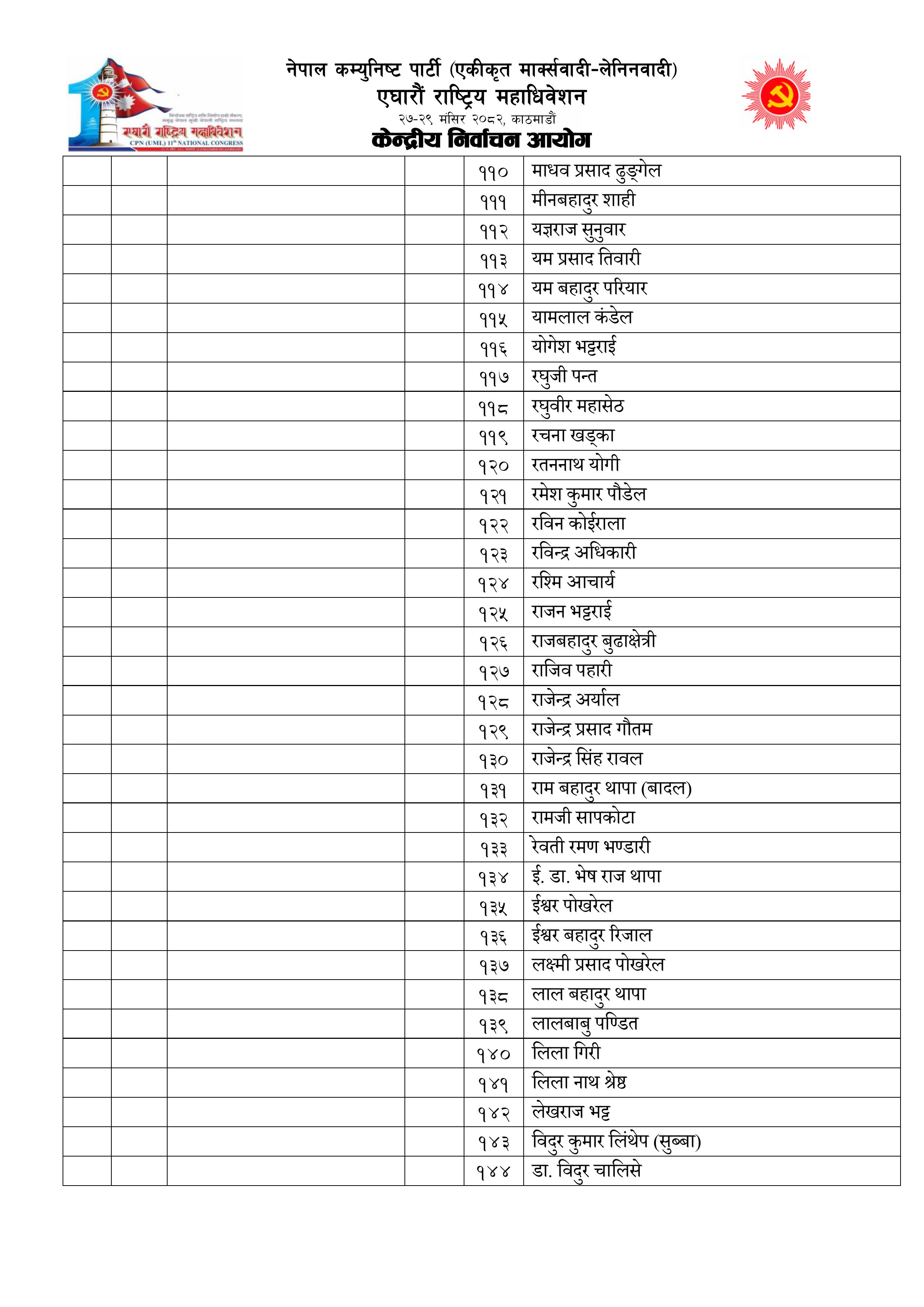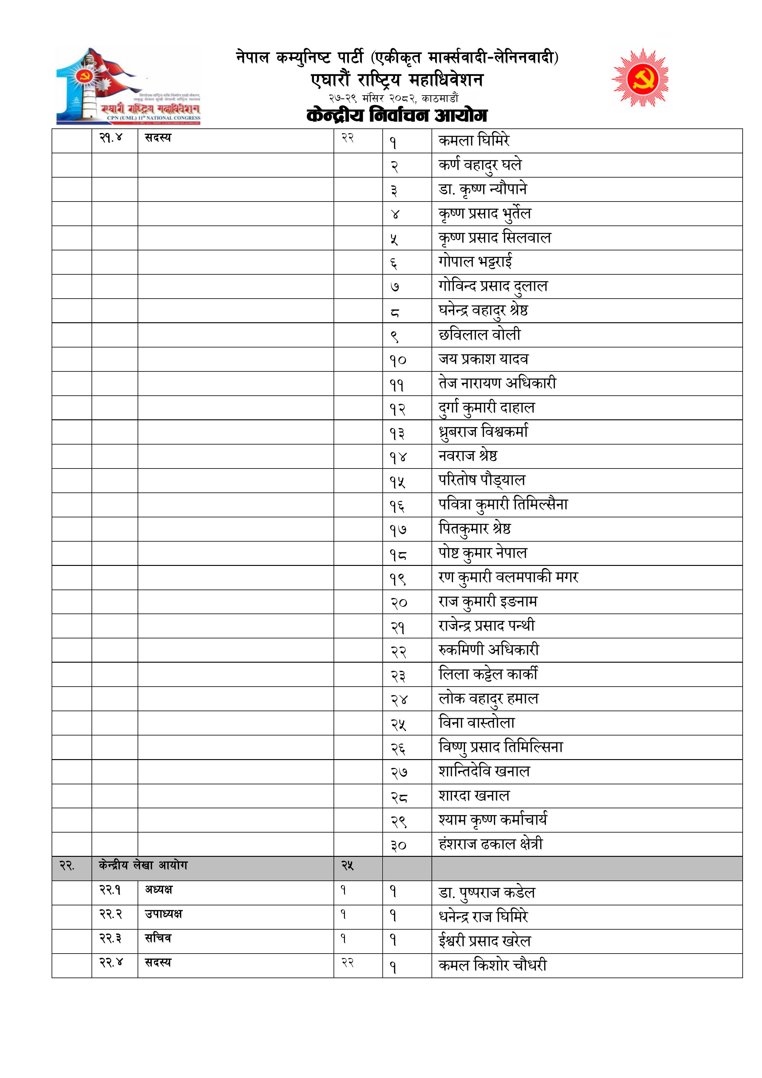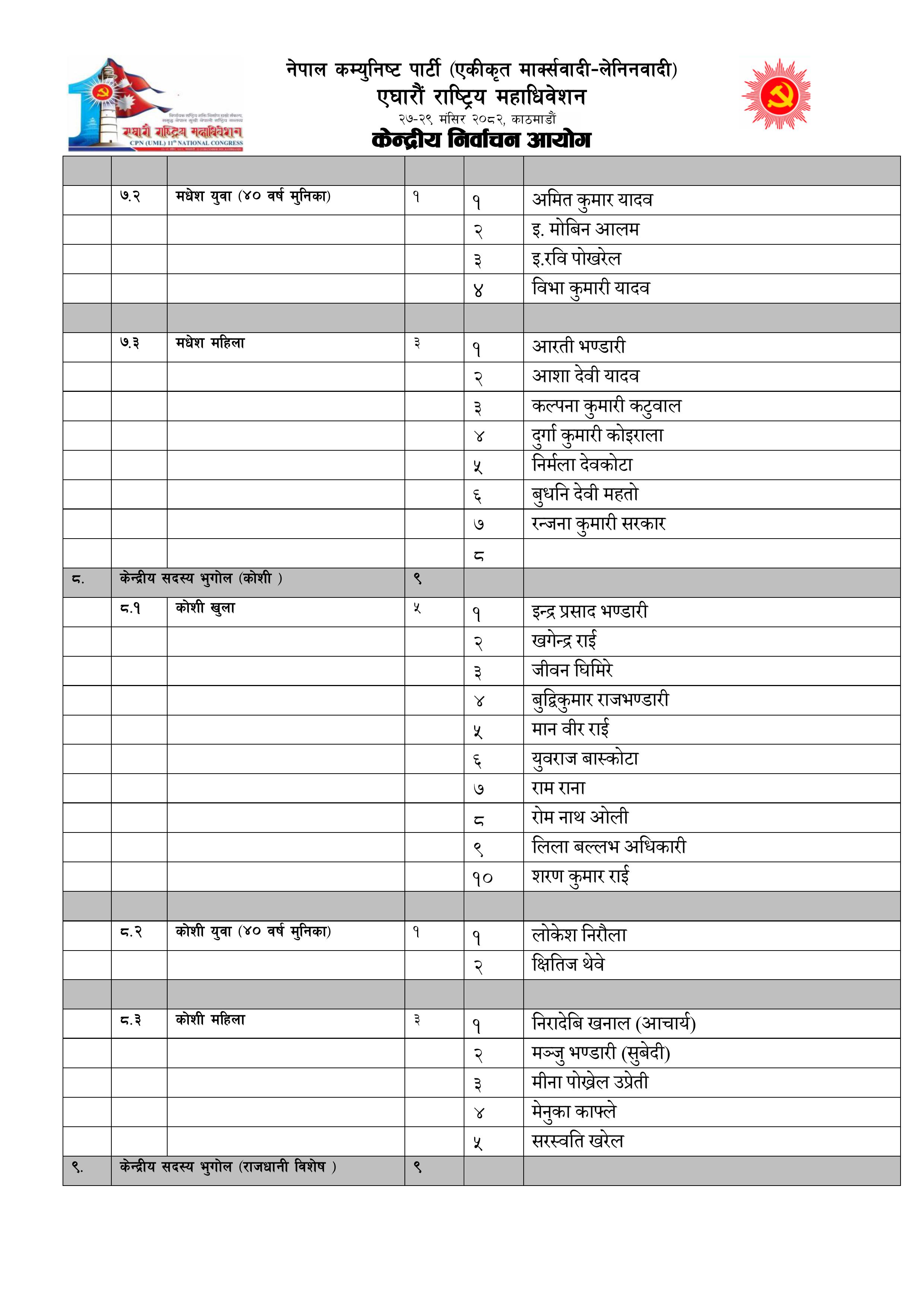 एमाले महाधिवेशन : उम्मेदवारको अन्तिम नामावली सार्वजनिक (सूचीसहित)