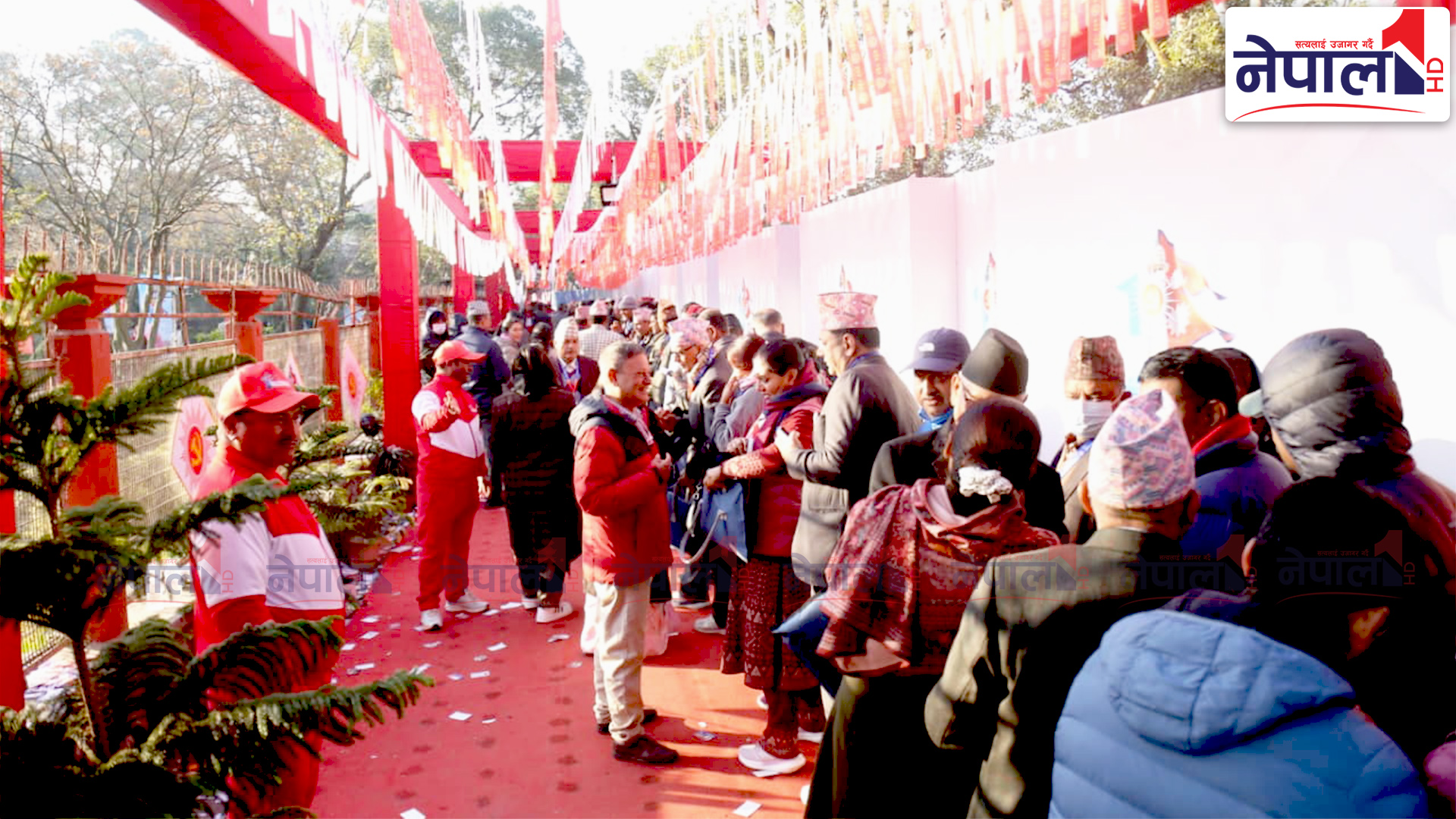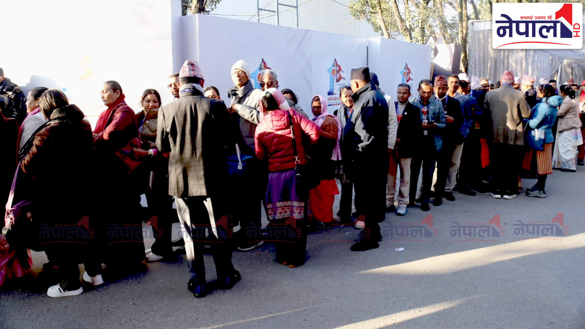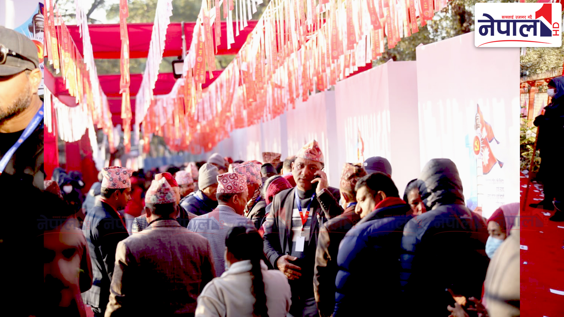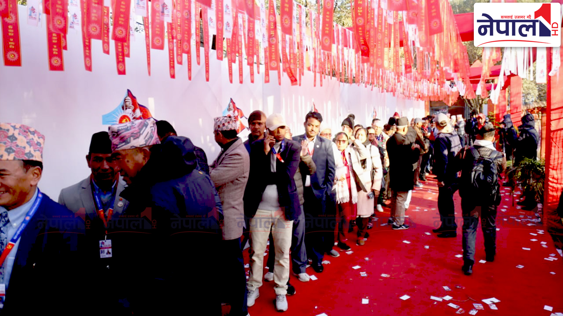 एमाले महाधिवेशन : मतदानका लागि उम्मेदवार र प्रतिनिधि लाइनमा (तस्वीरहरू)