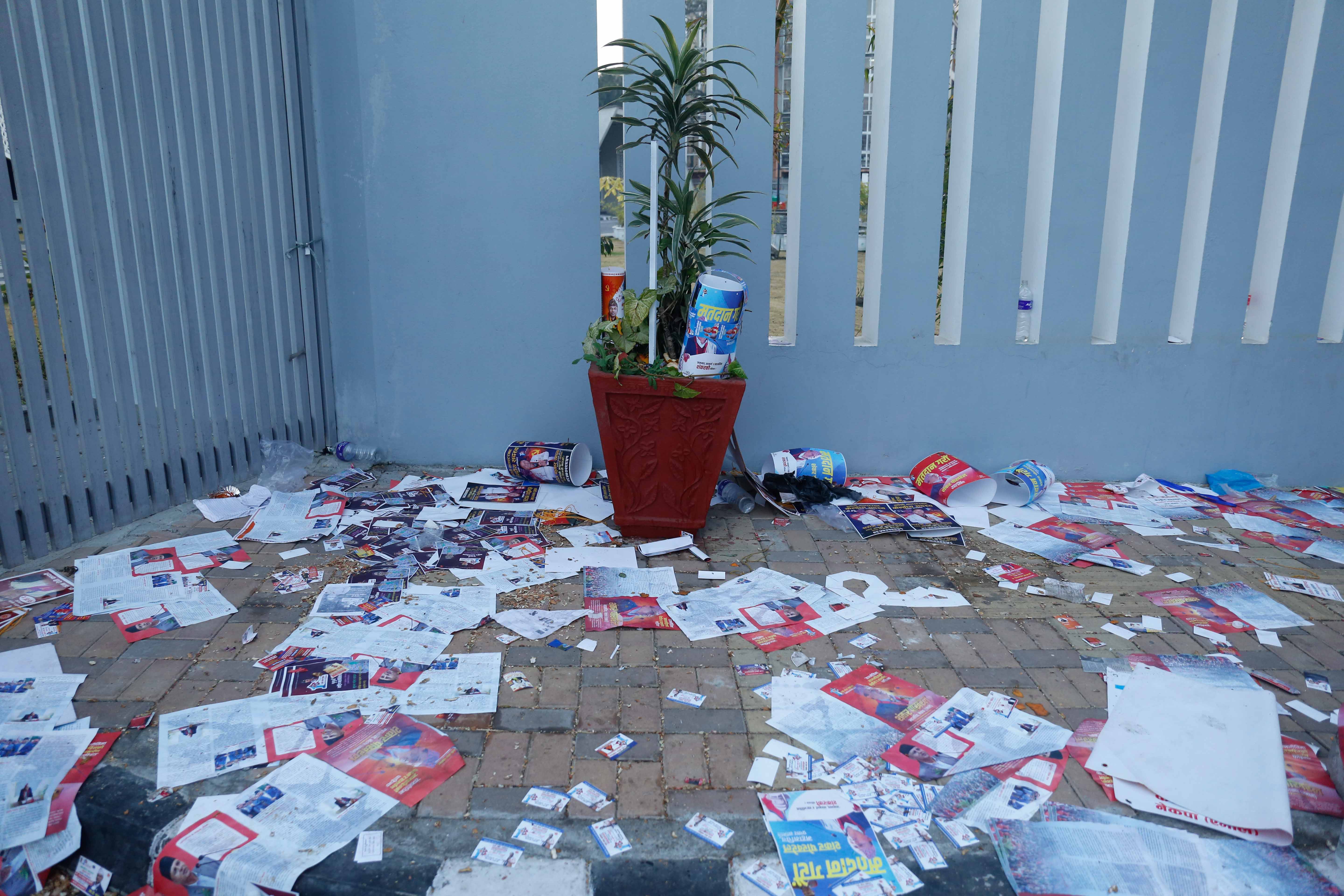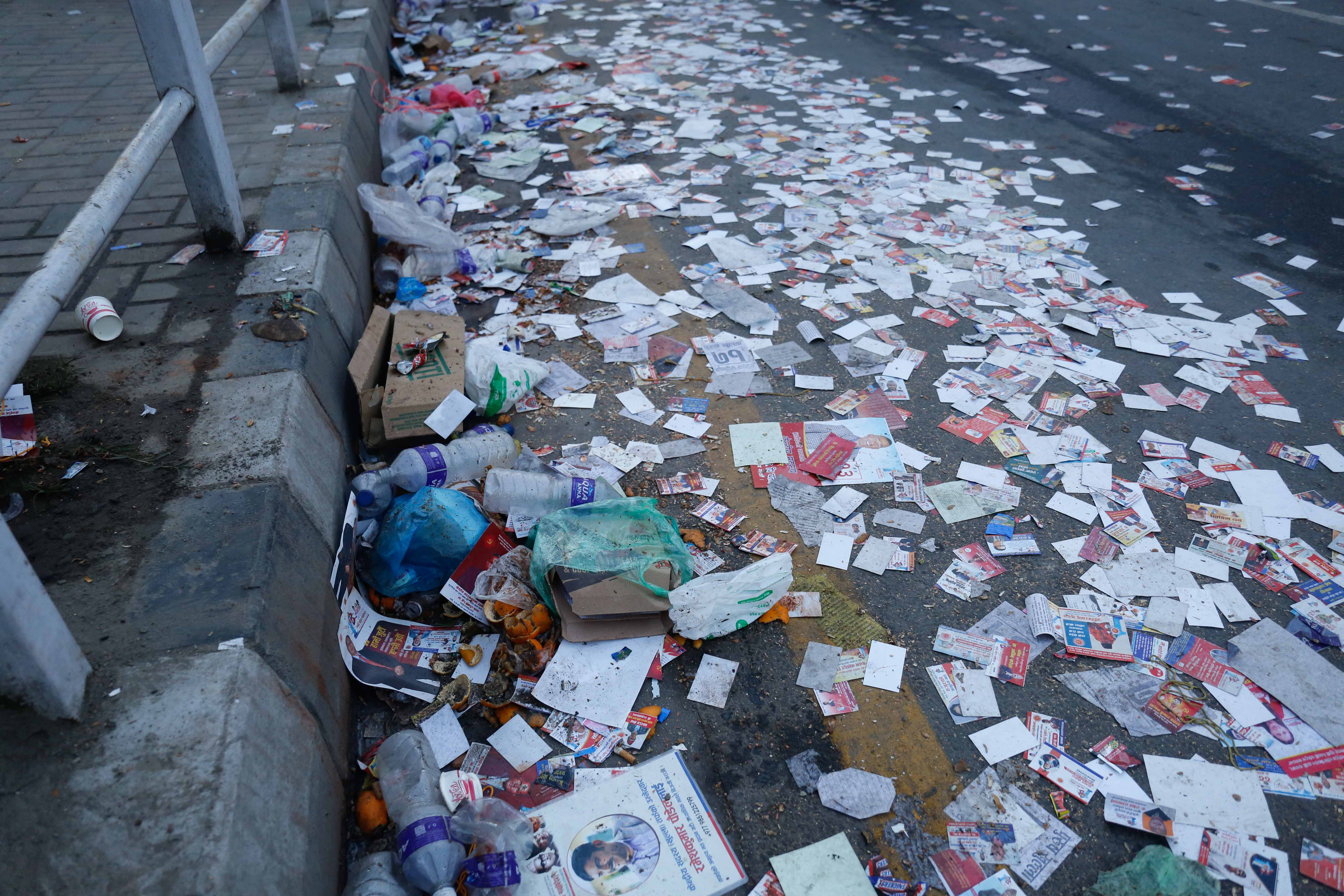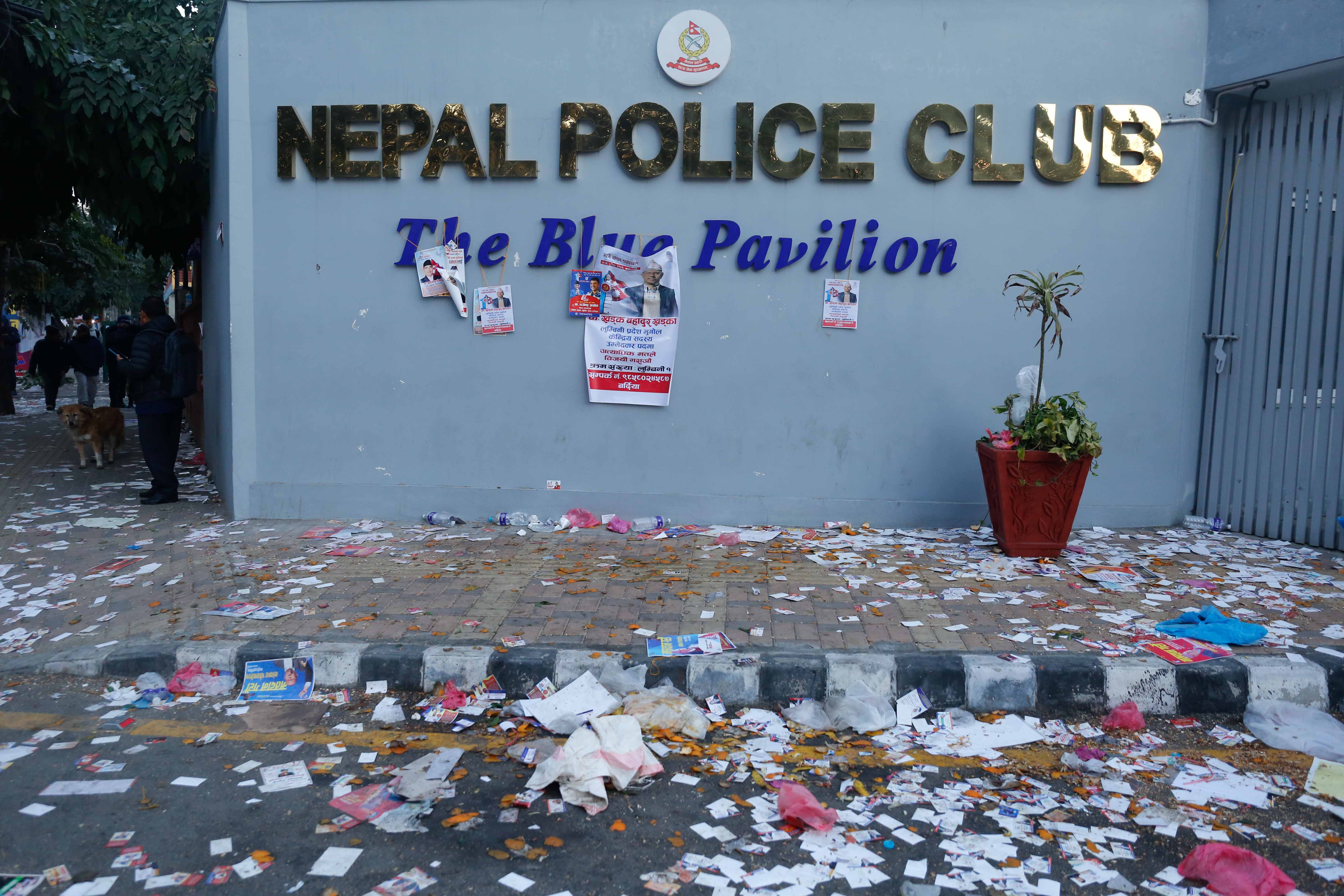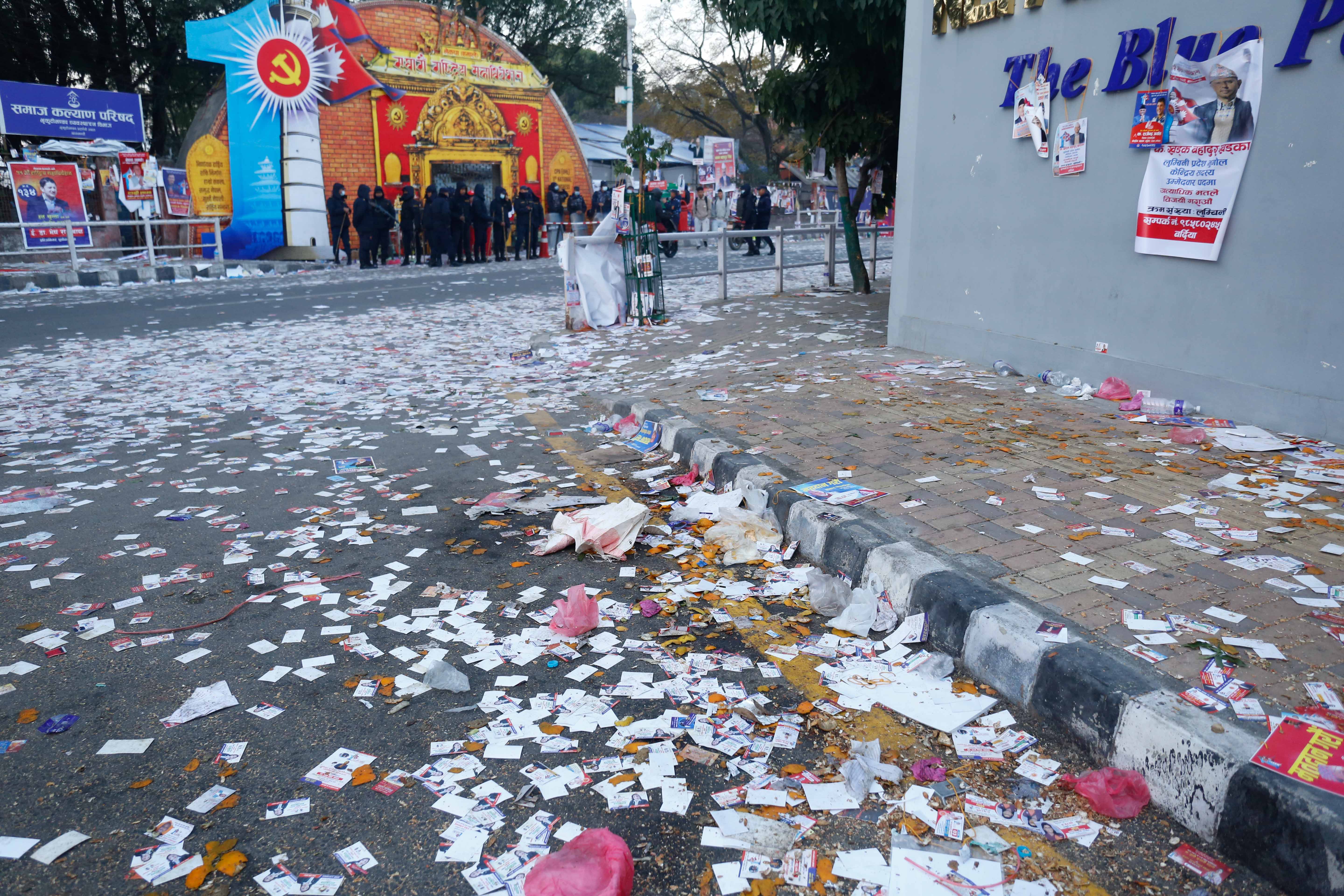 काठमाडौं । नेकपा एमालेको महाधिवेशनस्थल भृकुटीमण्डप उम्मेदवारहरूको प्रचार सामग्रीले कुरूप बनेको छ । भृकुटीमण्डप क्षेत्रको सडकमा यत्रतत्र उम्मेदवारका प्रचार सामग्री छरिएका छन् । जसका कारण सो क्षेत्रको सौन्दर्य नै हराएको छ । उम्मेदवारको पक्षमा भोट माग्न पर्चा, पम्पप्लेट तयार गरिएको छ भने सोही सामग्री जथाभाबी फाल्दा फोहोर बनेको हो । सोही फोहोरलाई बुधवार बिहान काठमाडौँ महानगरको ब्रुमरले सफा गरेको छ । एमालेको महाधिवेशन अन्तर्गत बुधवार बिहानदेखि नेतृत्व चयनका लागि मतदान हुने भनिएको छ ।