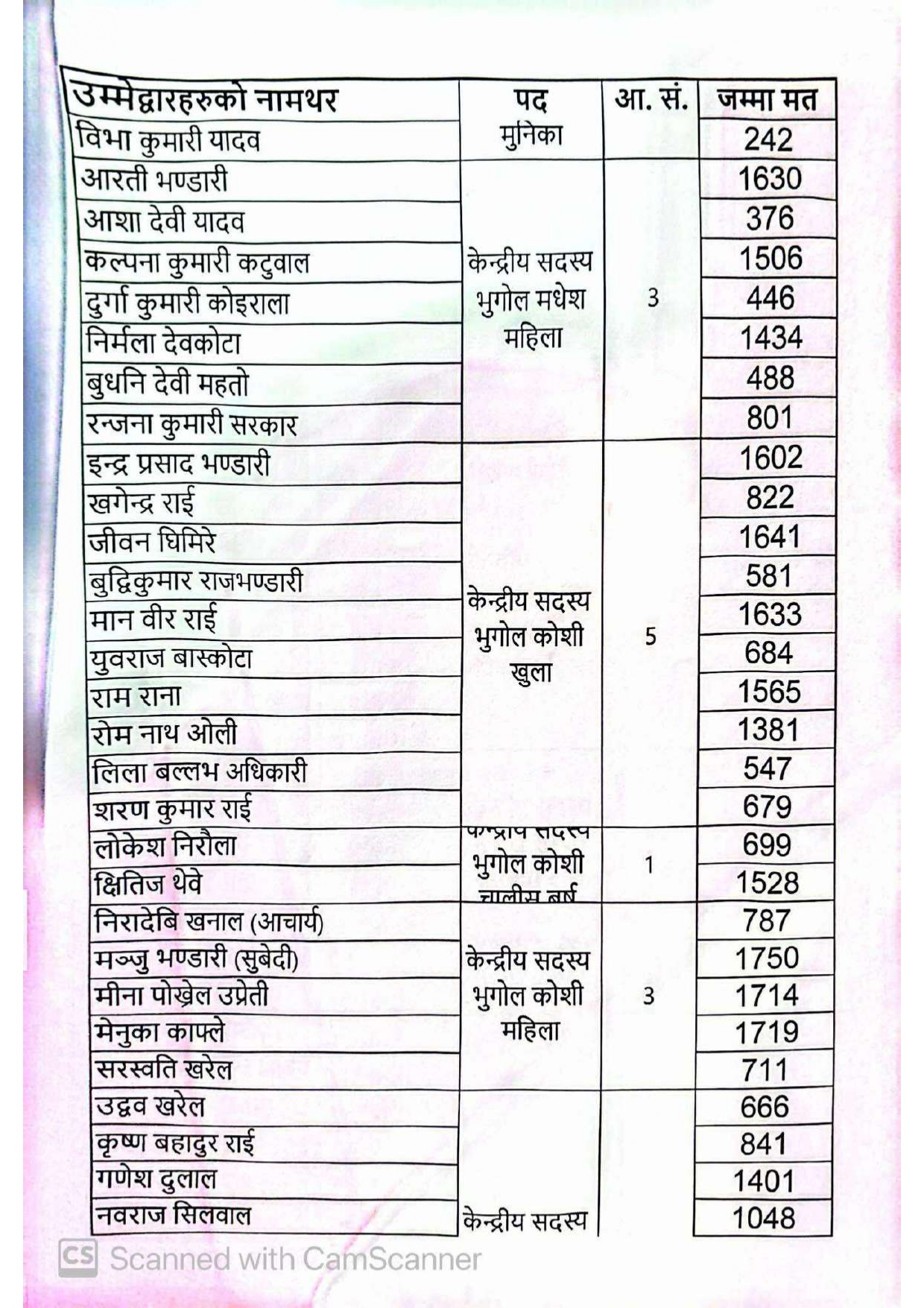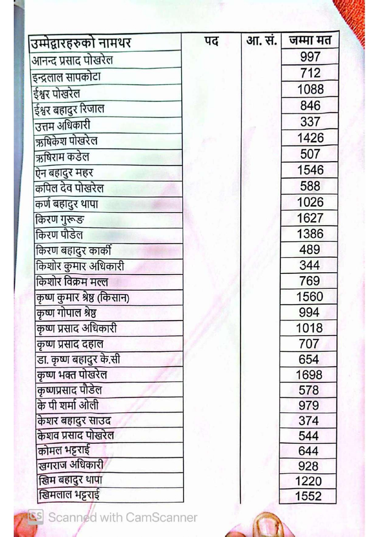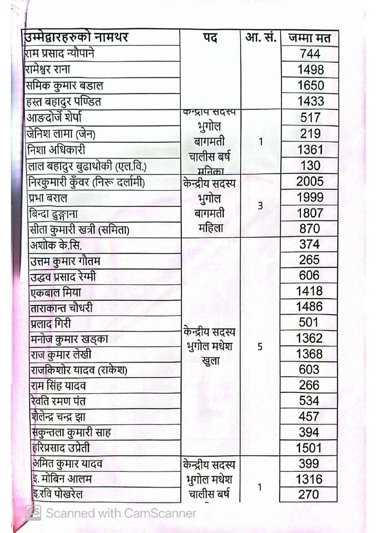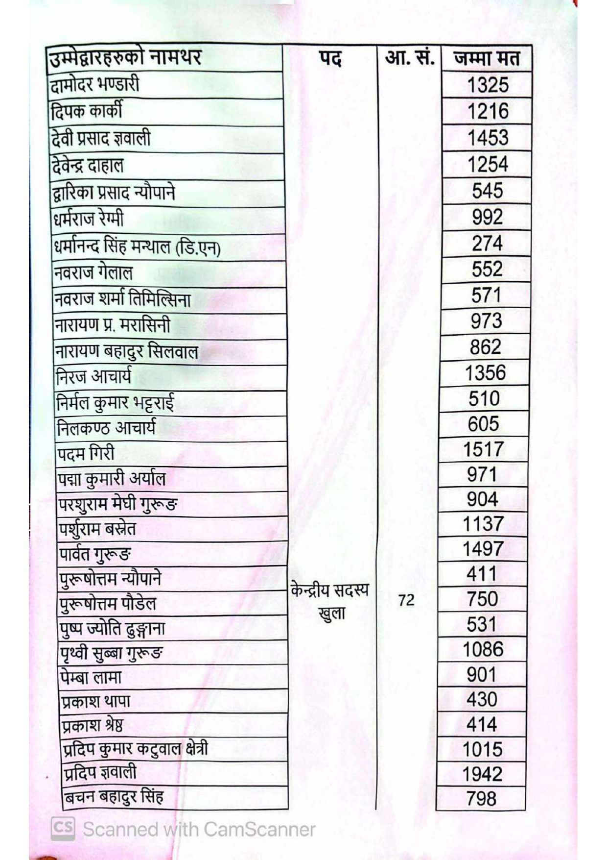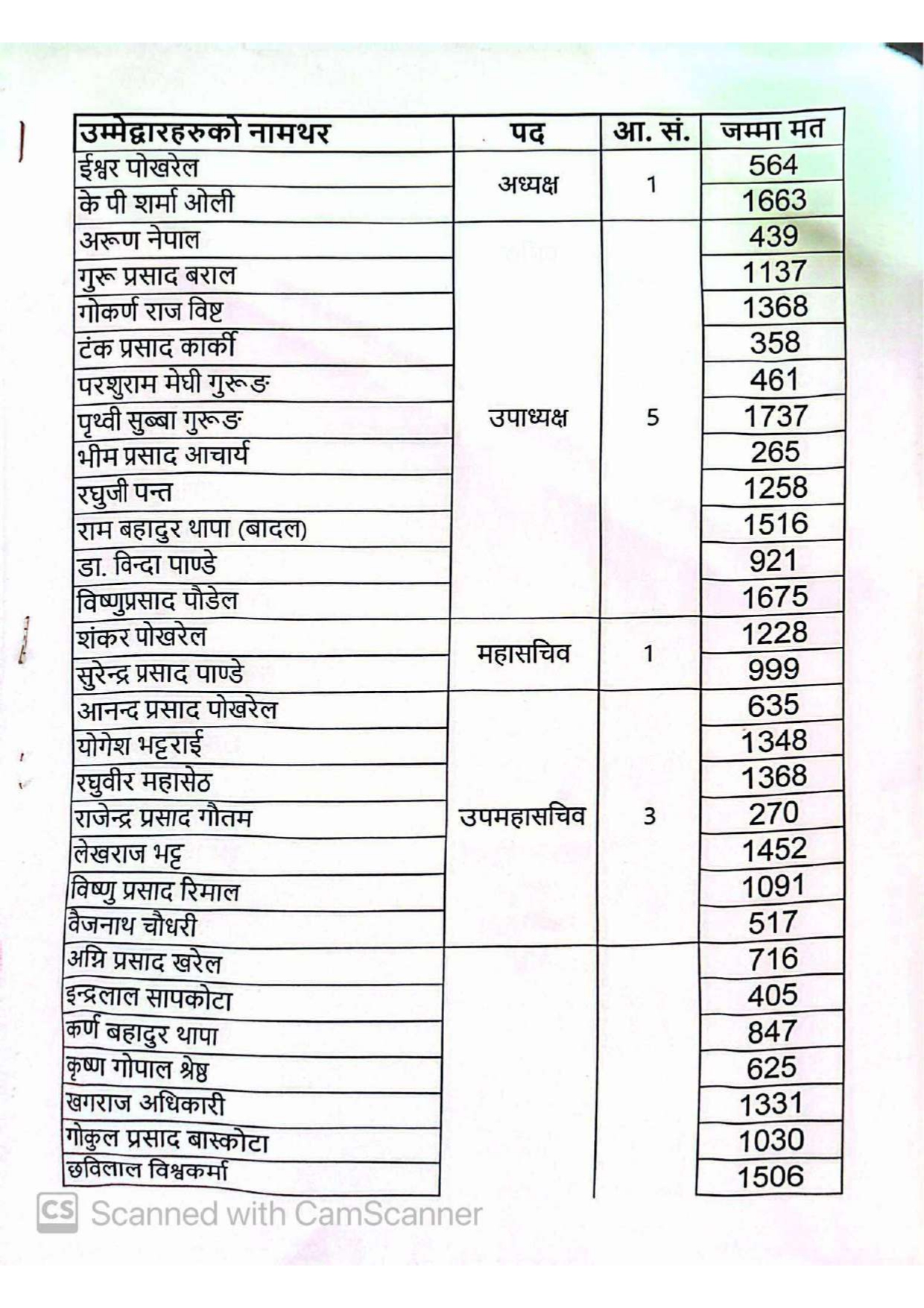 एमालेमा अध्यक्षदेखि केन्द्रीय सदस्यसम्म कसको कति मत ? (सूचीसहित)