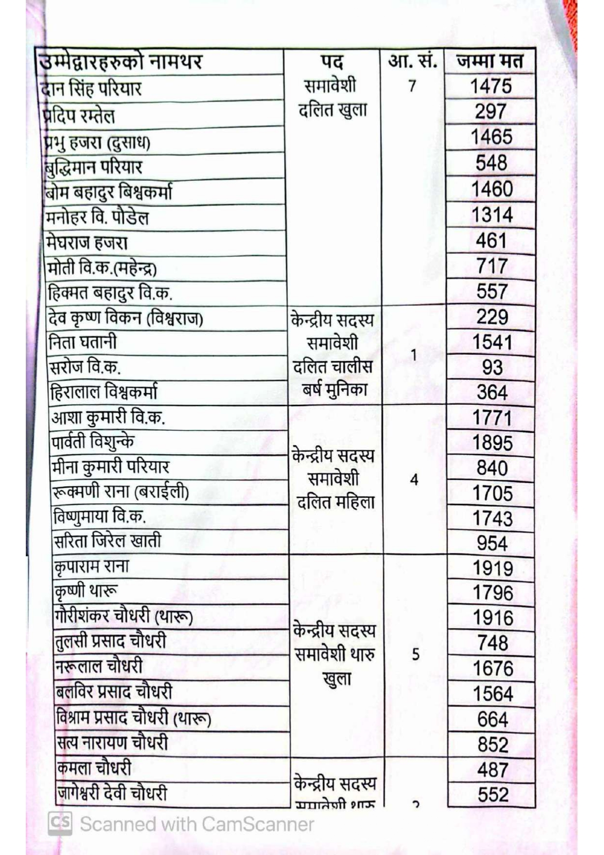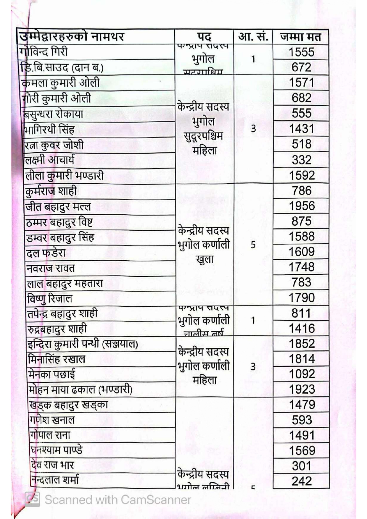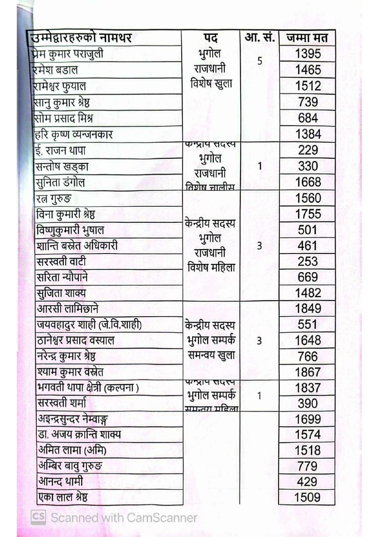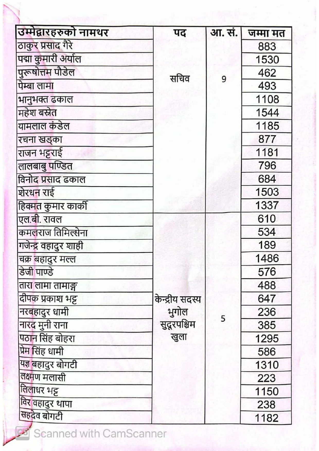 एमालेमा अध्यक्षदेखि केन्द्रीय सदस्यसम्म कसको कति मत ? (सूचीसहित)