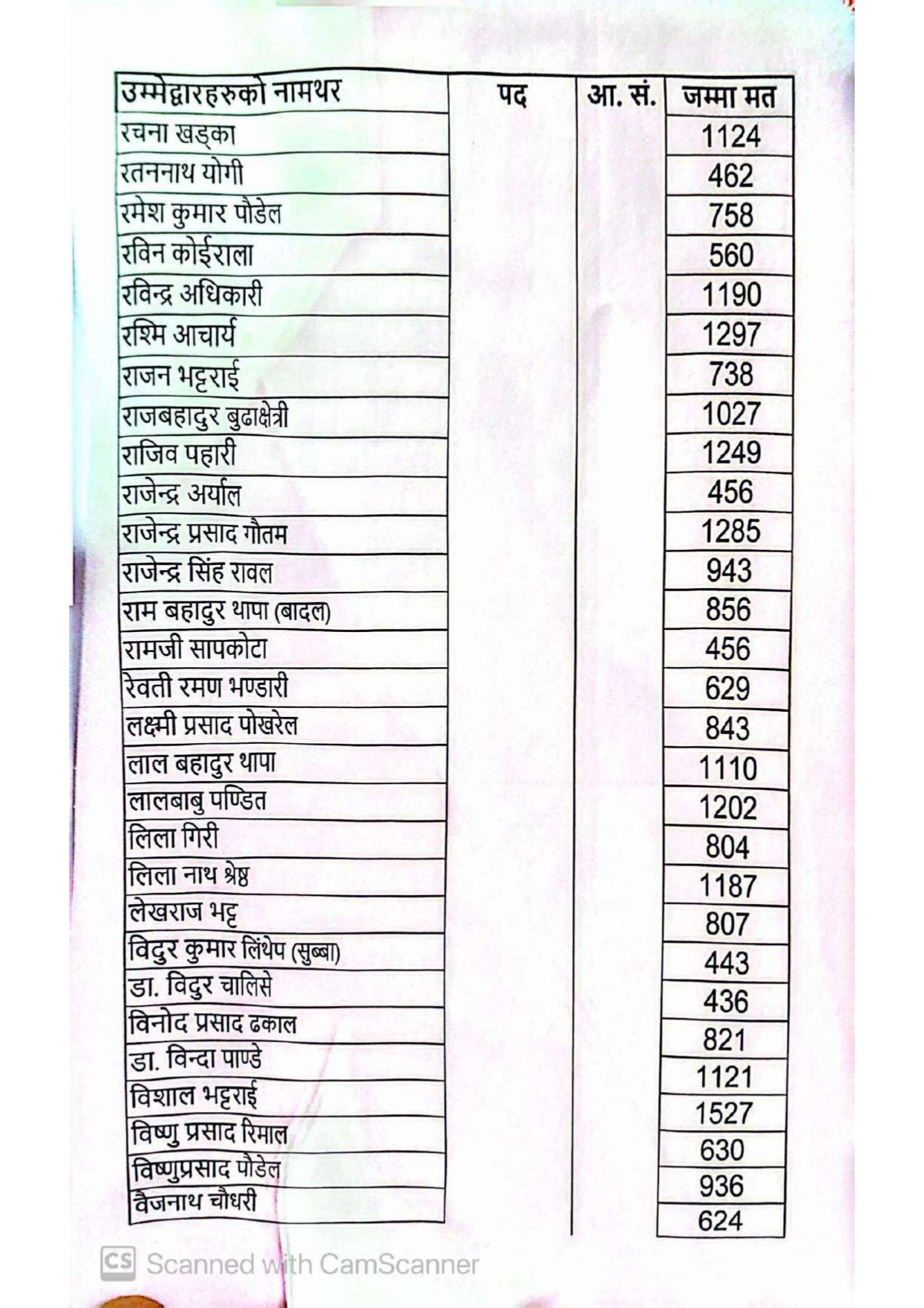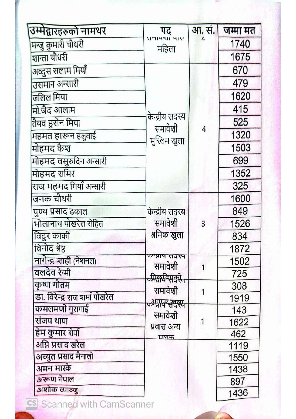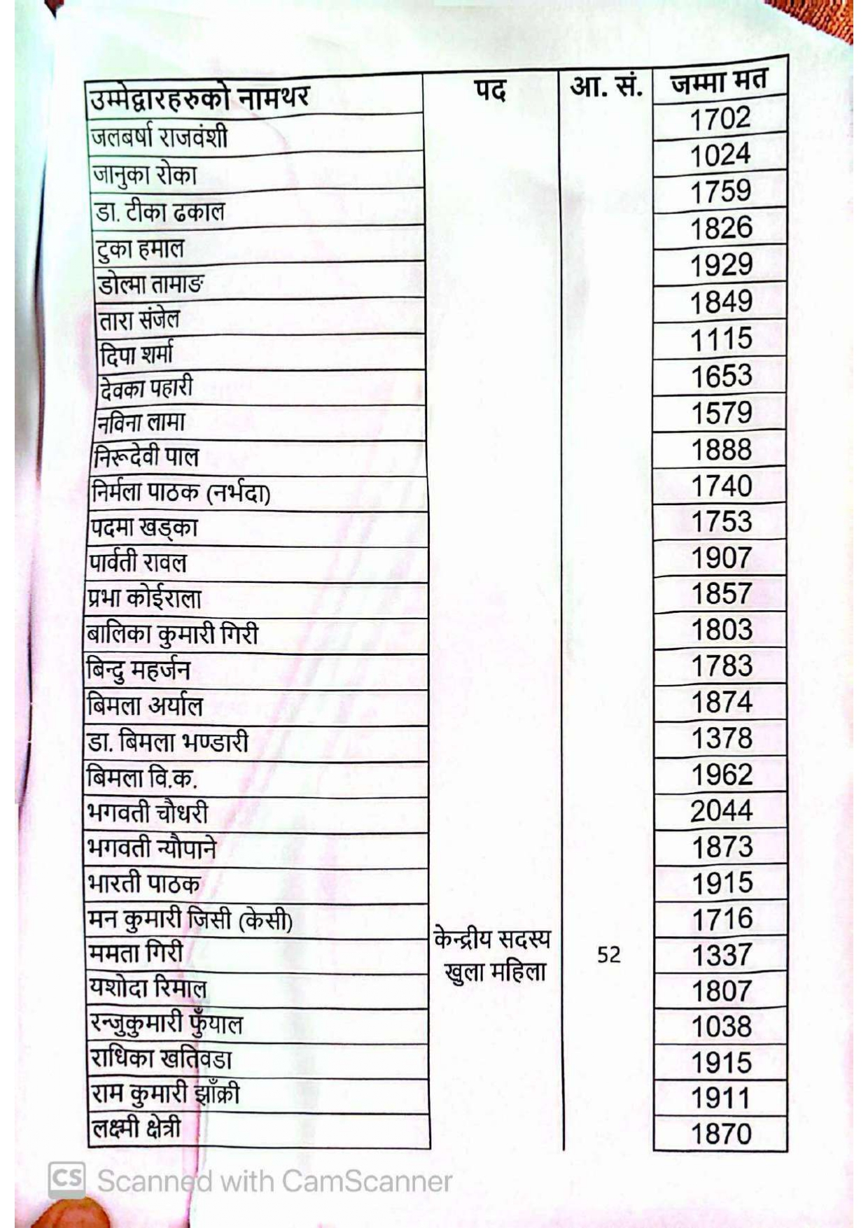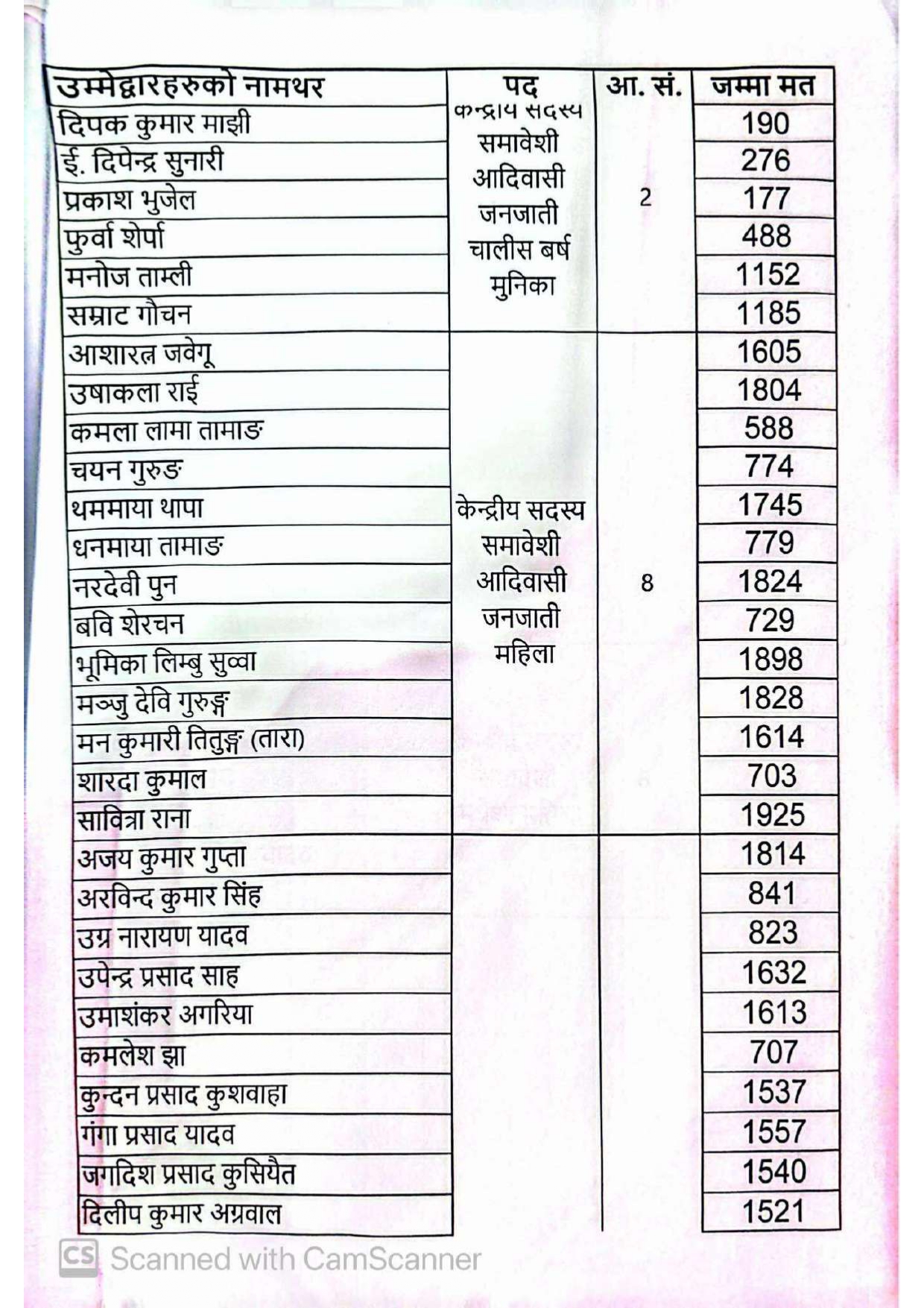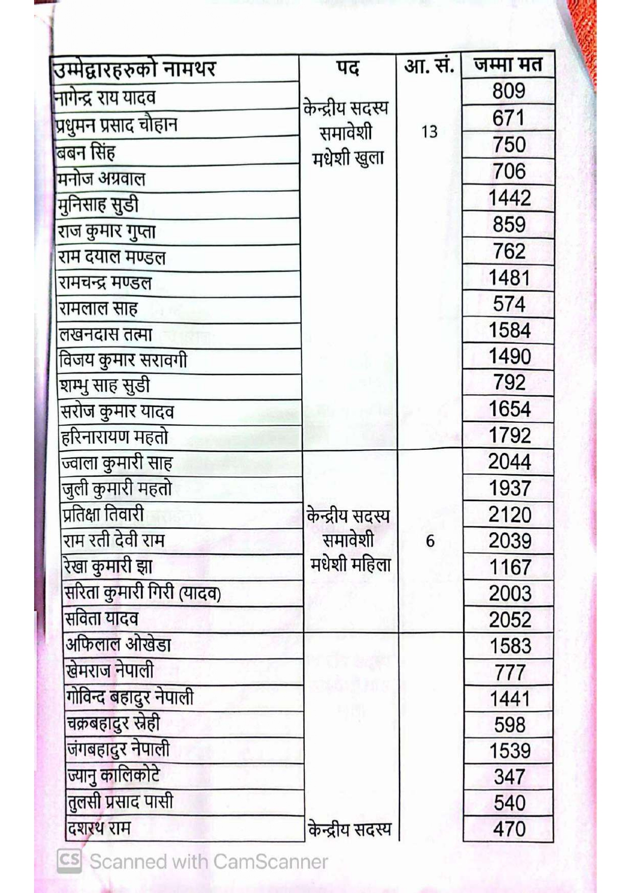एमालेमा अध्यक्षदेखि केन्द्रीय सदस्यसम्म कसको कति मत ? (सूचीसहित)