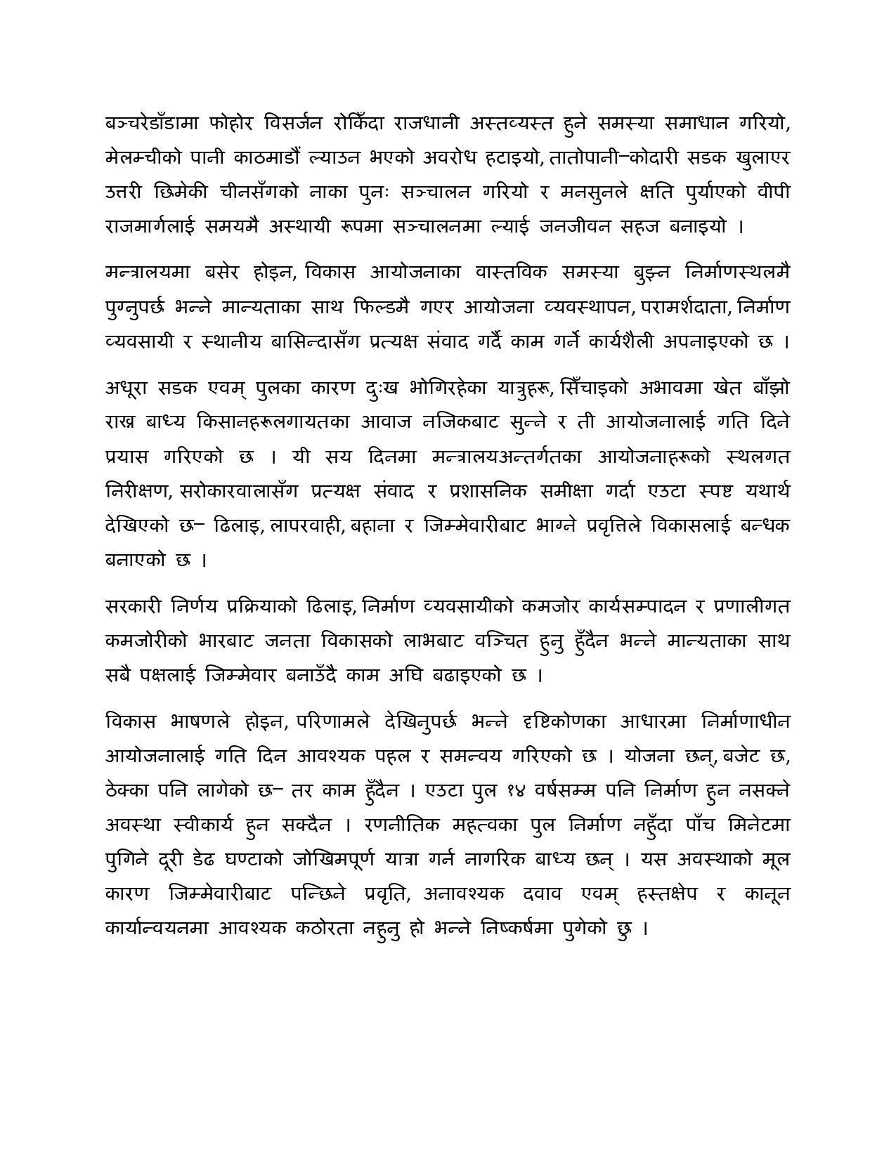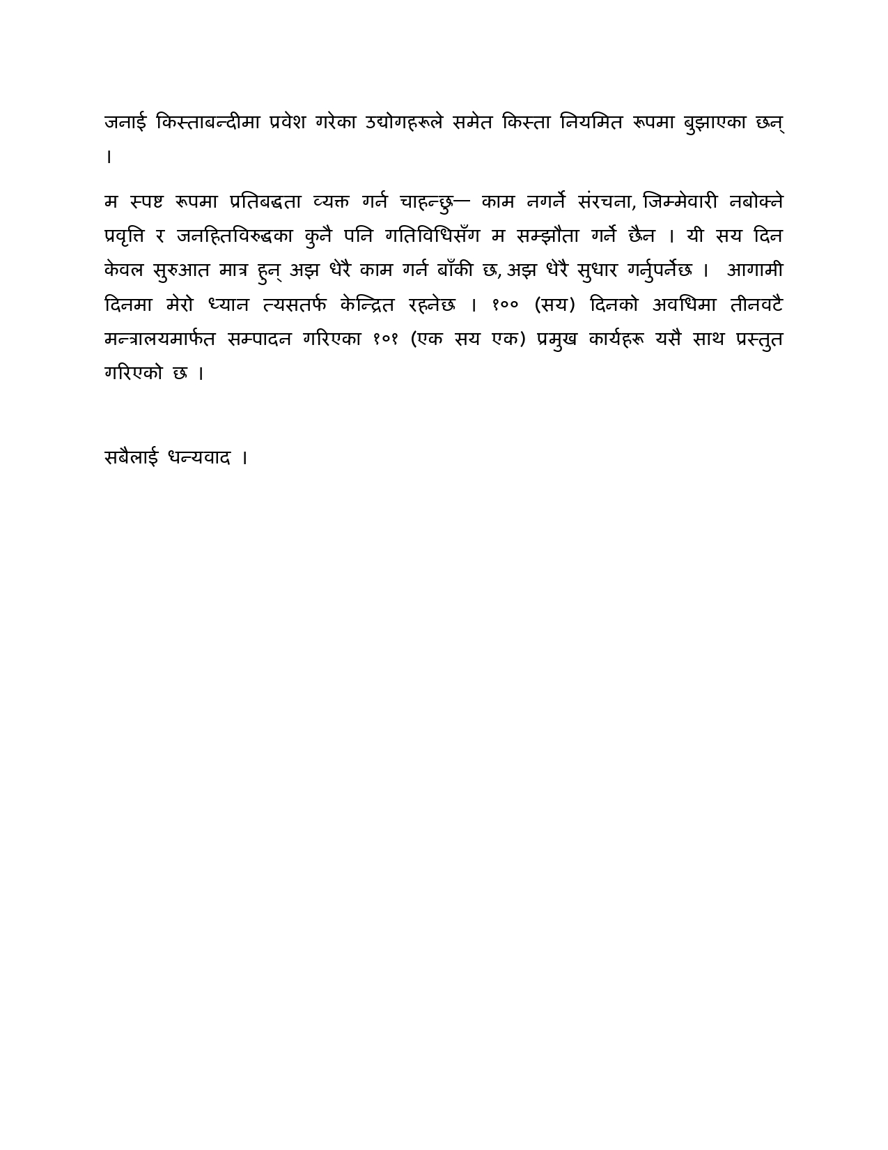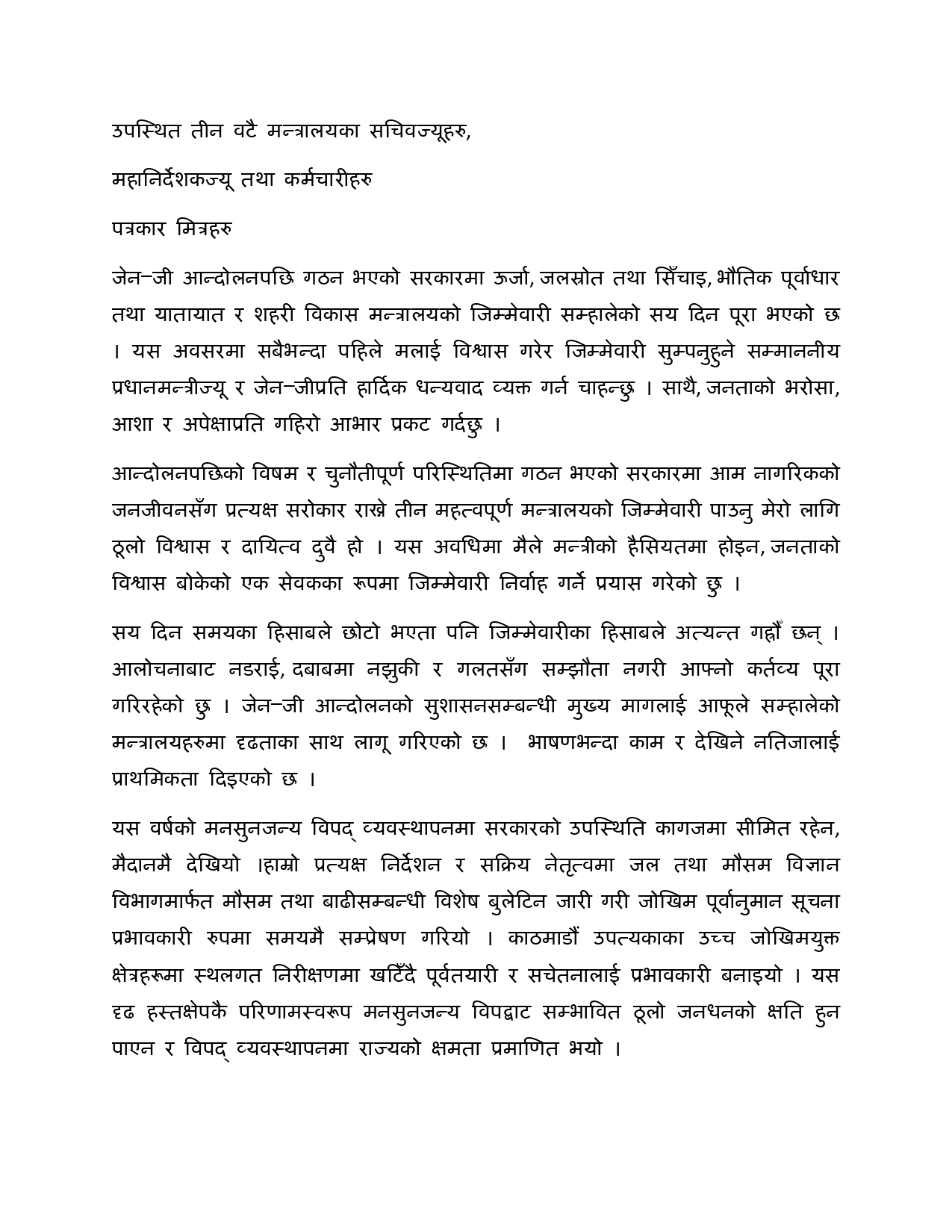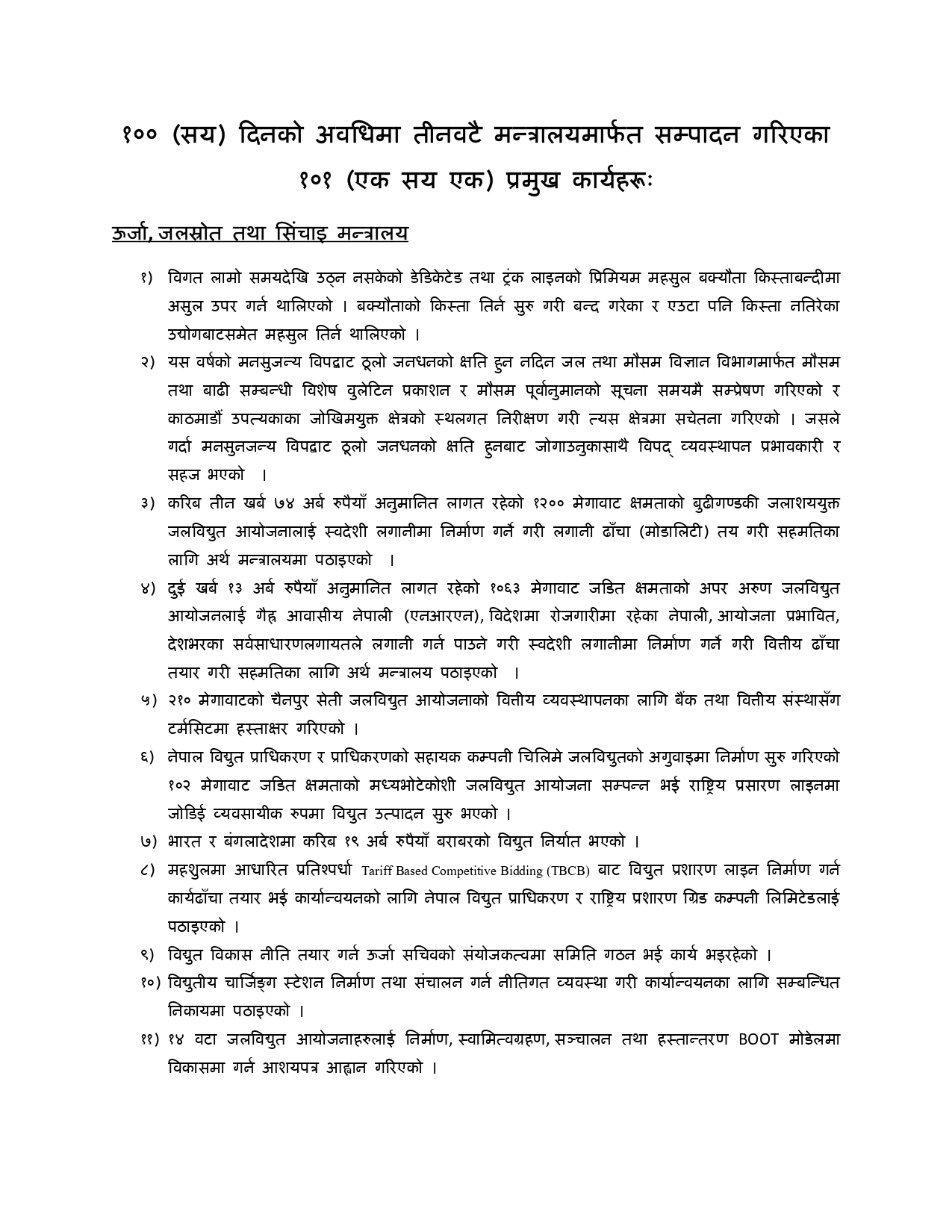 मन्त्री घिसिङका १०० दिनका १०१ काम सार्वजनिक (पूर्णपाठ)