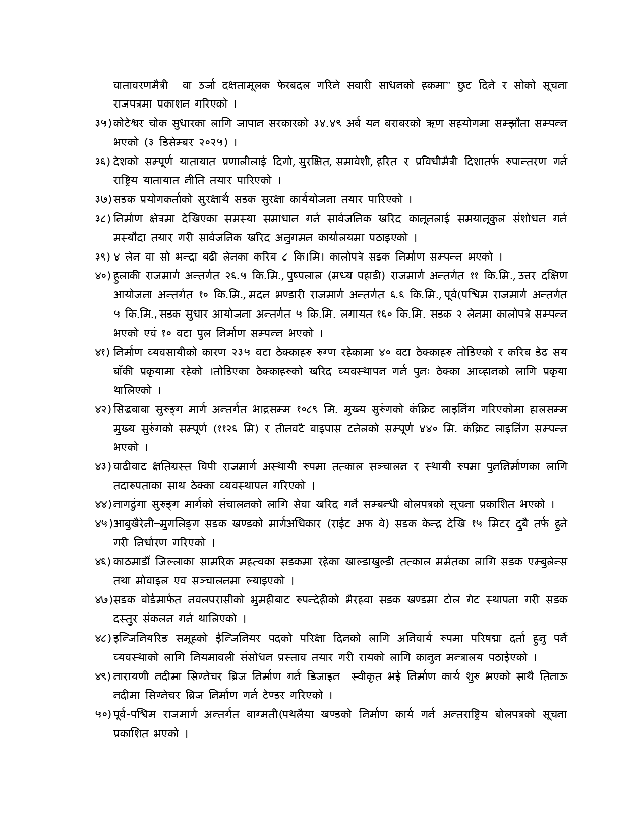 मन्त्री घिसिङले सार्वजनिक गरेका कामहरुको विवरण