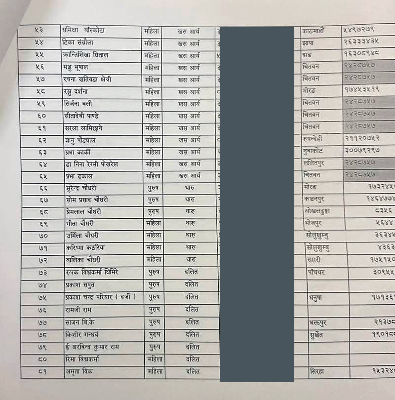 रास्वपाको ११० समानुपातिक सूचीमा प्रकाश सपुतदेखि क्रिकेटर ज्ञानेन्द्र मल्लसम्म (सूची)