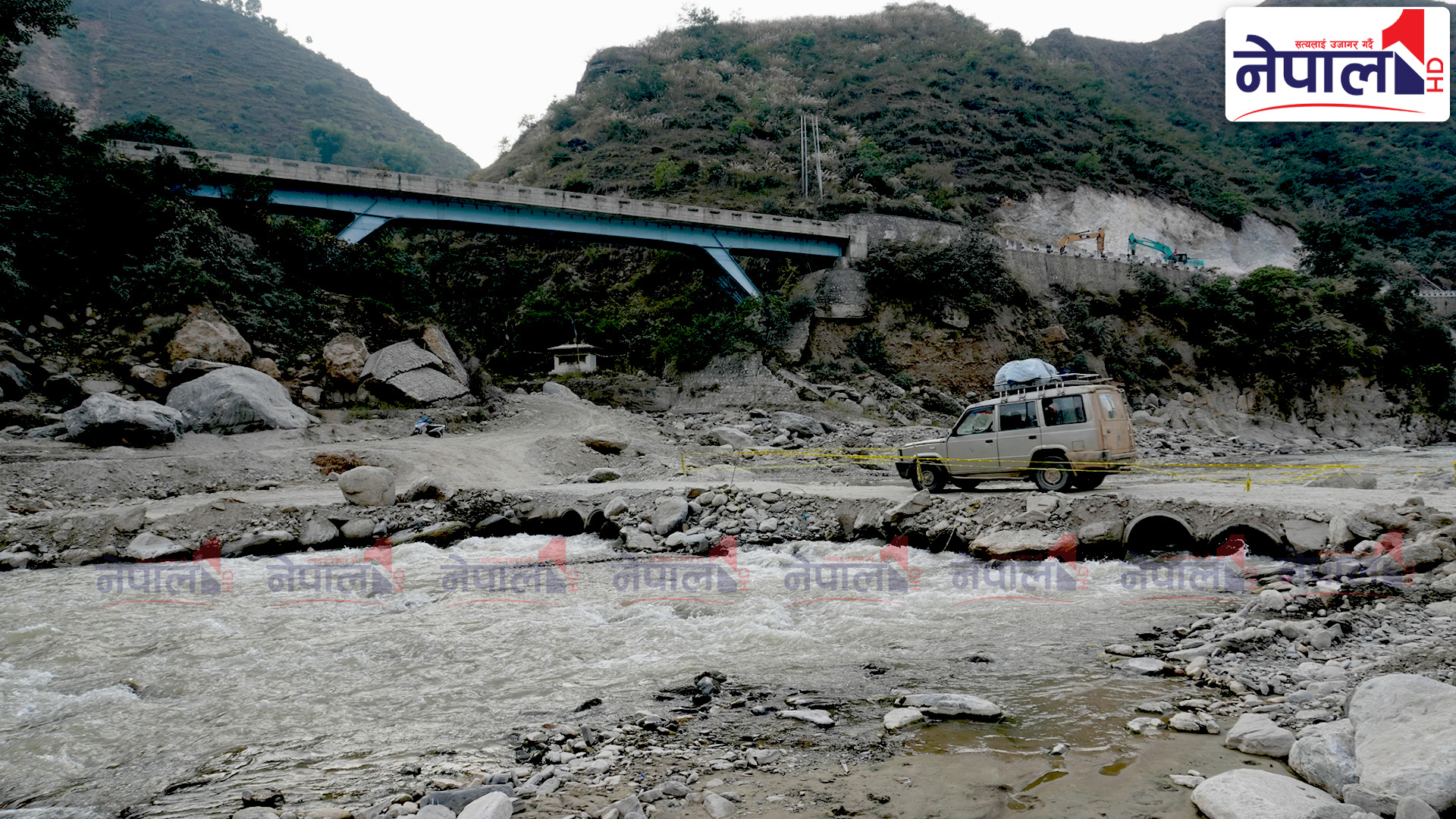 काठमाडौं । गत वर्षको असोज दोस्रो साता आएको बाढीपहिरोले क्षतिग्रस्त बीपी राजमार्ग (धुलिखेल–सिन्धुली–बर्दिबास) को कटुञ्जेबेशी, मंगलटार, नेपालथोक सडकखण्ड डाइभर्सन बनाएर सञ्चालनमा छ । बाढीले सडक नै बगाएपछि यो वर्षदेखि खोलामै अस्थायी सडक बनाएर सवारी आवत जावत भइरहेको छ । खोलाबाट नै बनाइएको सडकबाट यात्रा गर्दा जोखिम त छ नै यात्रुलाई क्षतिग्रस्त खण्ड पार गर्न लाग्ने समय पनि बढेको छ ।